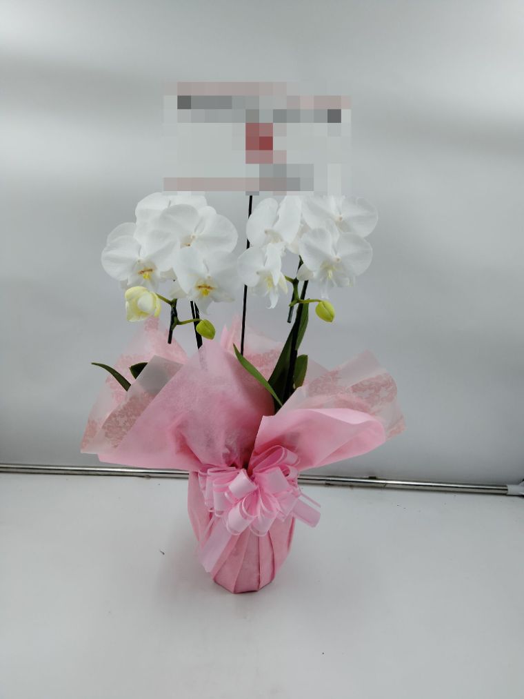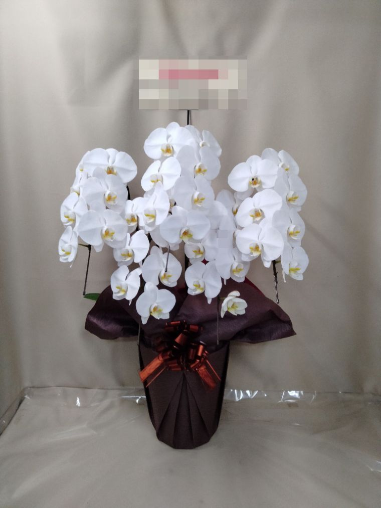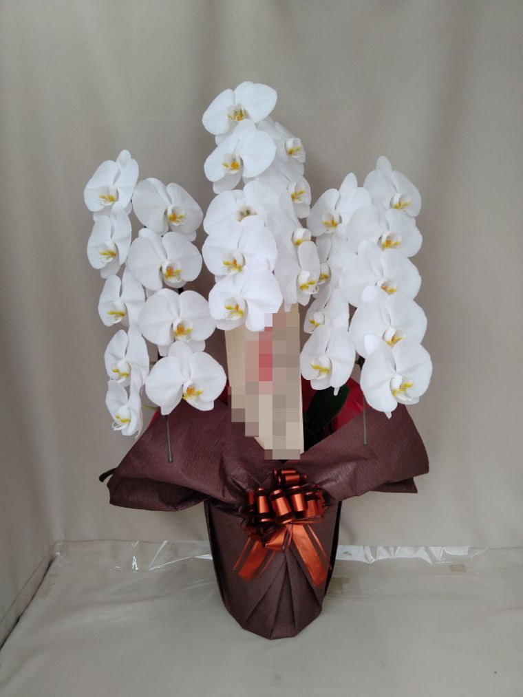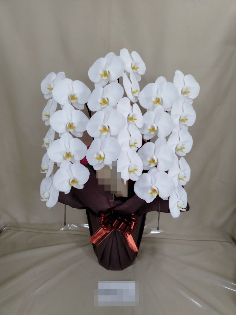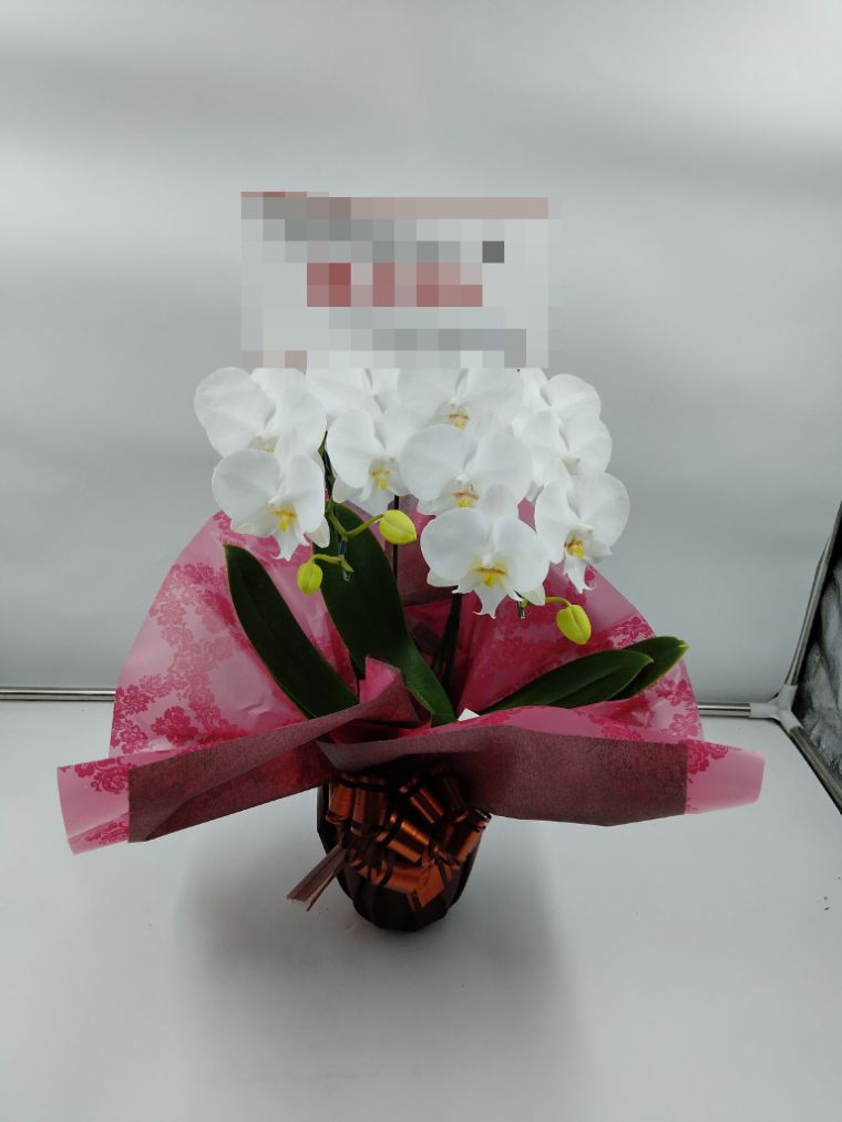 胡蝶蘭の実際にお届けした写真です。花秘書では発送前に写真をメールで送信致しますので安心して大切な顧客や取引様へのギフトにご利用頂けます。