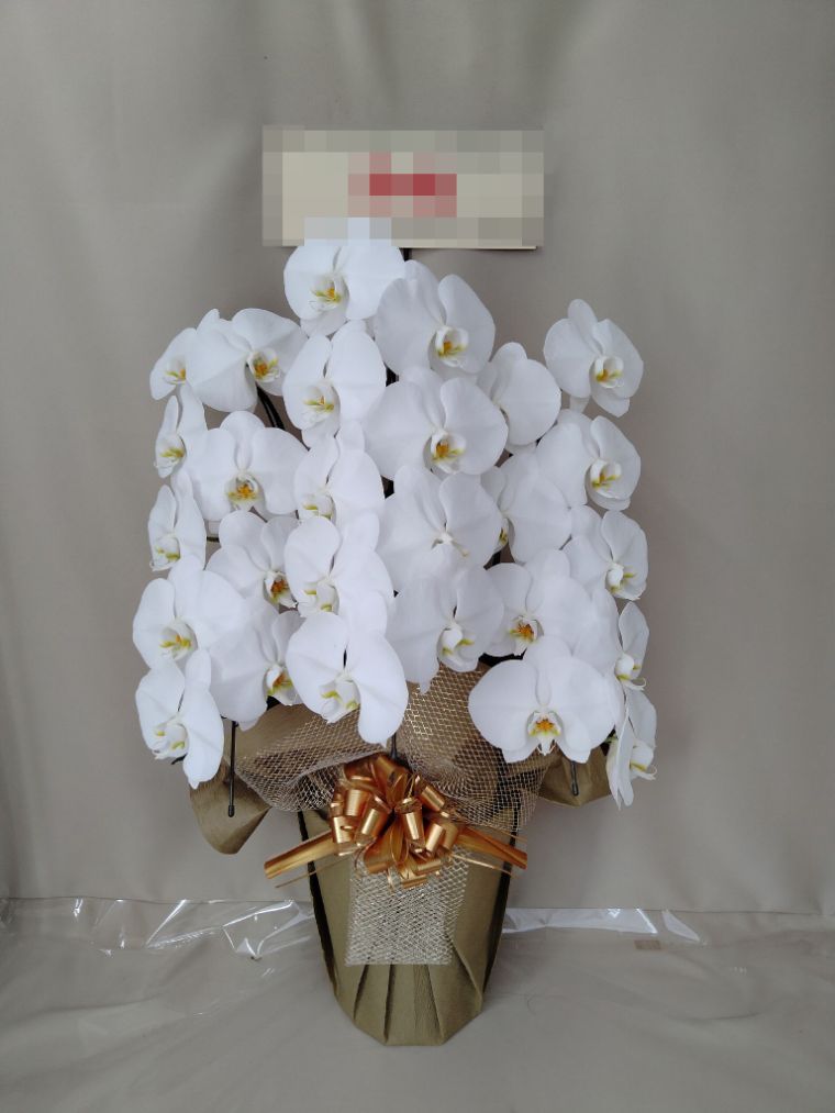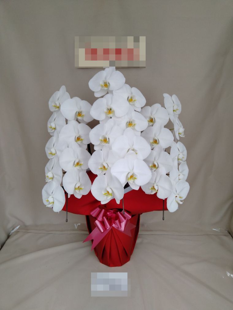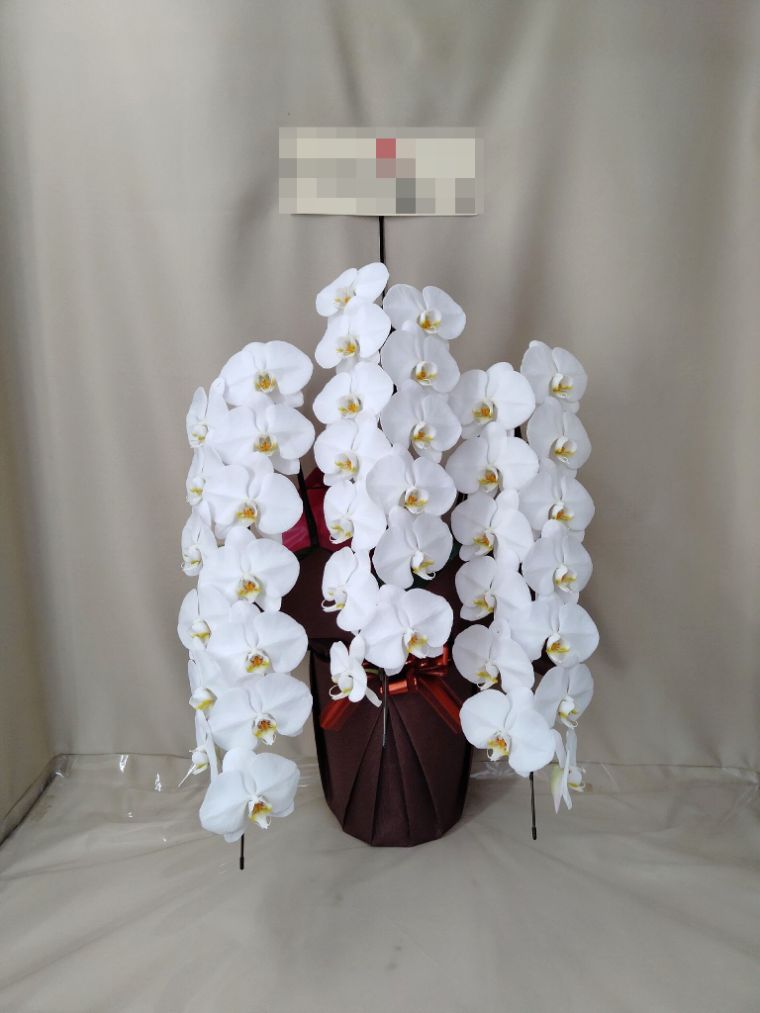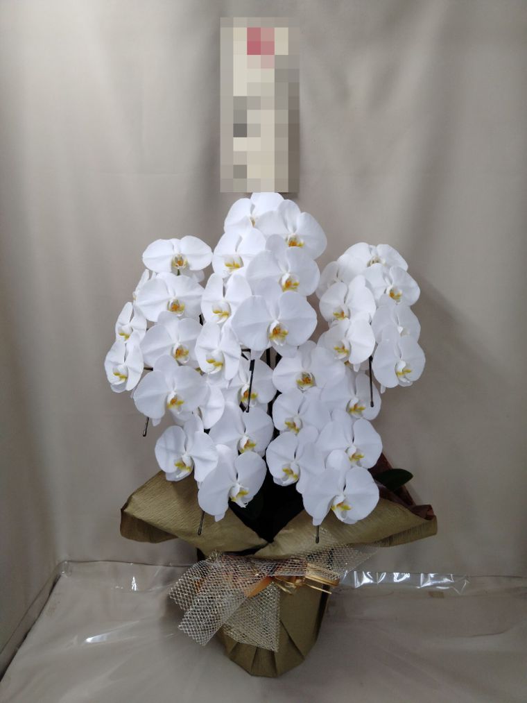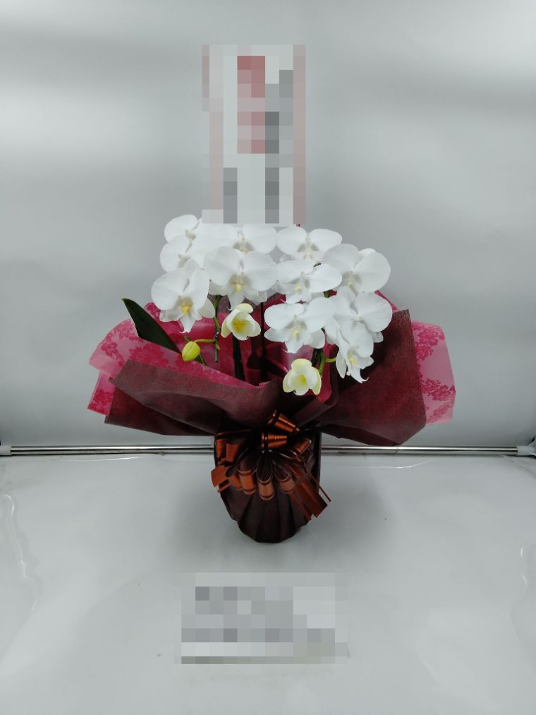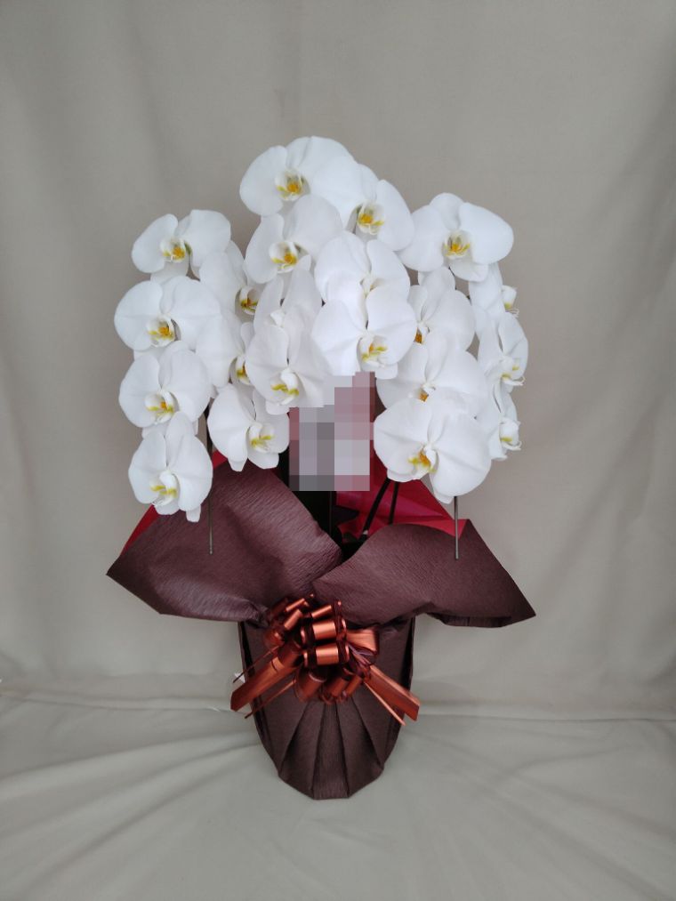 胡蝶蘭の実際にお届けした写真です。花秘書では発送前に写真をメールで送信致しますので安心して大切な顧客や取引様へのギフトにご利用頂けます。