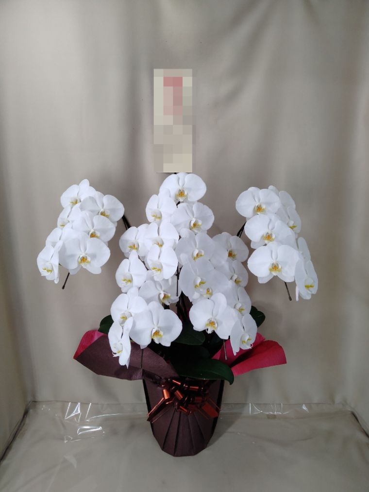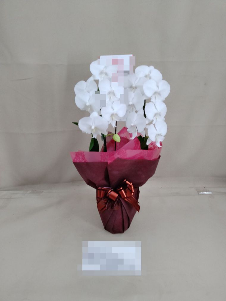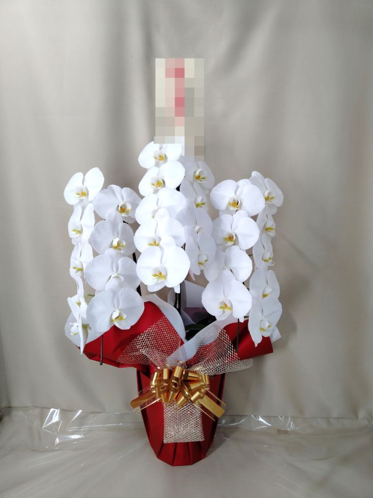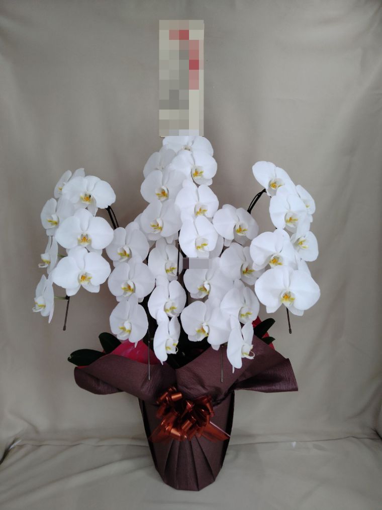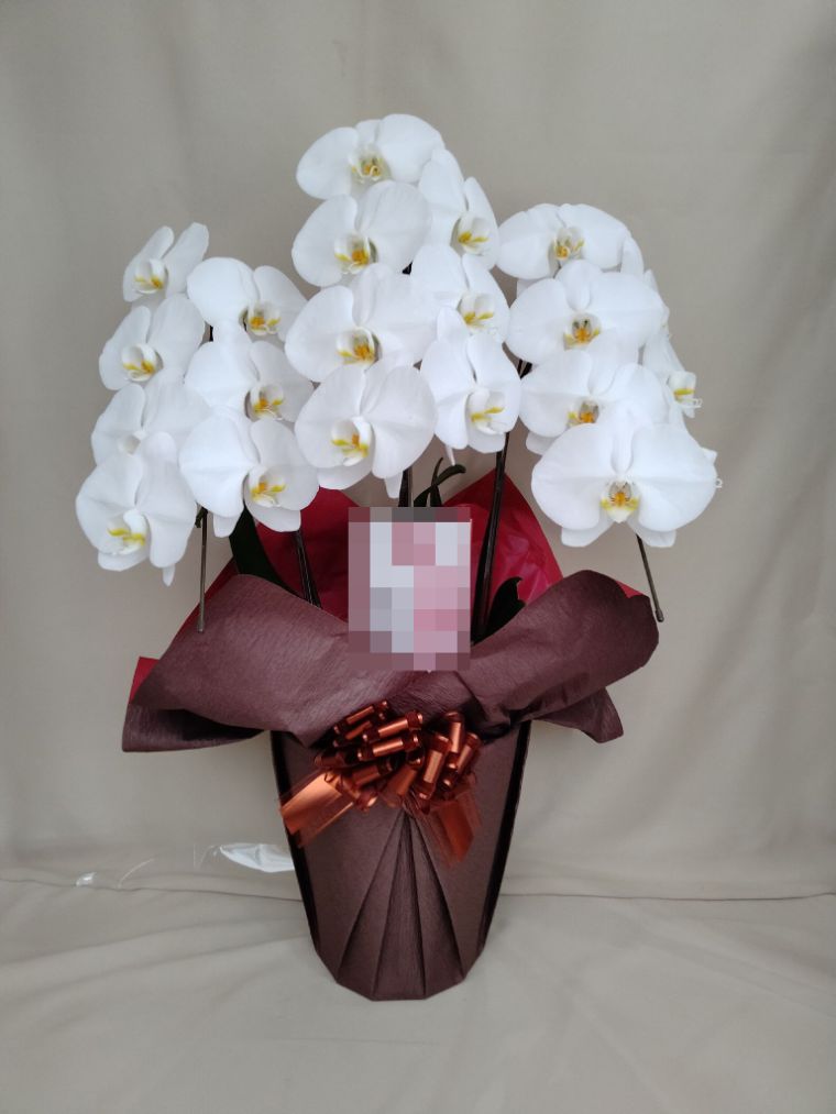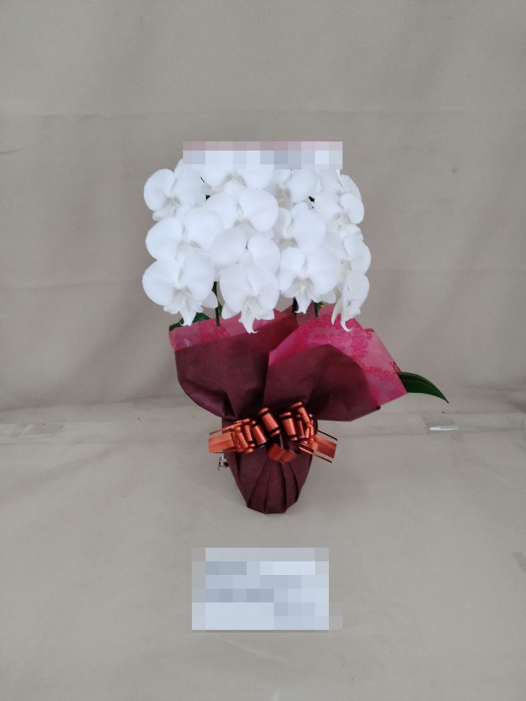 胡蝶蘭の実際にお届けした写真です。花秘書では発送前に写真をメールで送信致しますので安心して大切な顧客や取引様へのギフトにご利用頂けます。