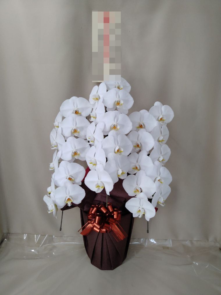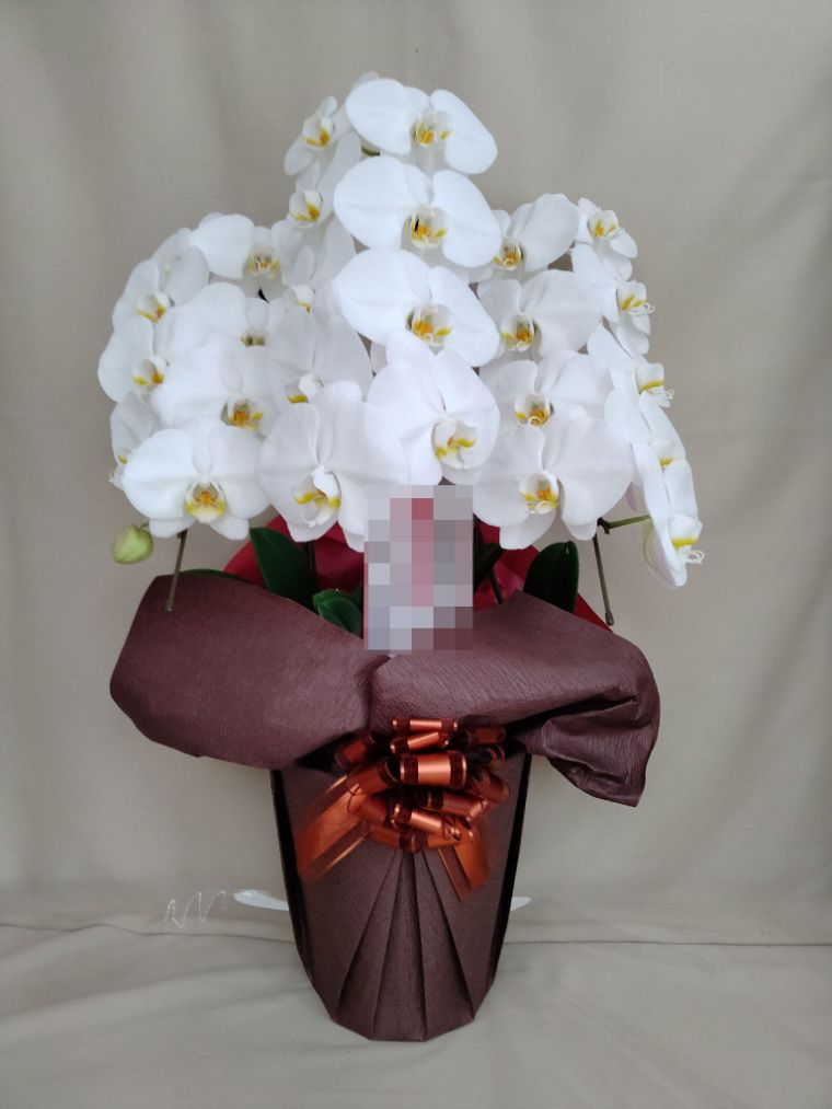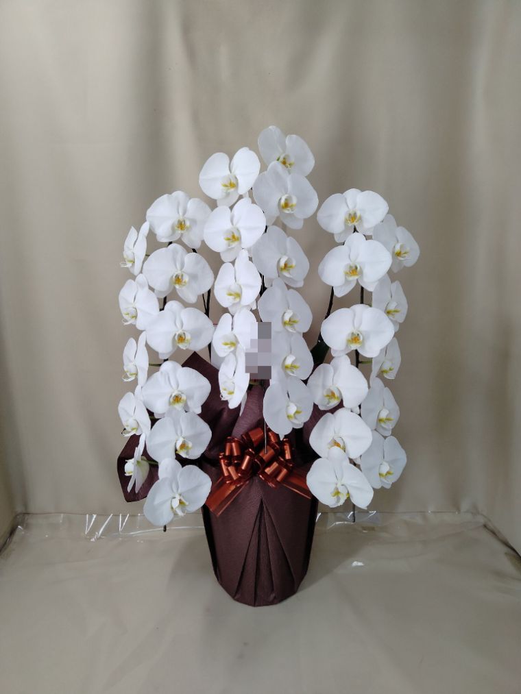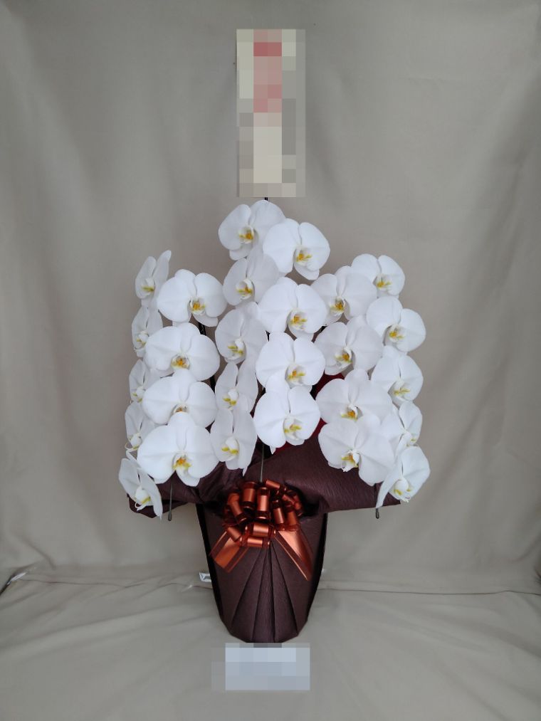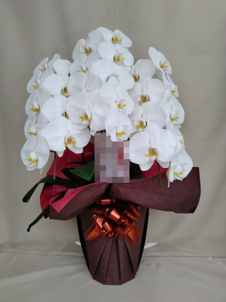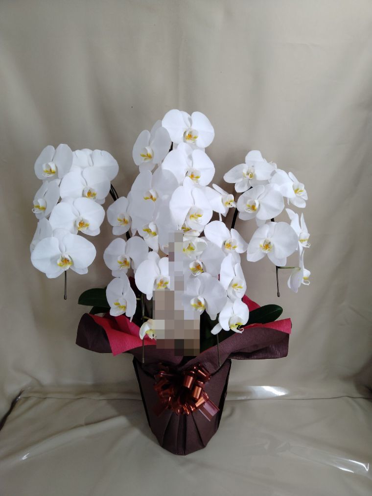 胡蝶蘭の実際にお届けした写真です。花秘書では発送前に写真をメールで送信致しますので安心して大切な顧客や取引様へのギフトにご利用頂けます。