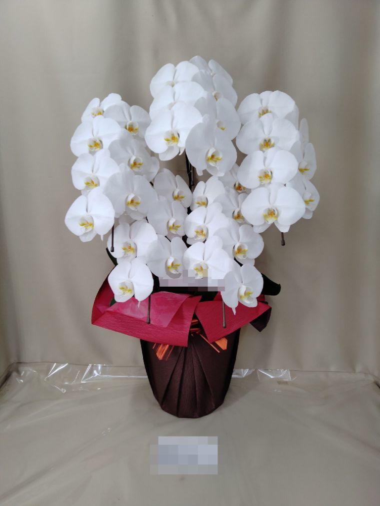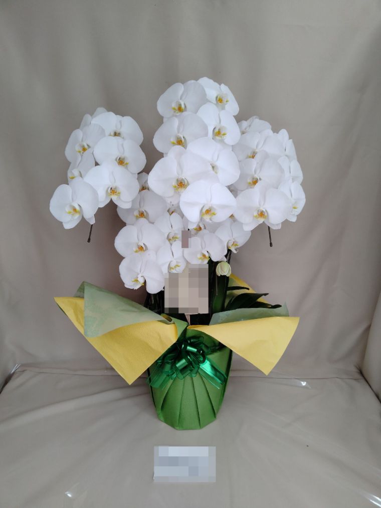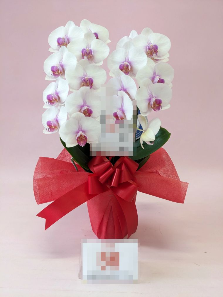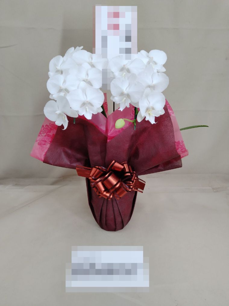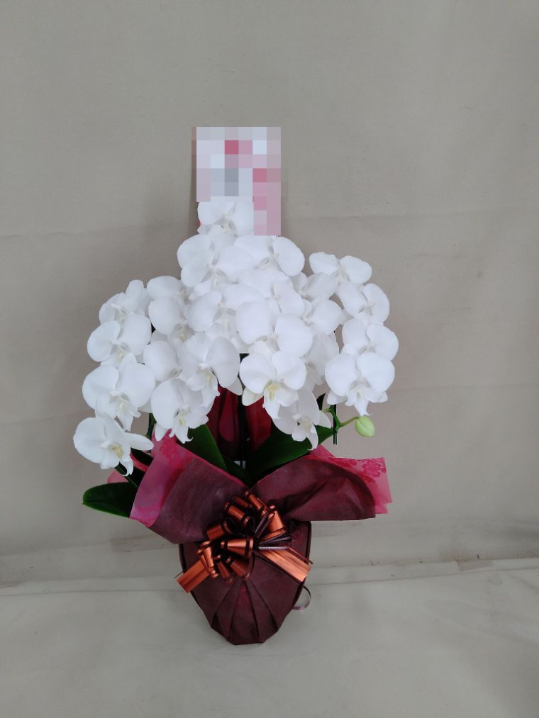 胡蝶蘭の実際にお届けした写真です。花秘書では発送前に写真をメールで送信致しますので安心して大切な顧客や取引様へのギフトにご利用頂けます。
