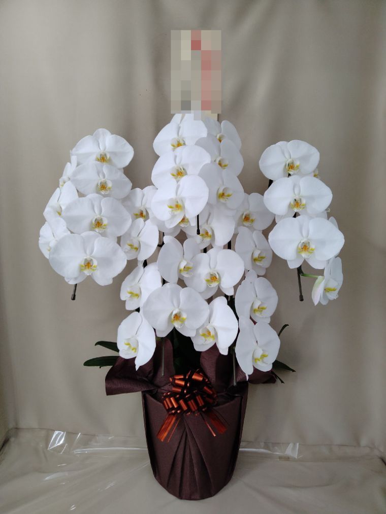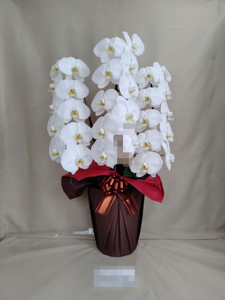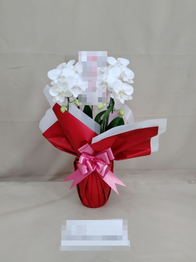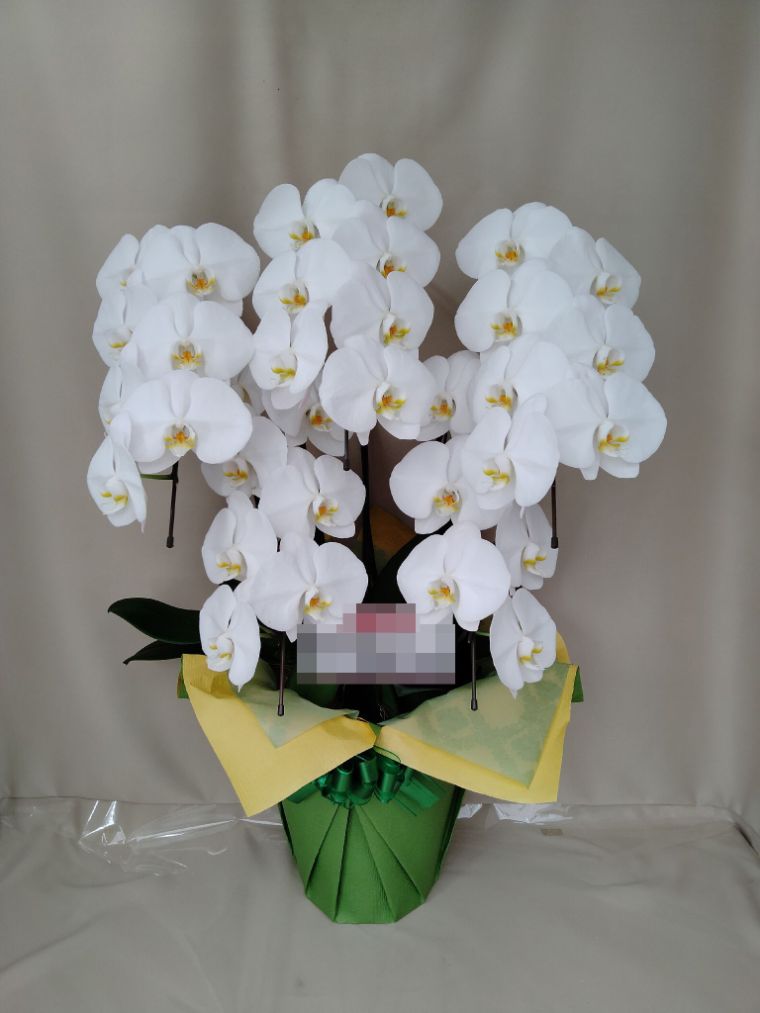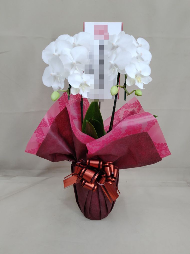 胡蝶蘭の実際にお届けした写真です。花秘書では発送前に写真をメールで送信致しますので安心して大切な顧客や取引様へのギフトにご利用頂けます。