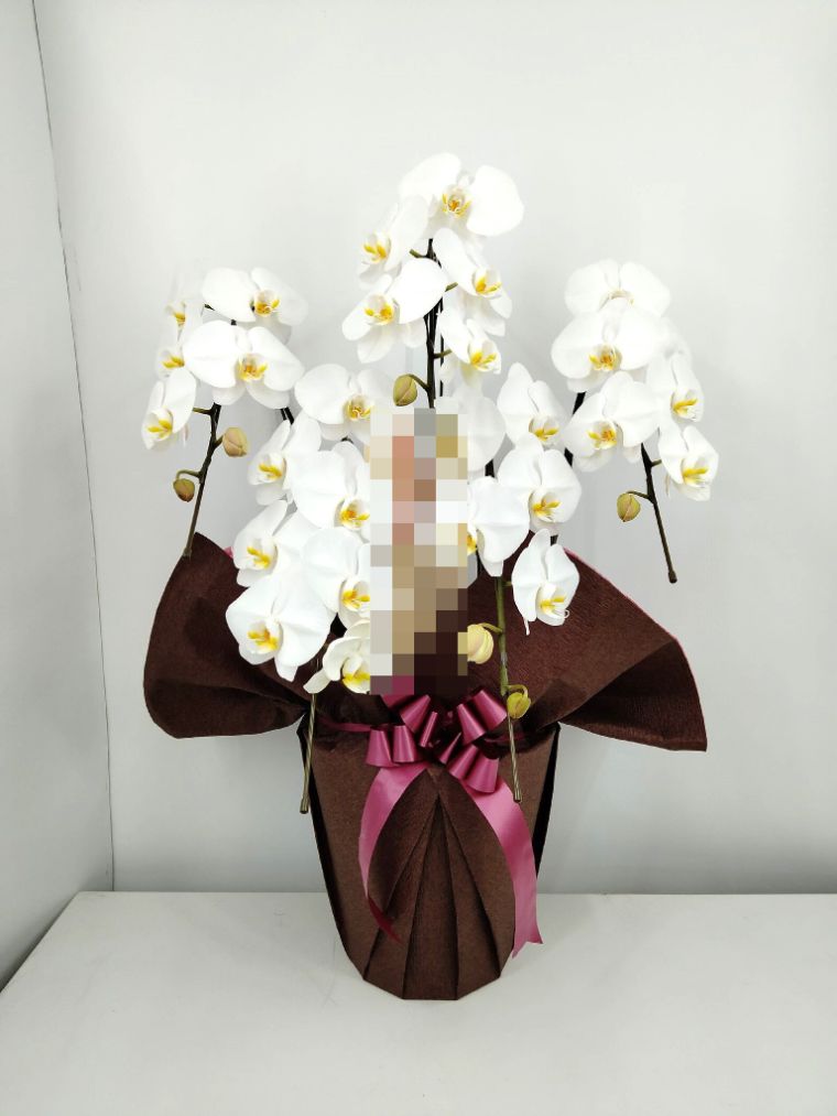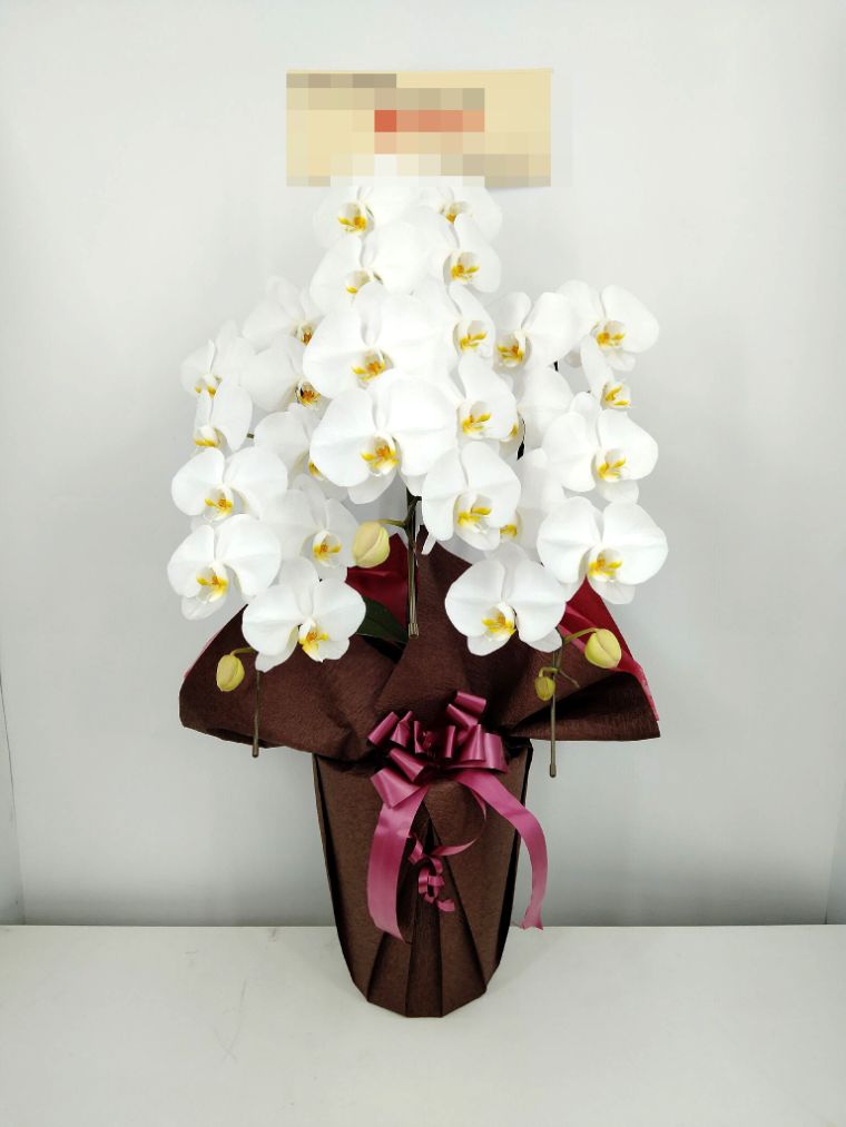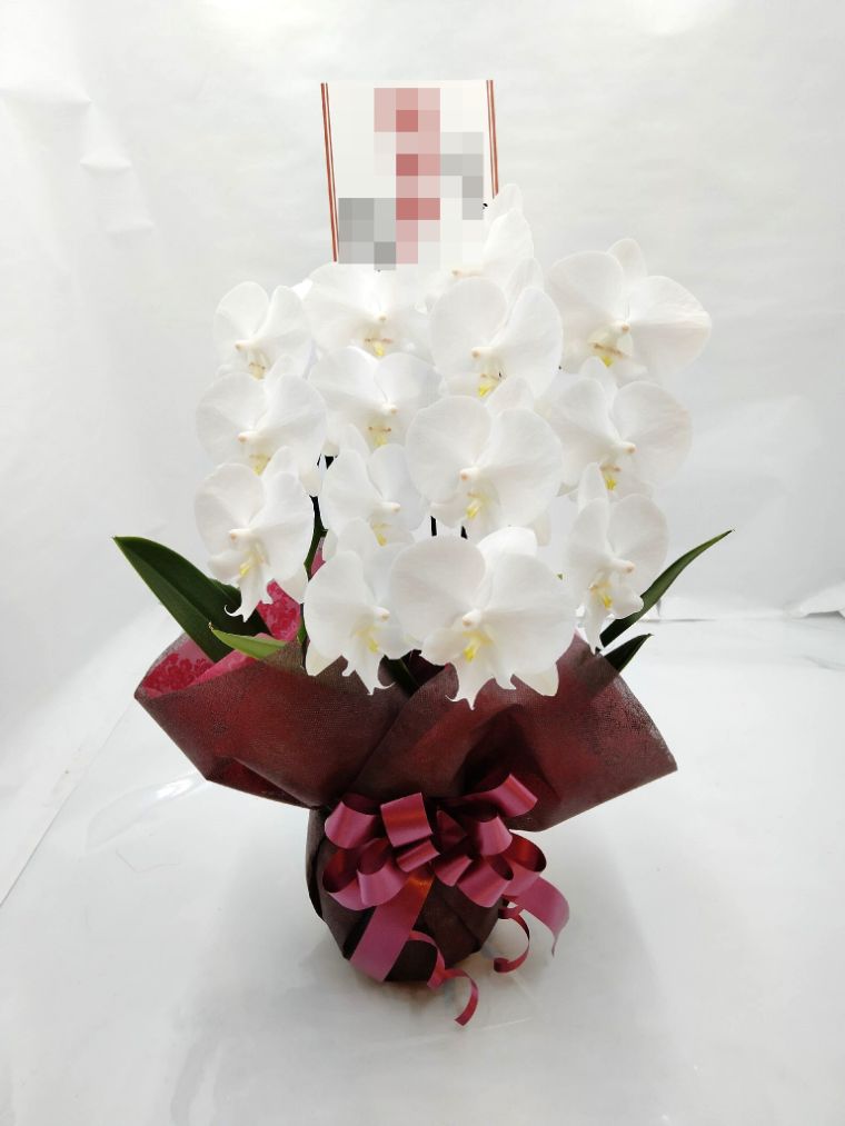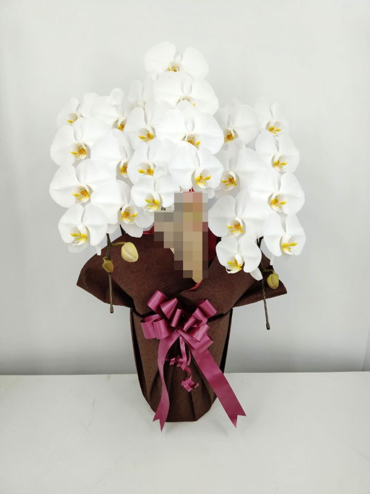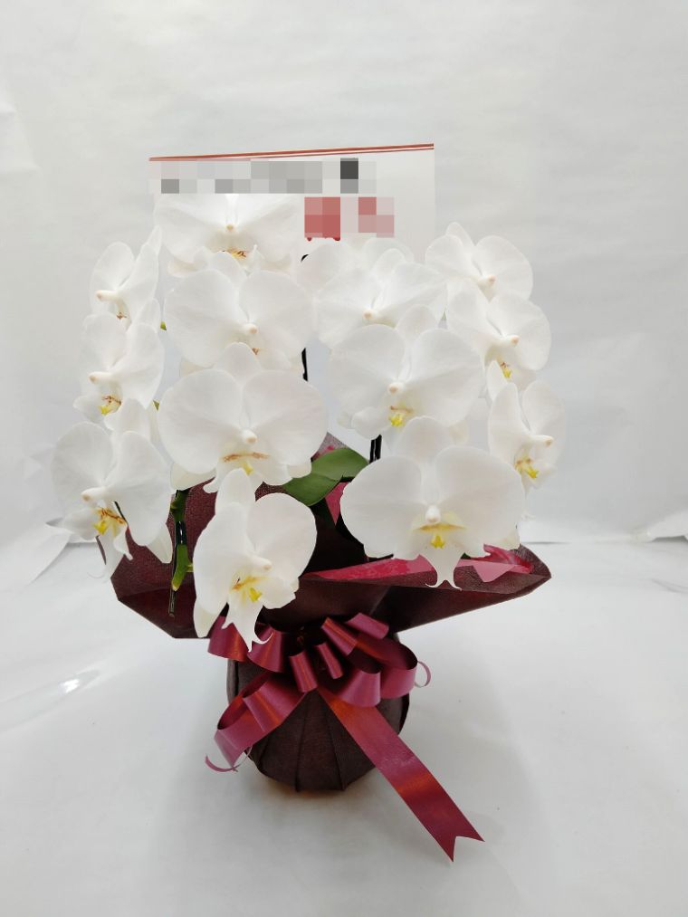 胡蝶蘭の実際にお届けした写真です。花秘書では発送前に写真をメールで送信致しますので安心して大切な顧客や取引様へのギフトにご利用頂けます。