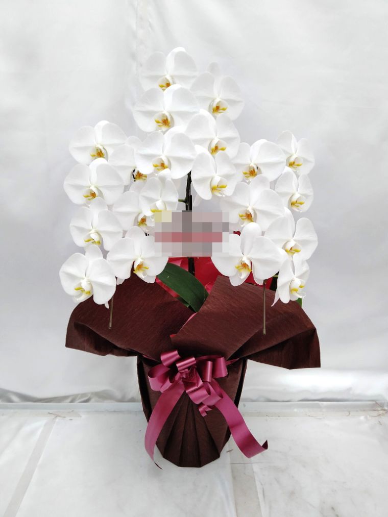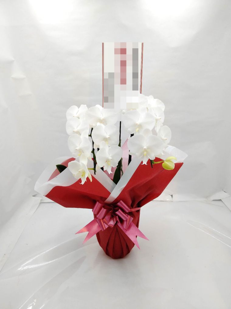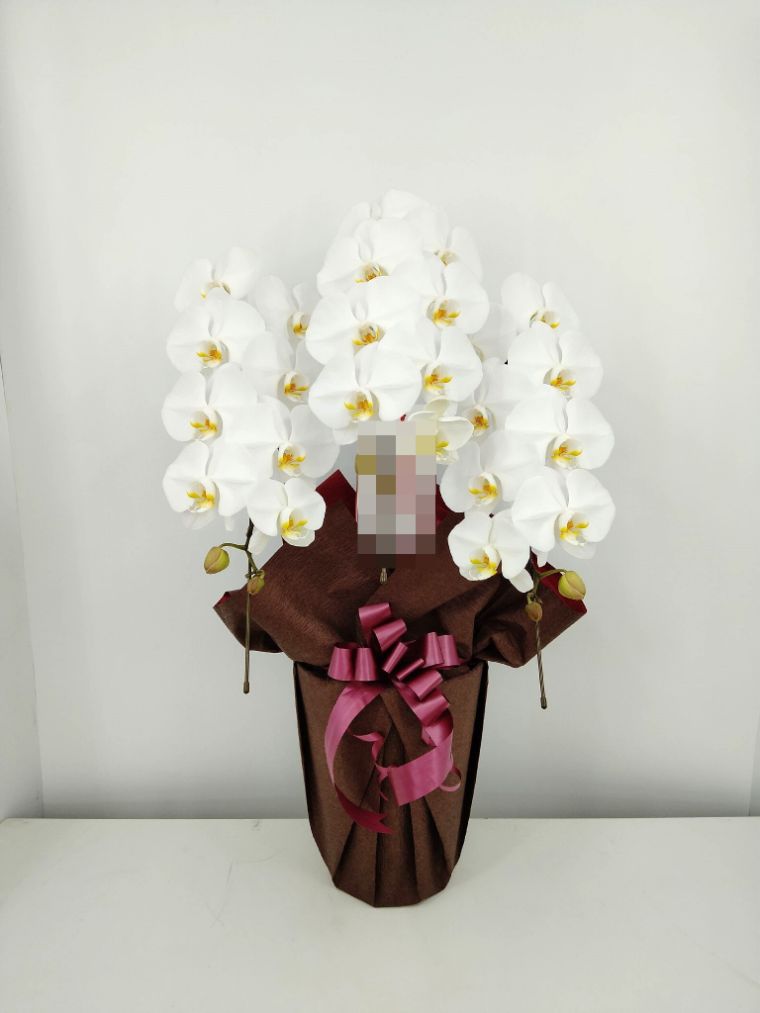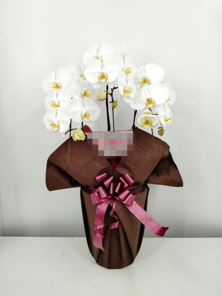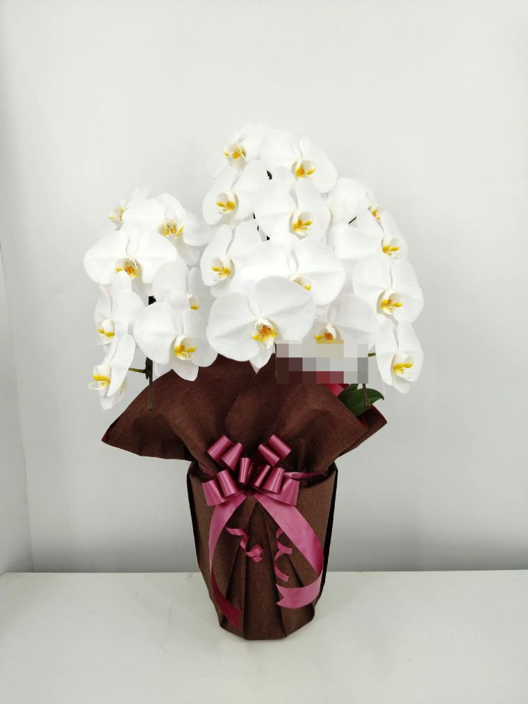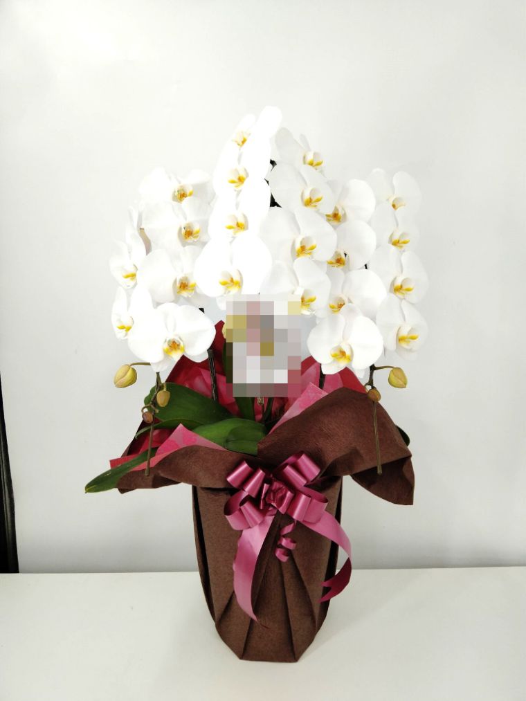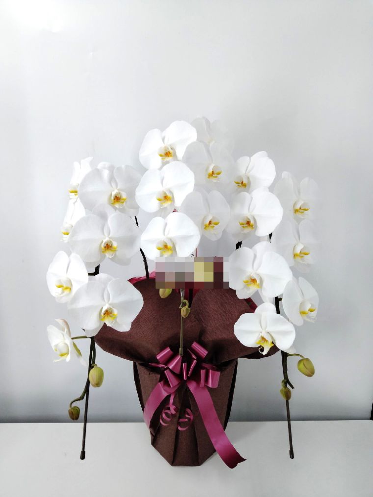 胡蝶蘭の実際にお届けした写真です。花秘書では発送前に写真をメールで送信致しますので安心して大切な顧客や取引様へのギフトにご利用頂けます。