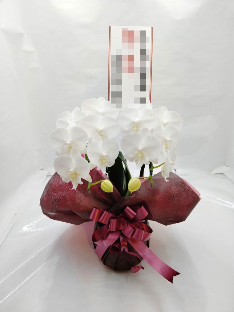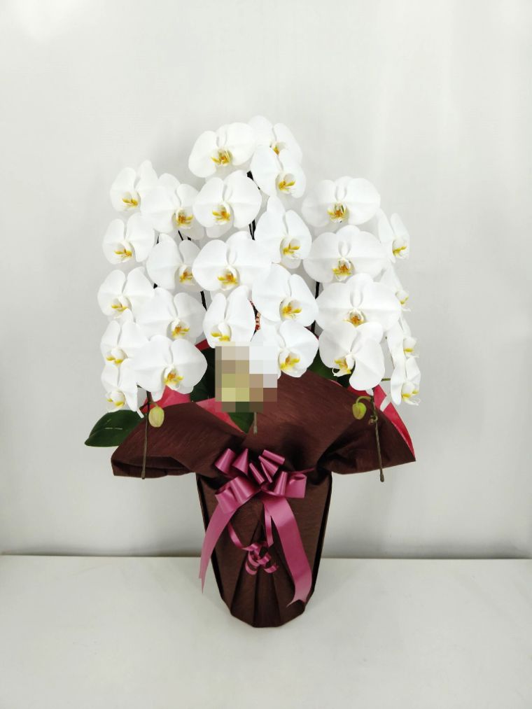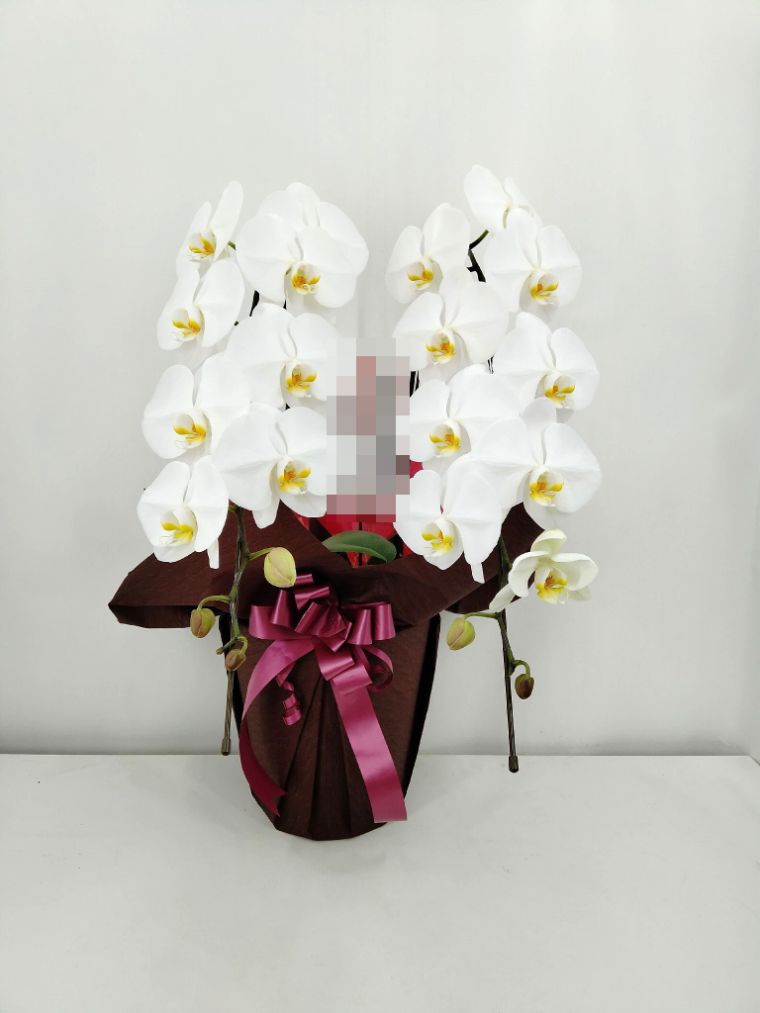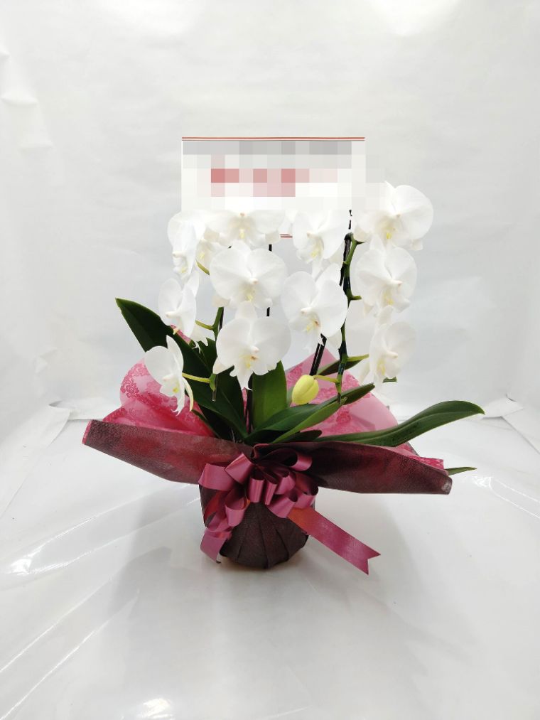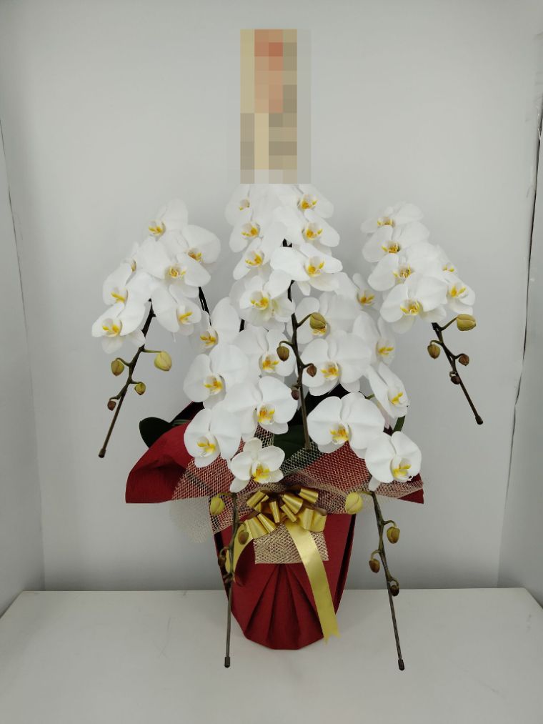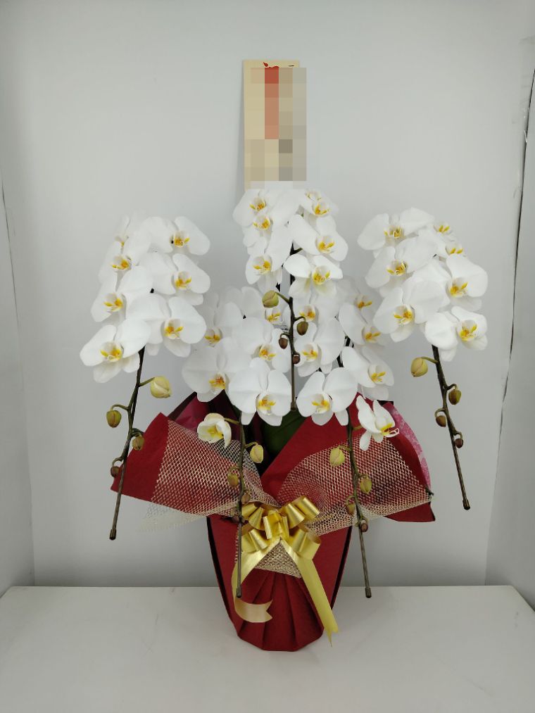 胡蝶蘭の実際にお届けした写真です。花秘書では発送前に写真をメールで送信致しますので安心して大切な顧客や取引様へのギフトにご利用頂けます。