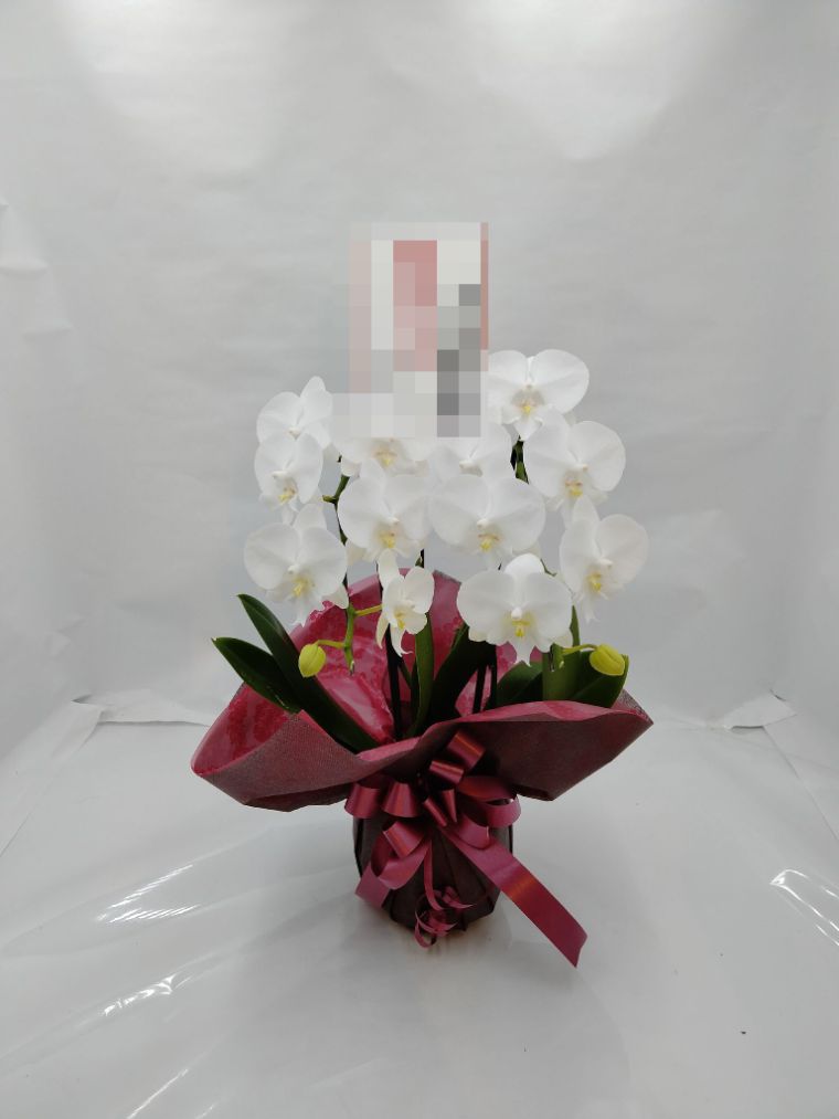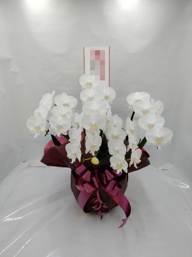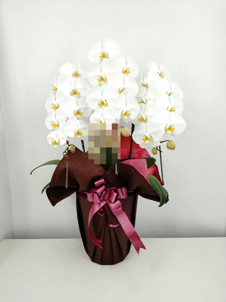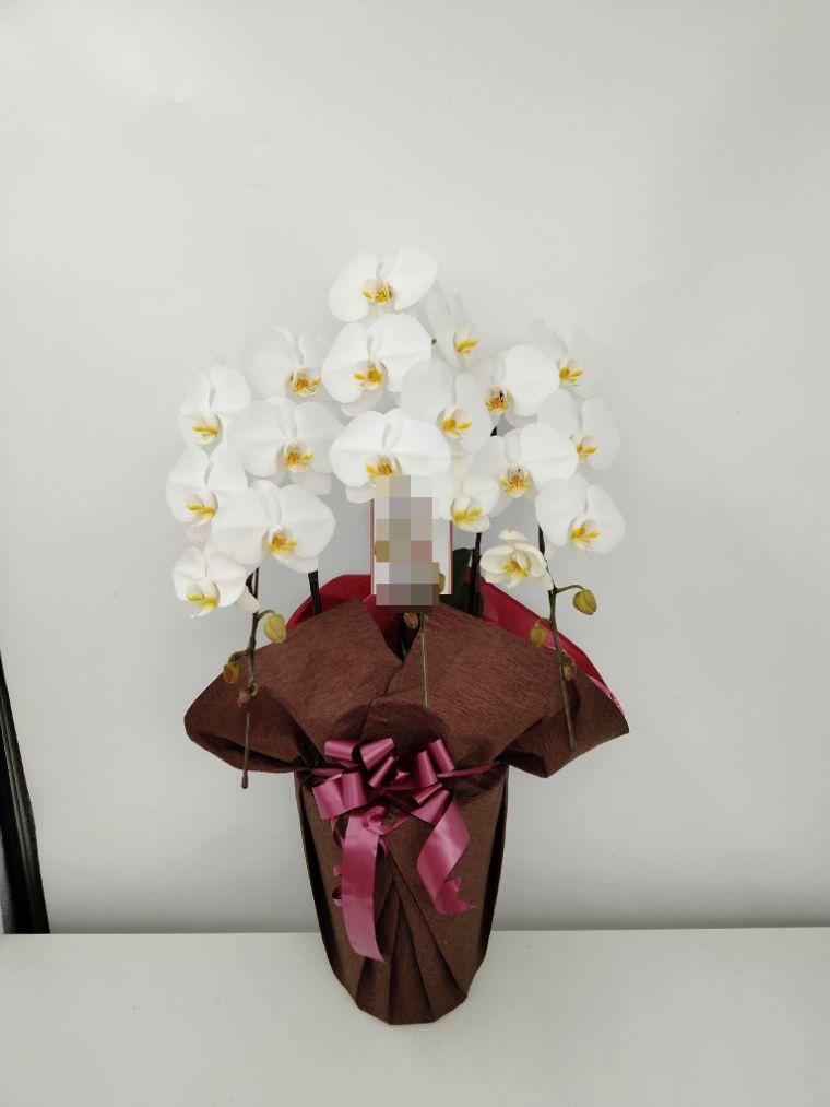 胡蝶蘭の実際にお届けした写真です。花秘書では発送前に写真をメールで送信致しますので安心して大切な顧客や取引様へのギフトにご利用頂けます。
