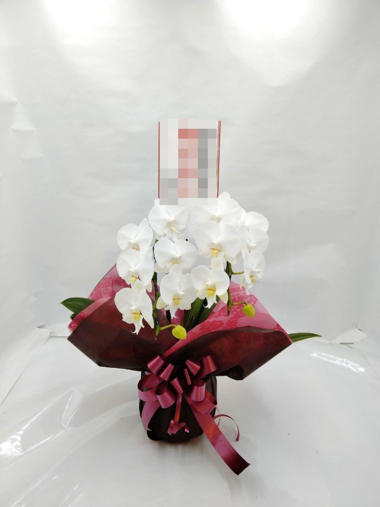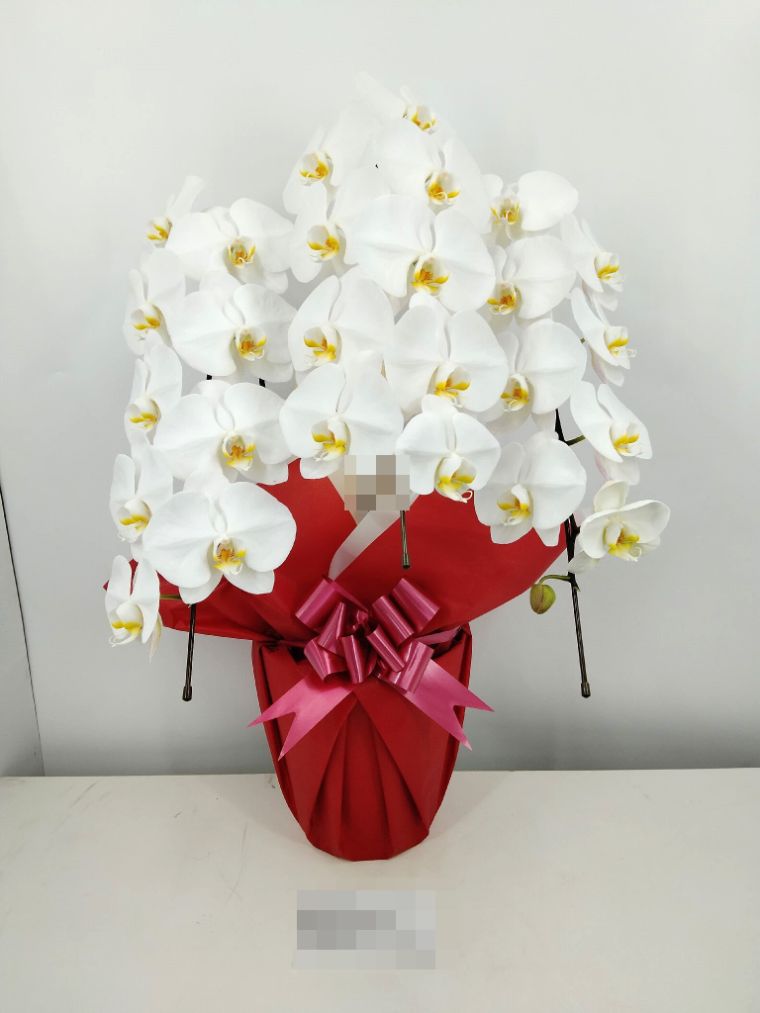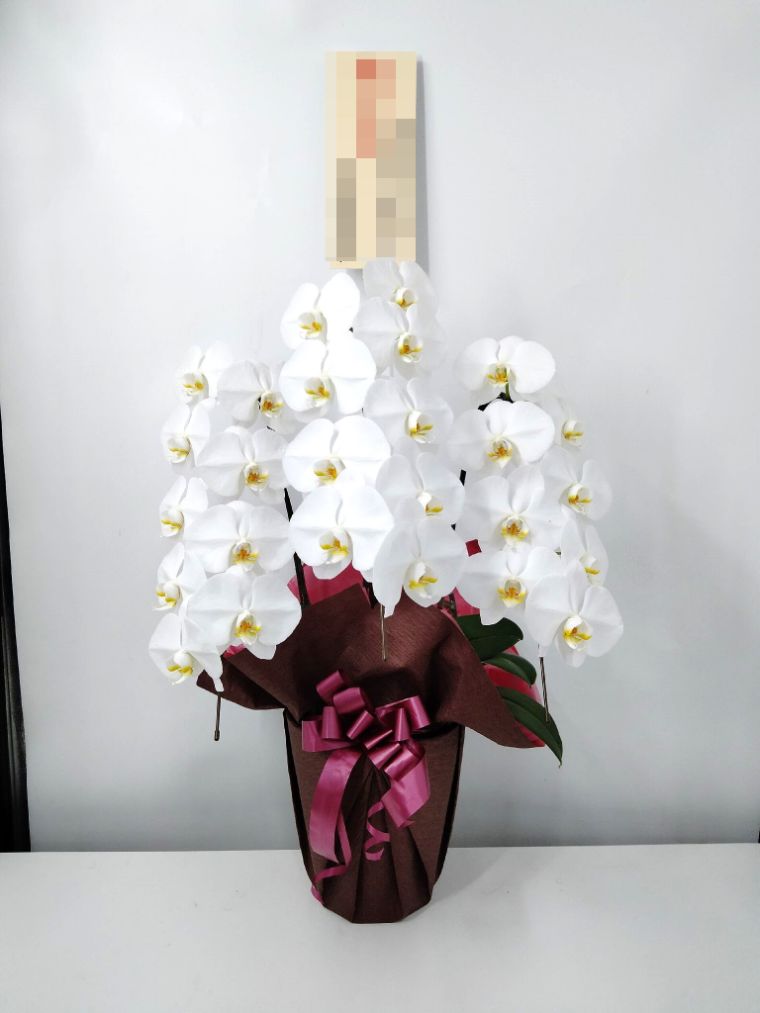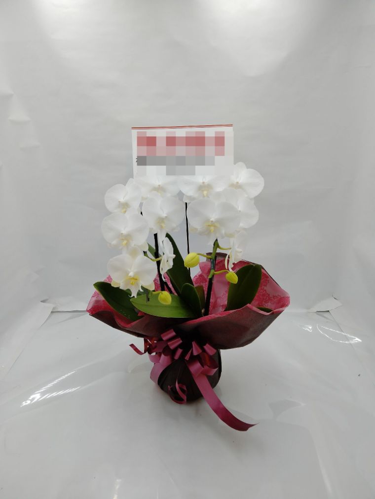 胡蝶蘭の実際にお届けした写真です。花秘書では発送前に写真をメールで送信致しますので安心して大切な顧客や取引様へのギフトにご利用頂けます。