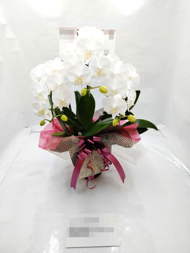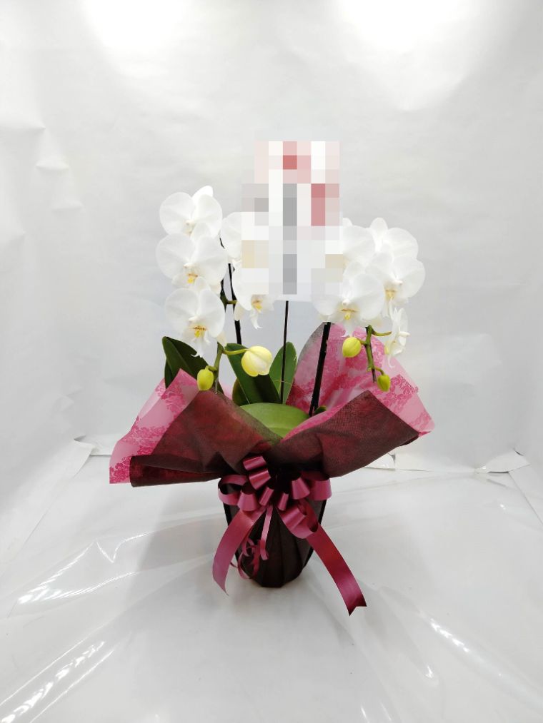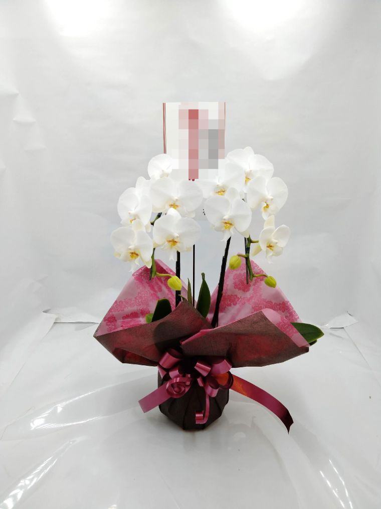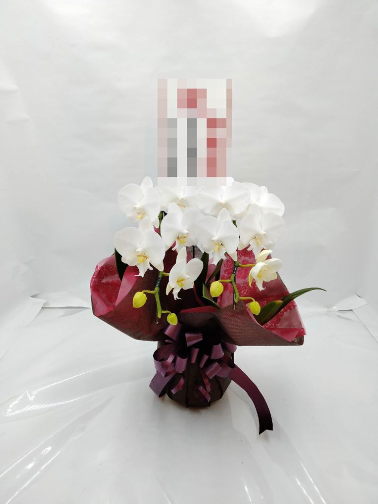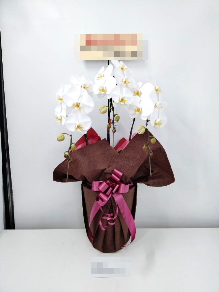 胡蝶蘭の実際にお届けした写真です。花秘書では発送前に写真をメールで送信致しますので安心して大切な顧客や取引様へのギフトにご利用頂けます。