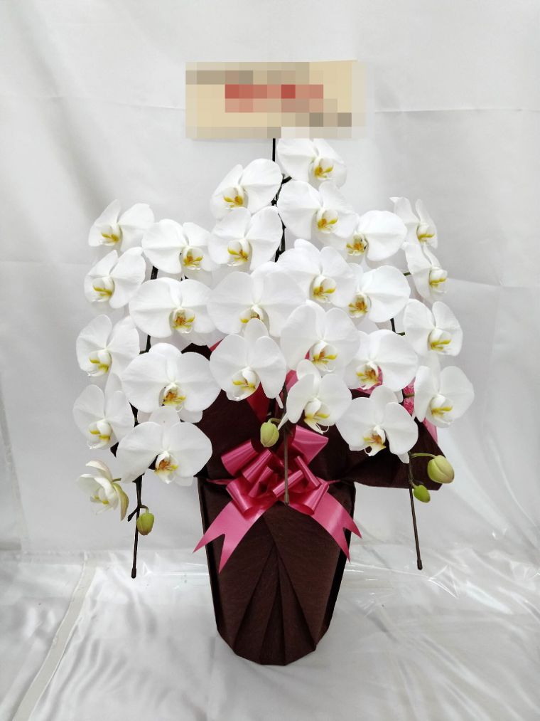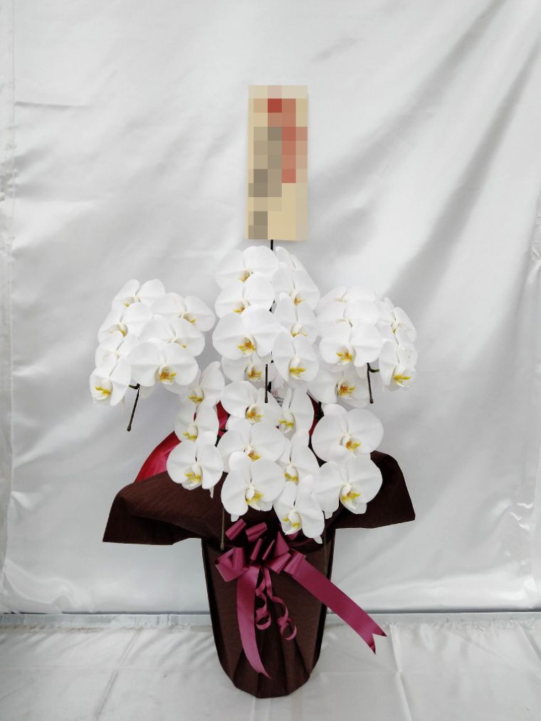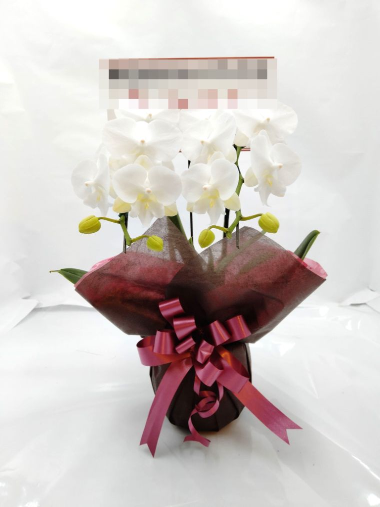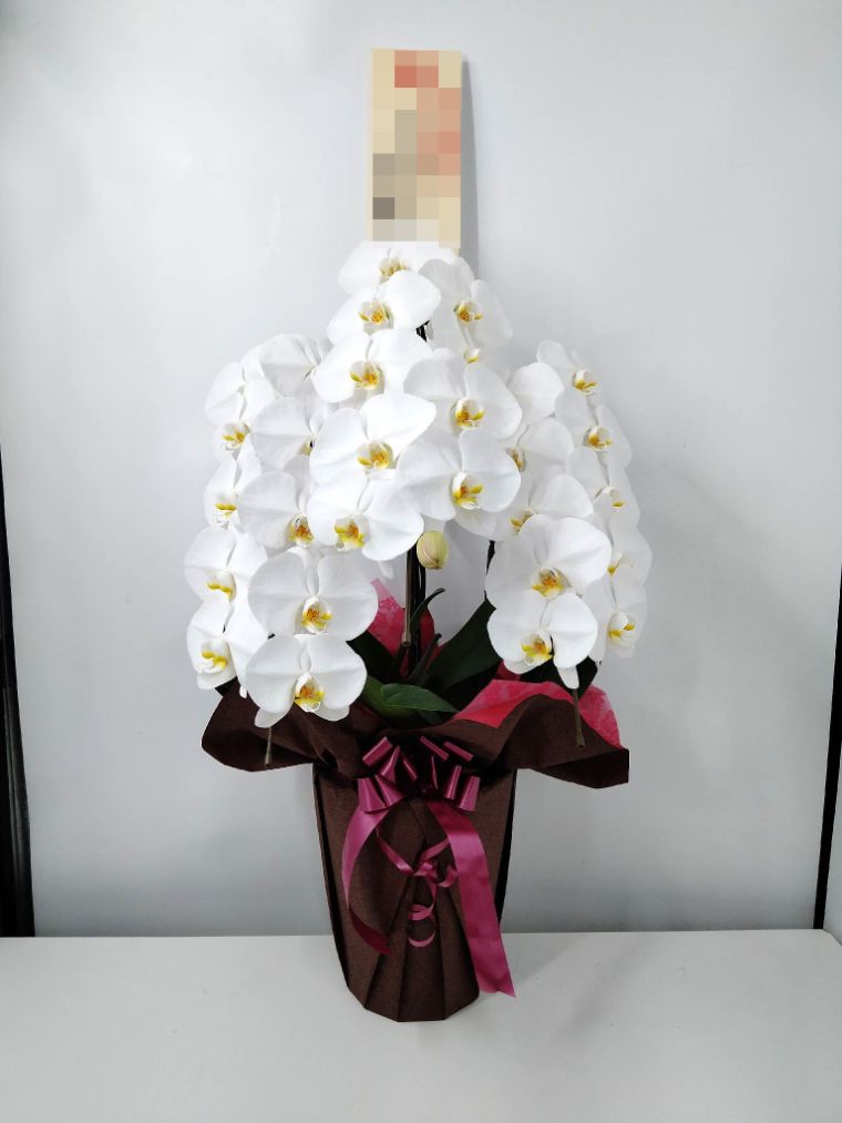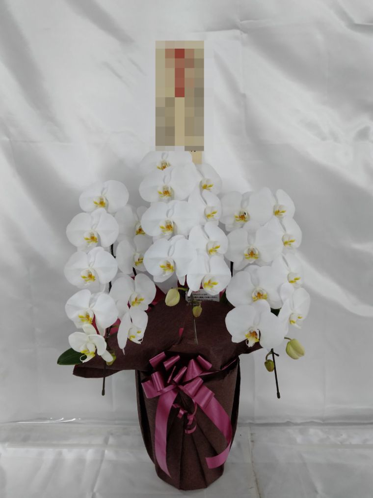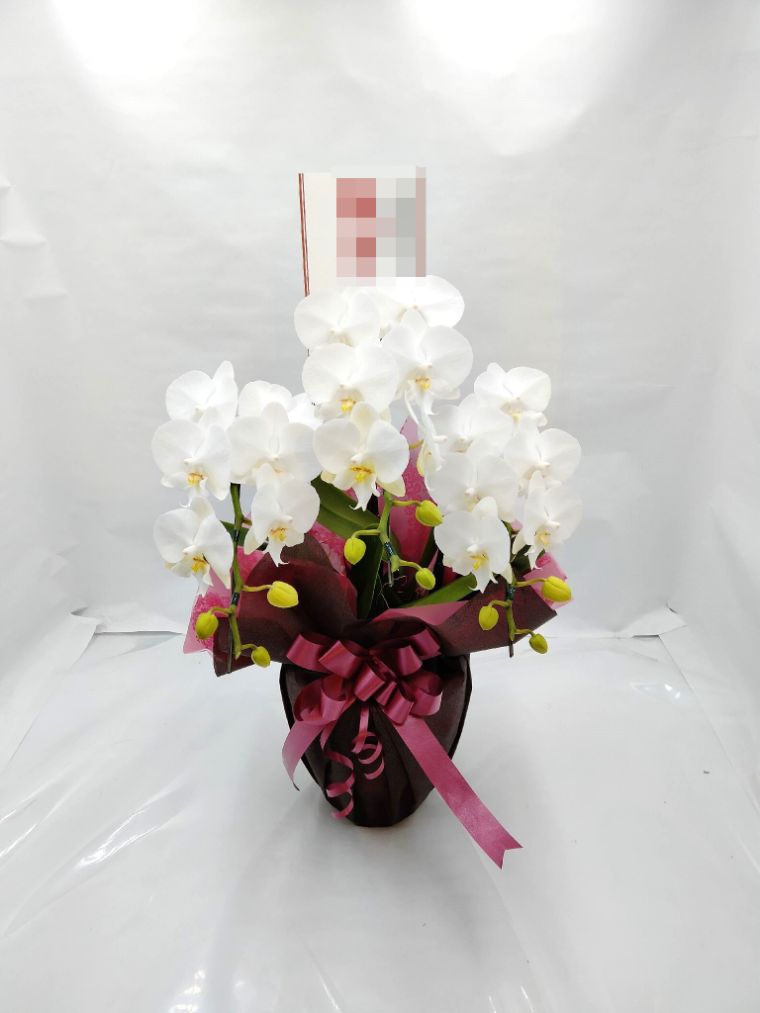 胡蝶蘭の実際にお届けした写真です。花秘書では発送前に写真をメールで送信致しますので安心して大切な顧客や取引様へのギフトにご利用頂けます。