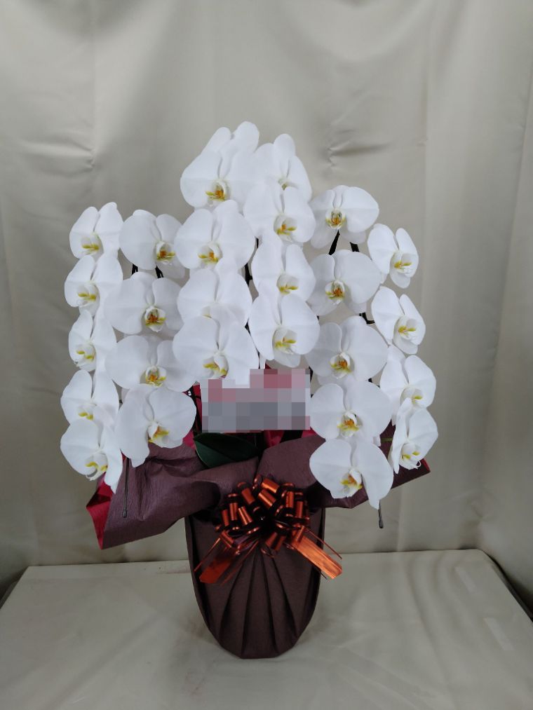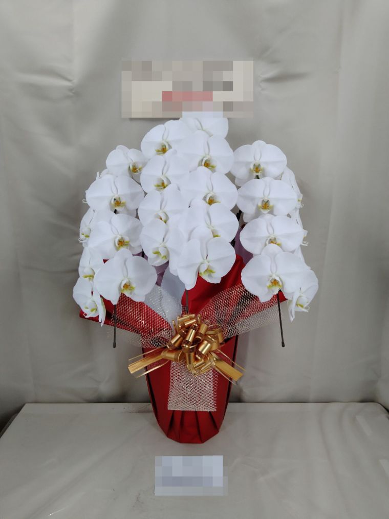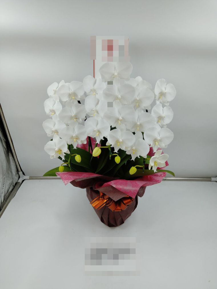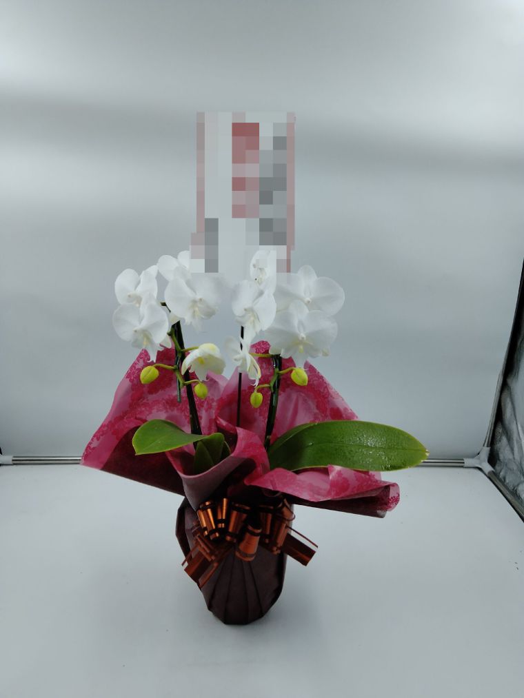 胡蝶蘭の実際にお届けした写真です。花秘書では発送前に写真をメールで送信致しますので安心して大切な顧客や取引様へのギフトにご利用頂けます。