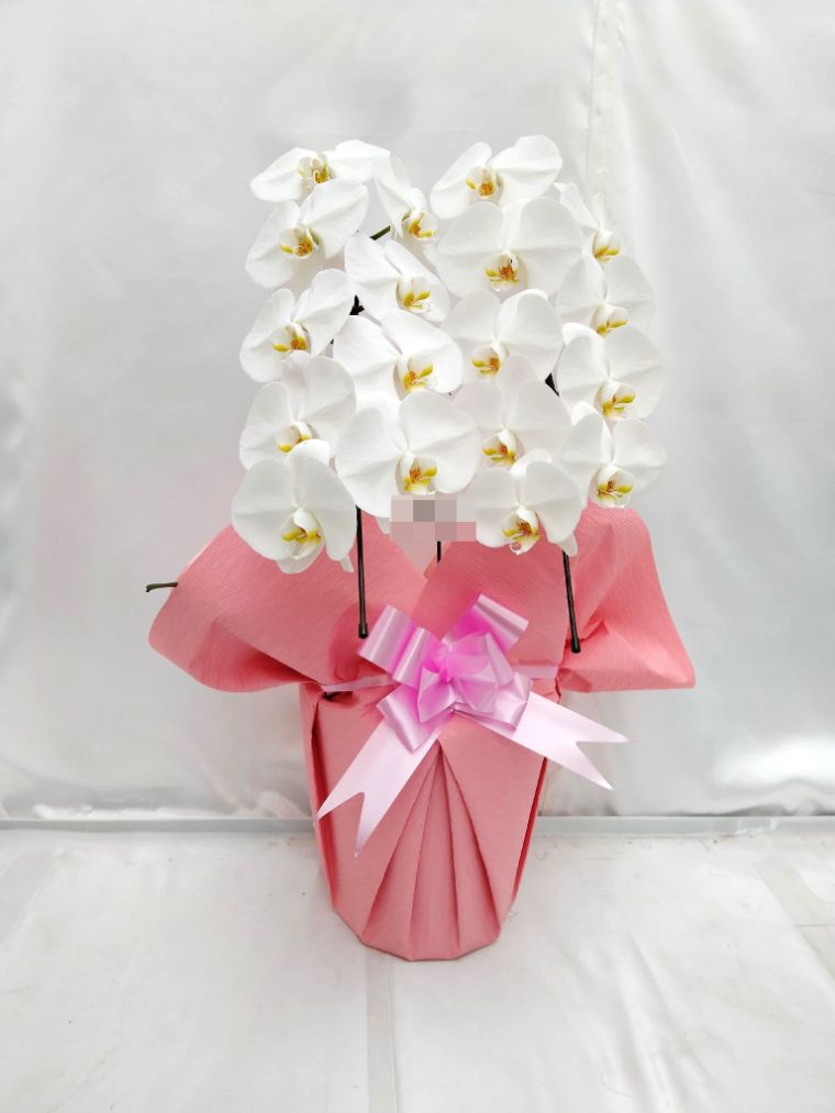 胡蝶蘭の実際にお届けした写真です。花秘書では発送前に写真をメールで送信致しますので安心して大切な顧客や取引様へのギフトにご利用頂けます。