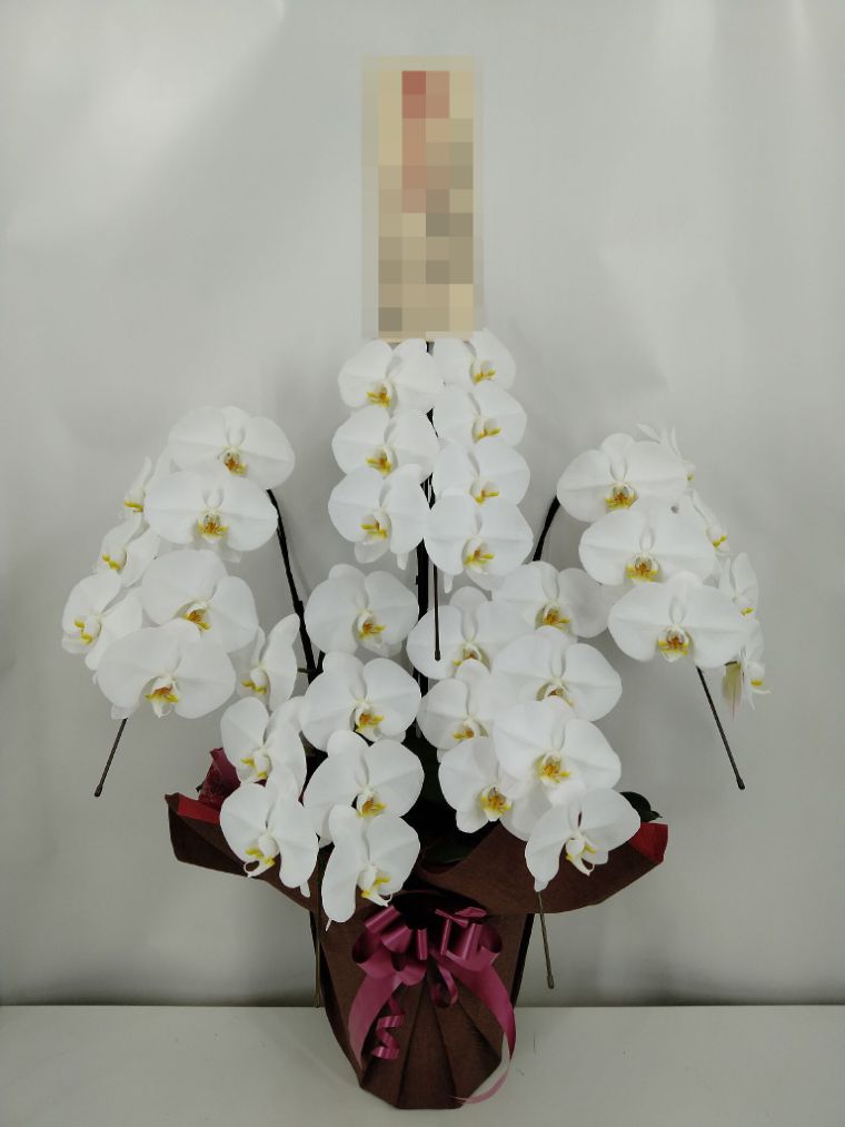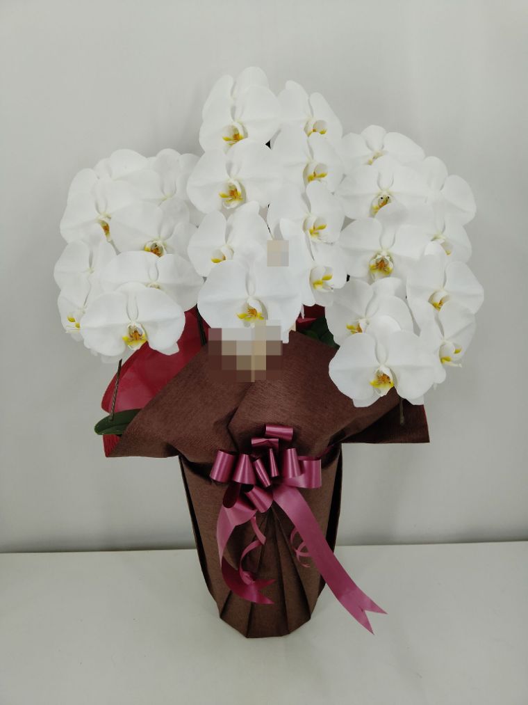胡蝶蘭の実際にお届けした写真です。花秘書では発送前に写真をメールで送信致しますので安心して大切な顧客や取引様へのギフトにご利用頂けます。