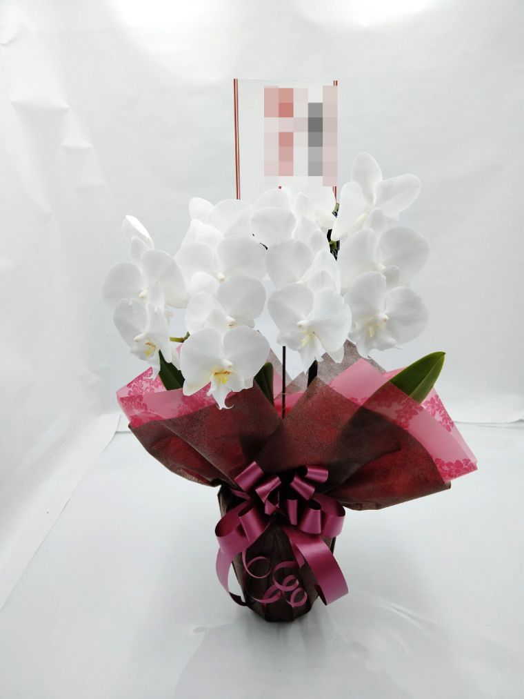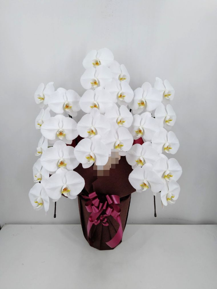 胡蝶蘭の実際にお届けした写真です。花秘書では発送前に写真をメールで送信致しますので安心して大切な顧客や取引様へのギフトにご利用頂けます。