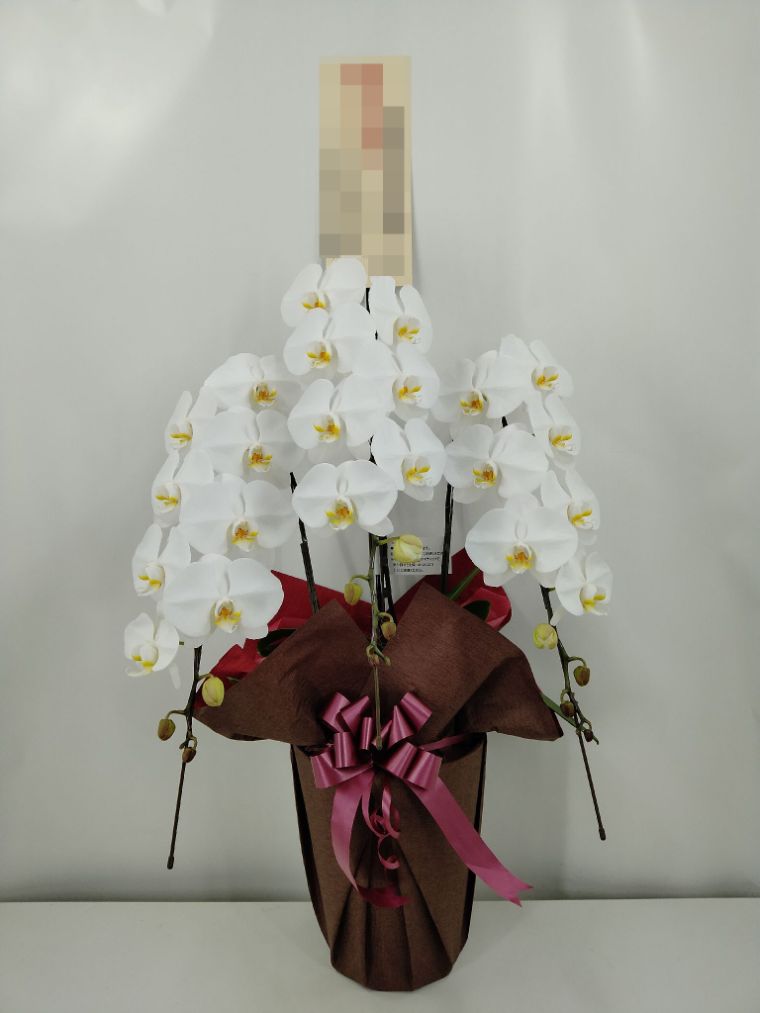 胡蝶蘭の実際にお届けした写真です。花秘書では発送前に写真をメールで送信致しますので安心して大切な顧客や取引様へのギフトにご利用頂けます。