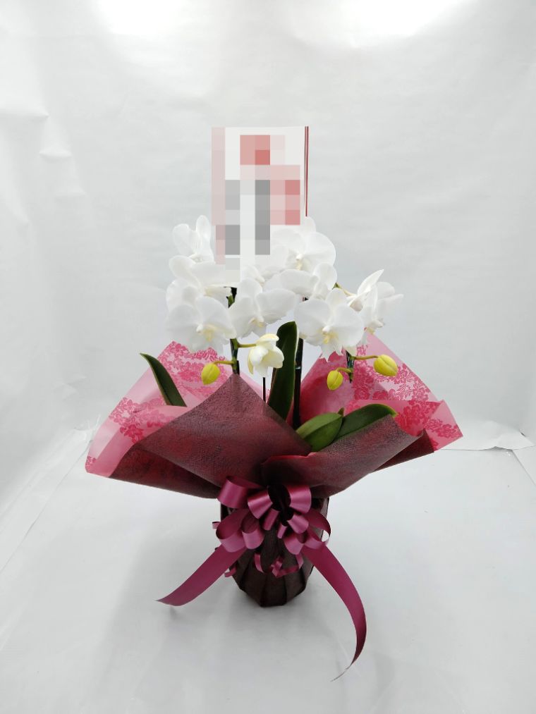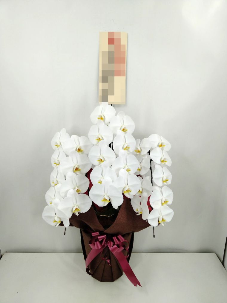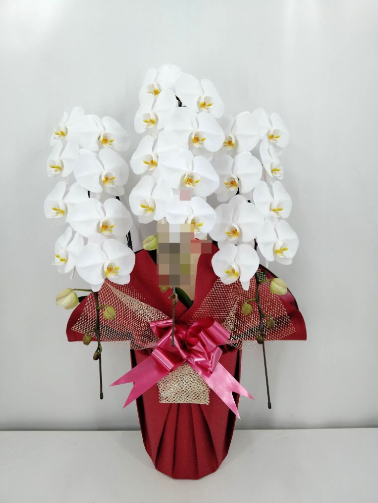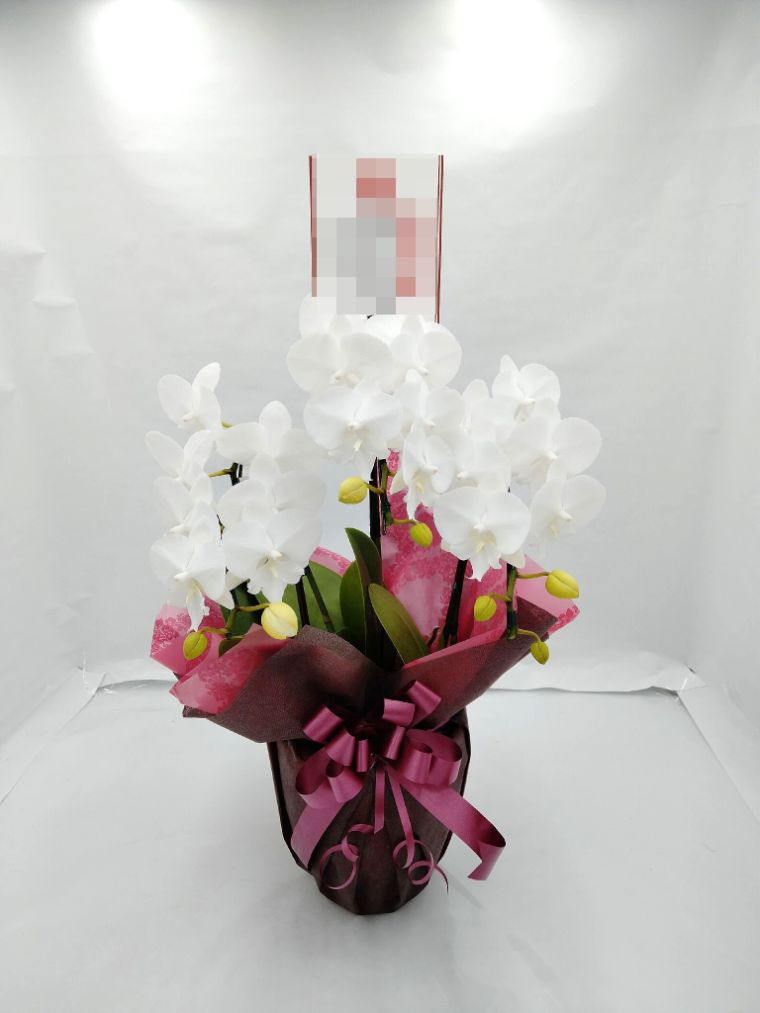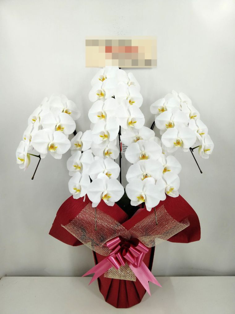胡蝶蘭の実際にお届けした写真です。花秘書では発送前に写真をメールで送信致しますので安心して大切な顧客や取引様へのギフトにご利用頂けます。