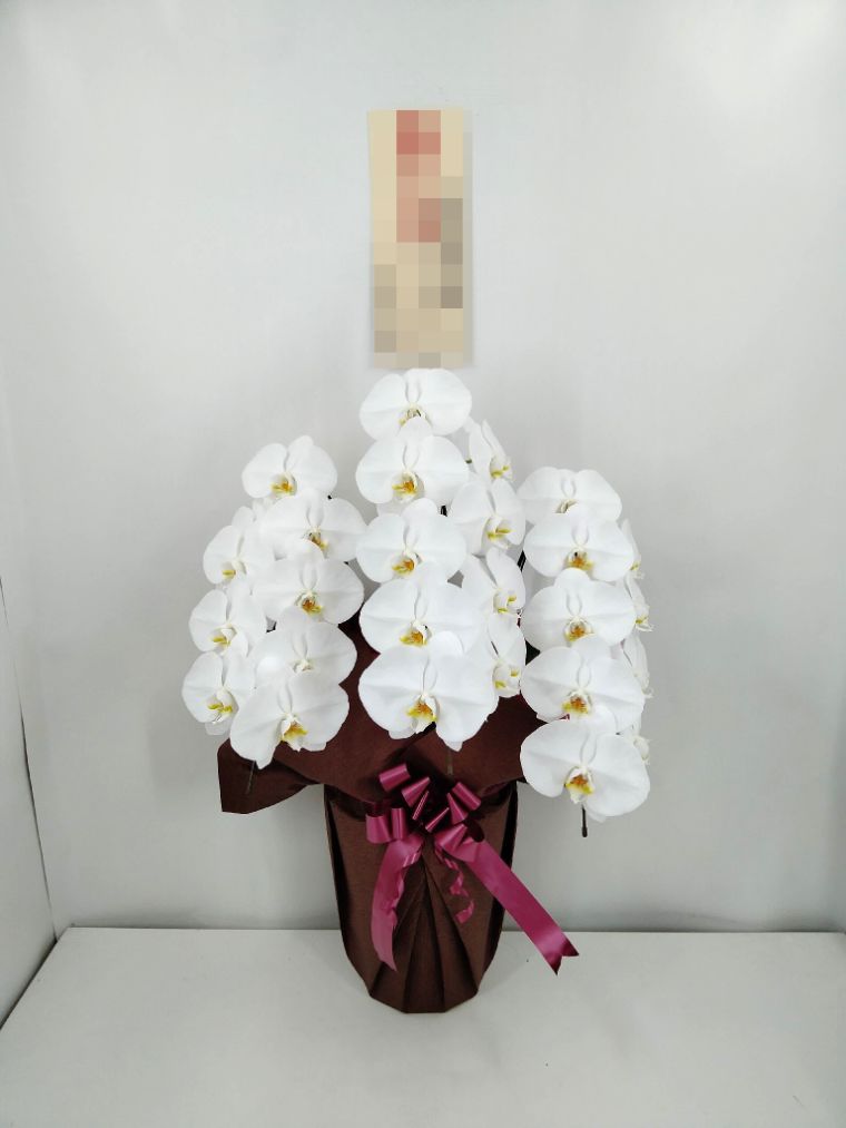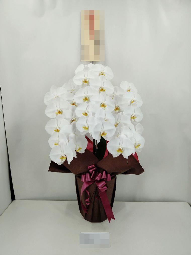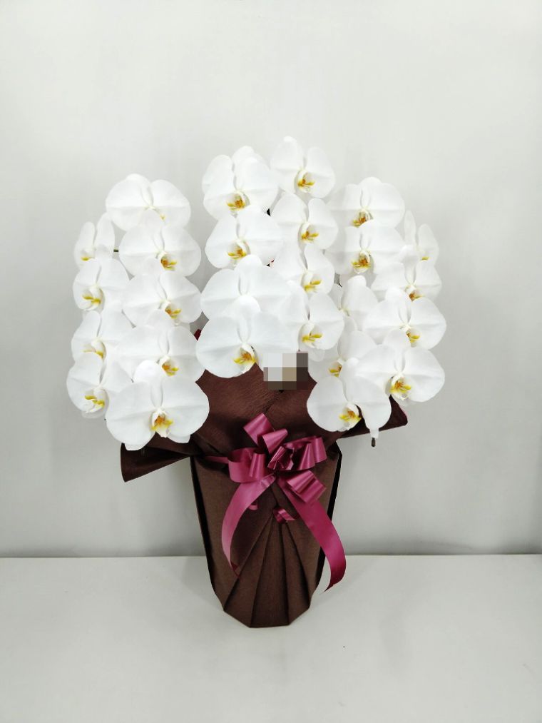 胡蝶蘭の実際にお届けした写真です。花秘書では発送前に写真をメールで送信致しますので安心して大切な顧客や取引様へのギフトにご利用頂けます。