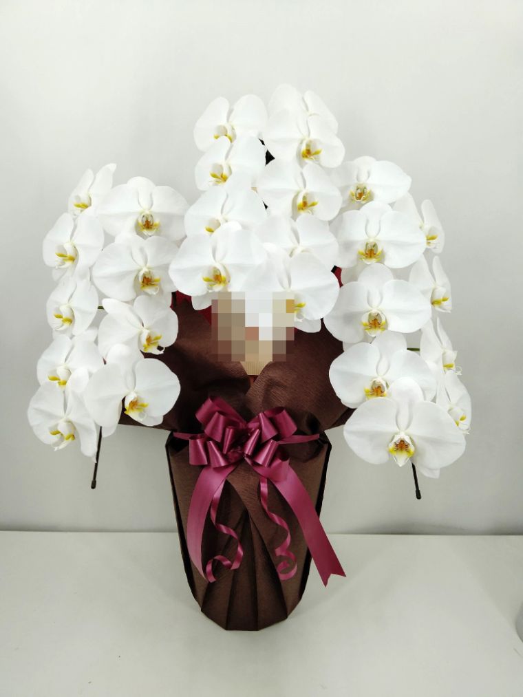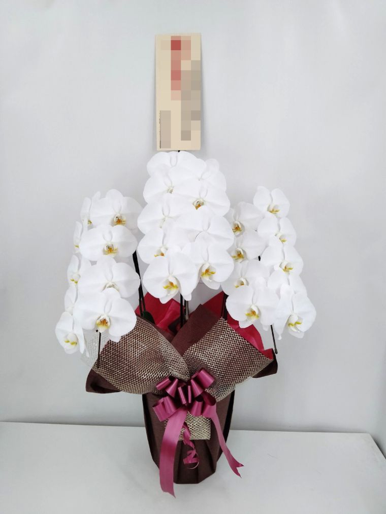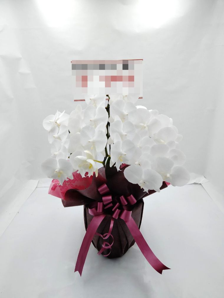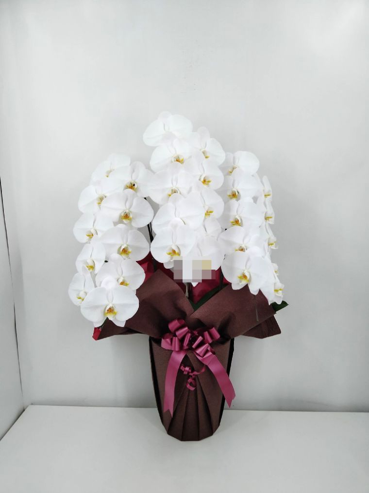 胡蝶蘭の実際にお届けした写真です。花秘書では発送前に写真をメールで送信致しますので安心して大切な顧客や取引様へのギフトにご利用頂けます。