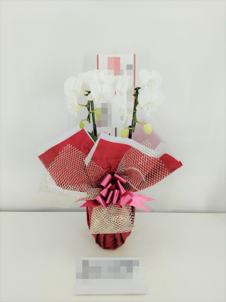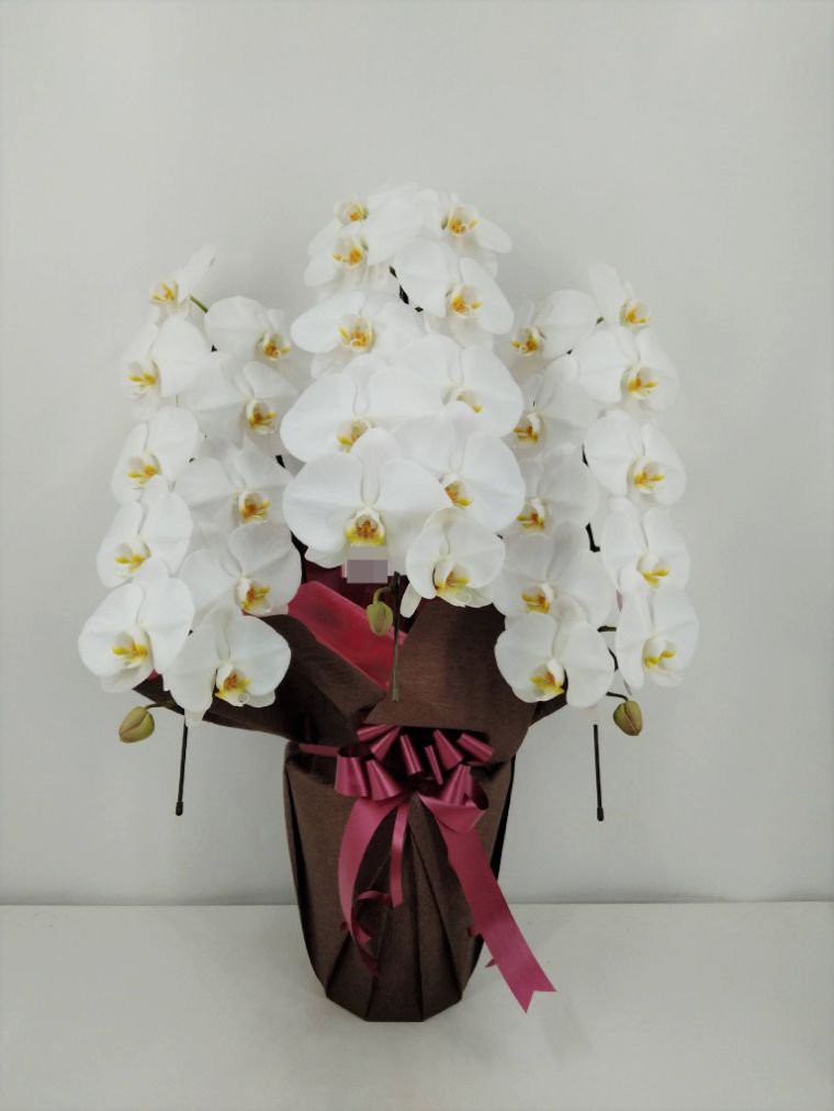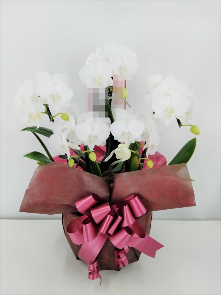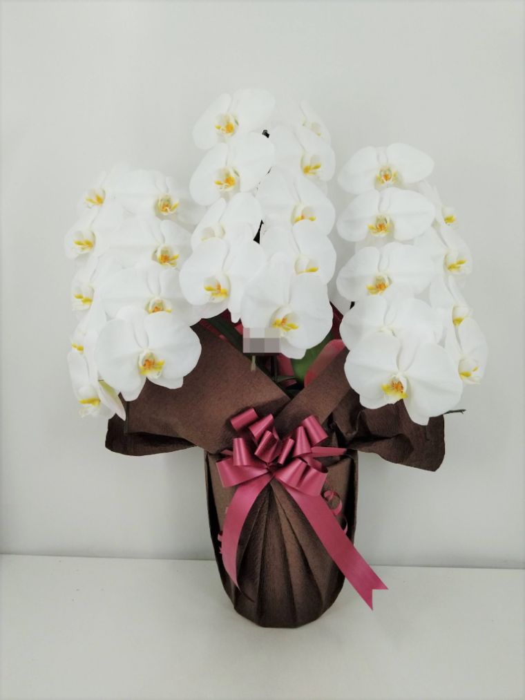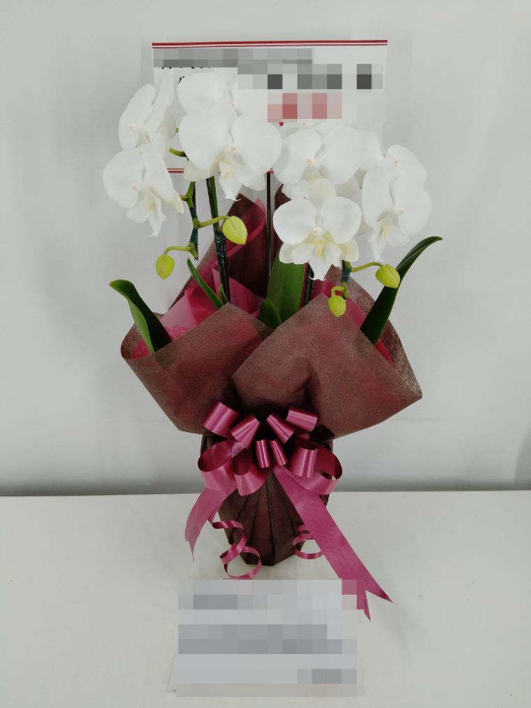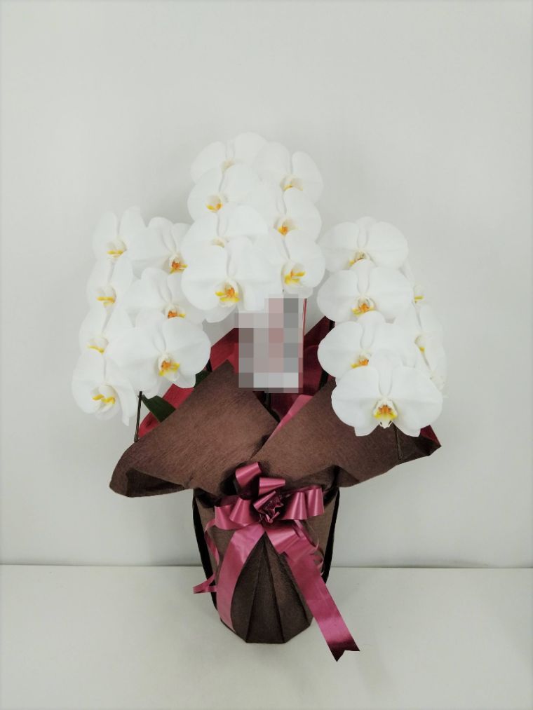 胡蝶蘭の実際にお届けした写真です。花秘書では発送前に写真をメールで送信致しますので安心して大切な顧客や取引様へのギフトにご利用頂けます。