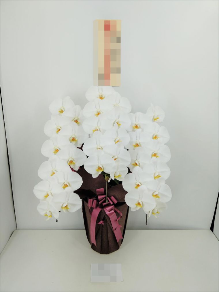 胡蝶蘭の実際にお届けした写真です。花秘書では発送前に写真をメールで送信致しますので安心して大切な顧客や取引様へのギフトにご利用頂けます。