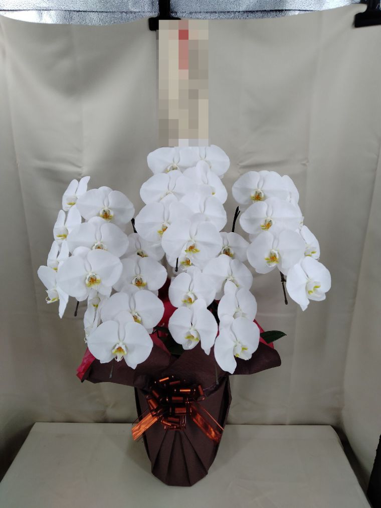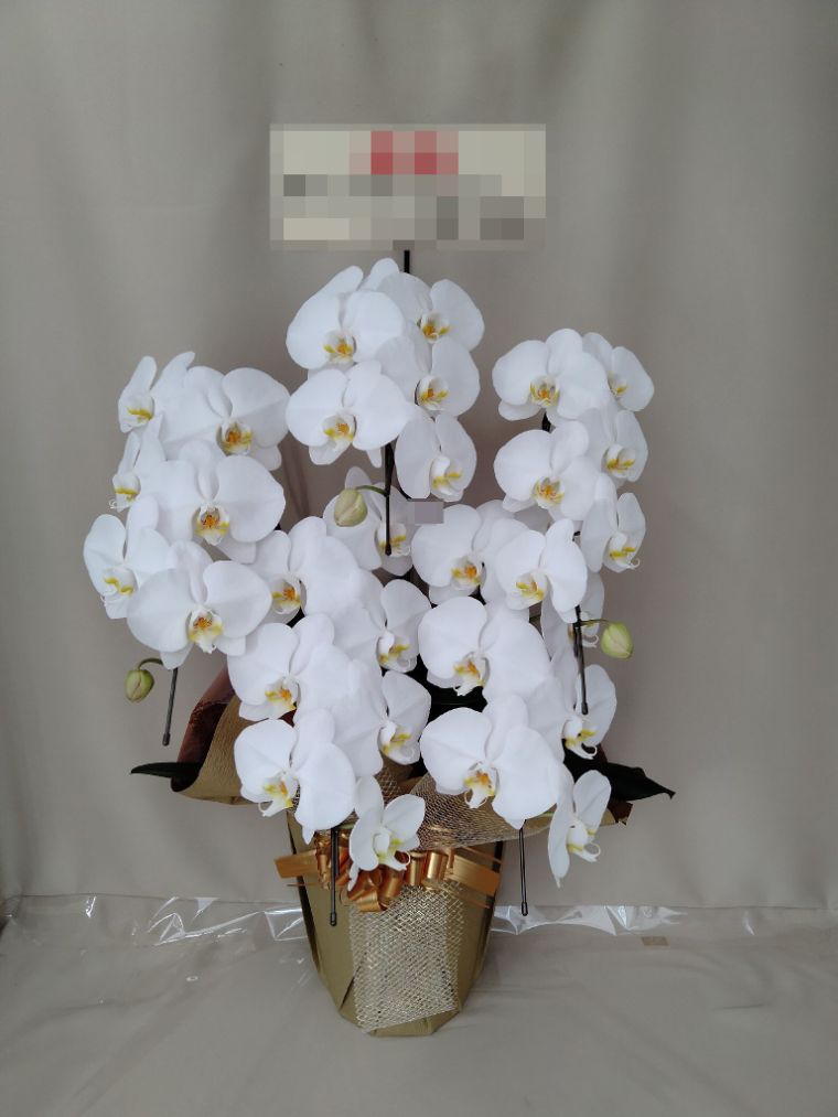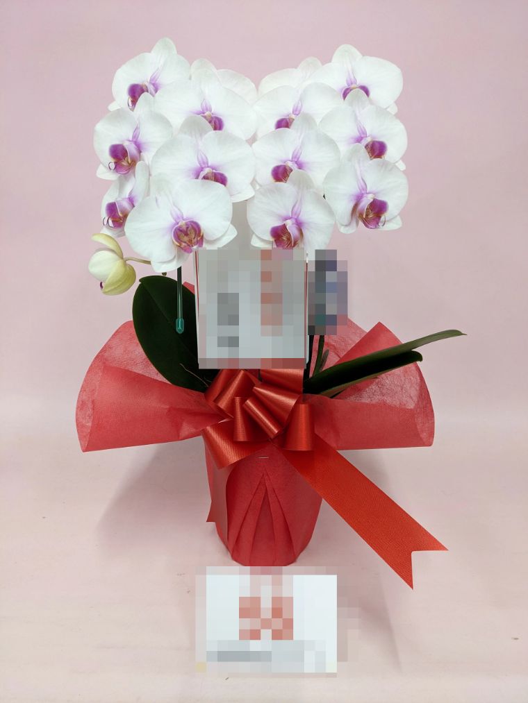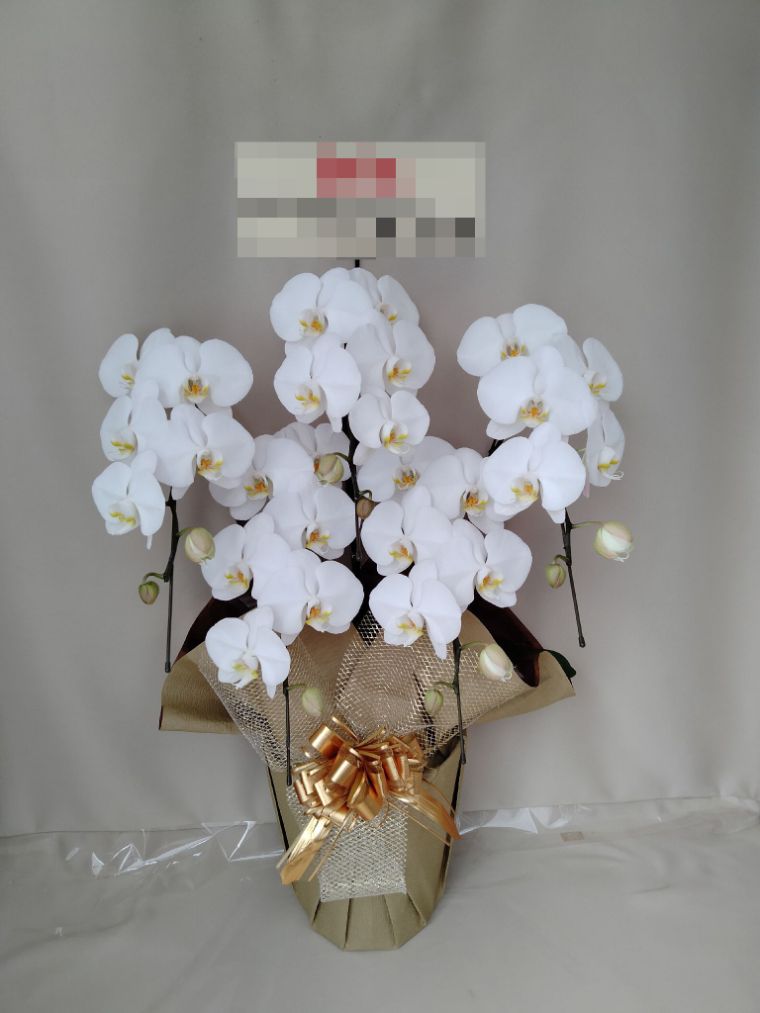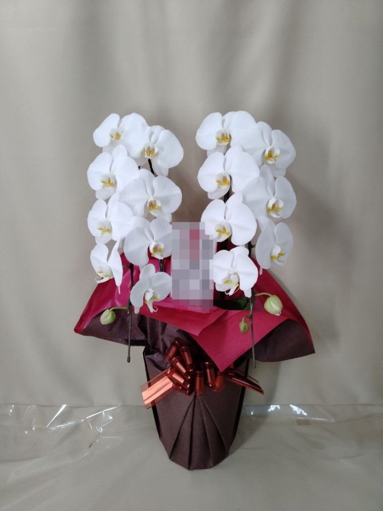 胡蝶蘭の実際にお届けした写真です。花秘書では発送前に写真をメールで送信致しますので安心して大切な顧客や取引様へのギフトにご利用頂けます。
