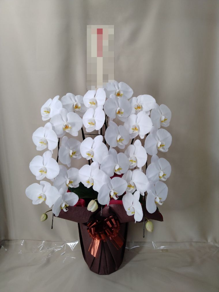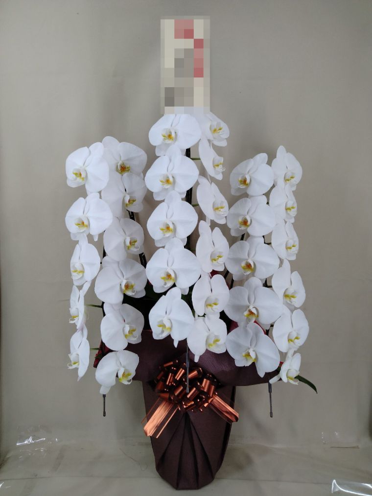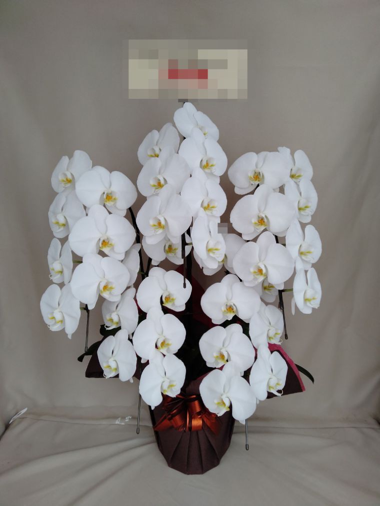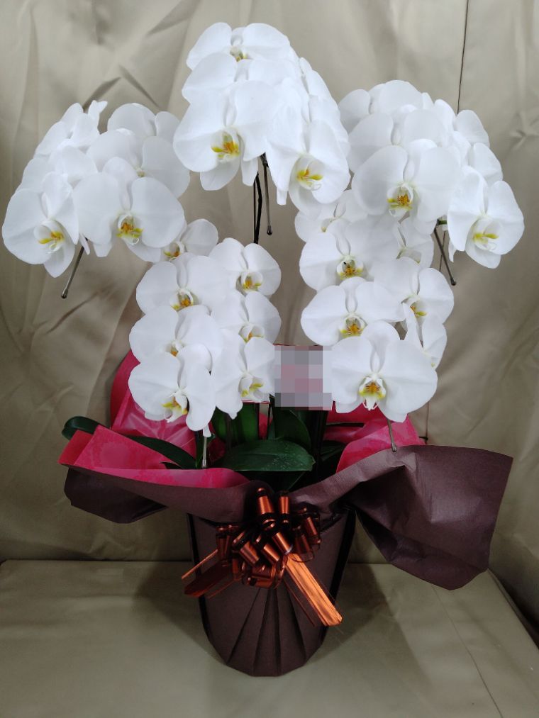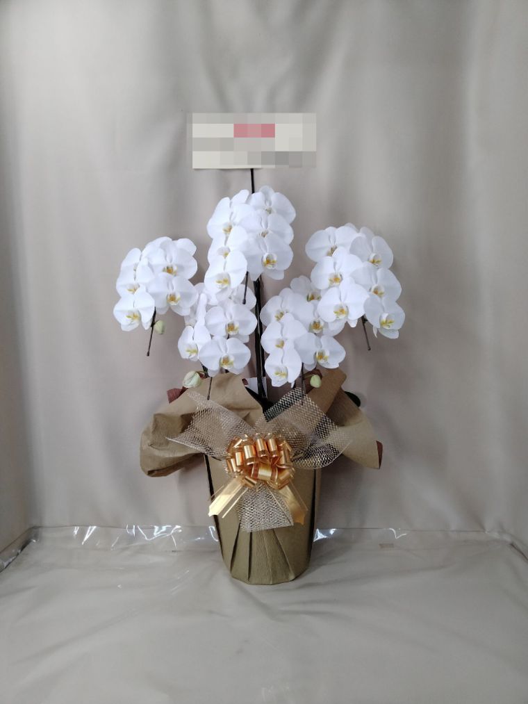 胡蝶蘭の実際にお届けした写真です。花秘書では発送前に写真をメールで送信致しますので安心して大切な顧客や取引様へのギフトにご利用頂けます。
