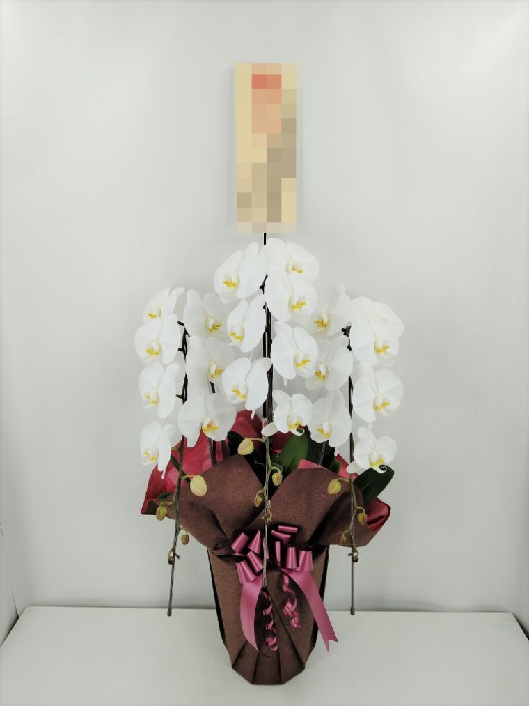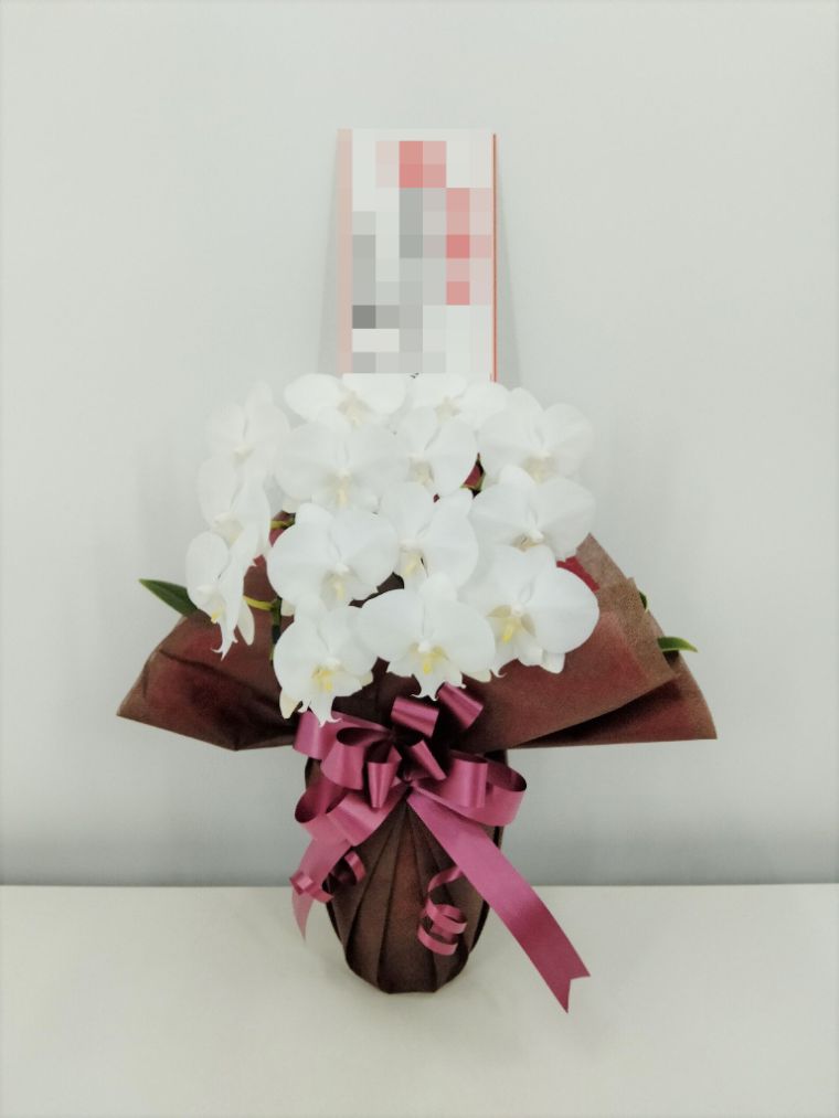 胡蝶蘭の実際にお届けした写真です。花秘書では発送前に写真をメールで送信致しますので安心して大切な顧客や取引様へのギフトにご利用頂けます。