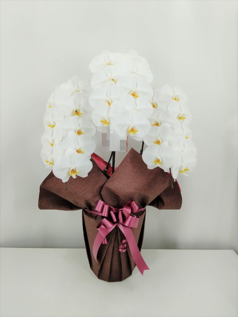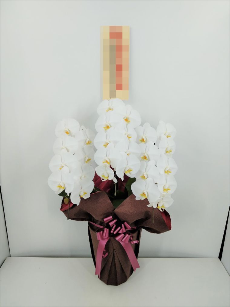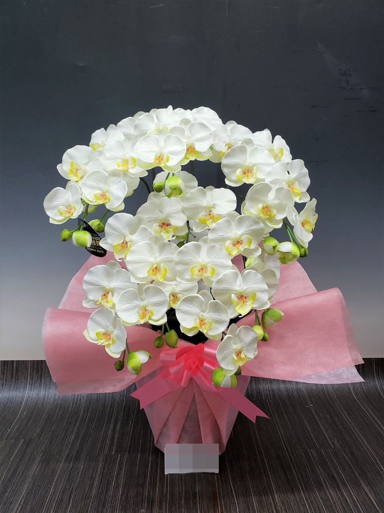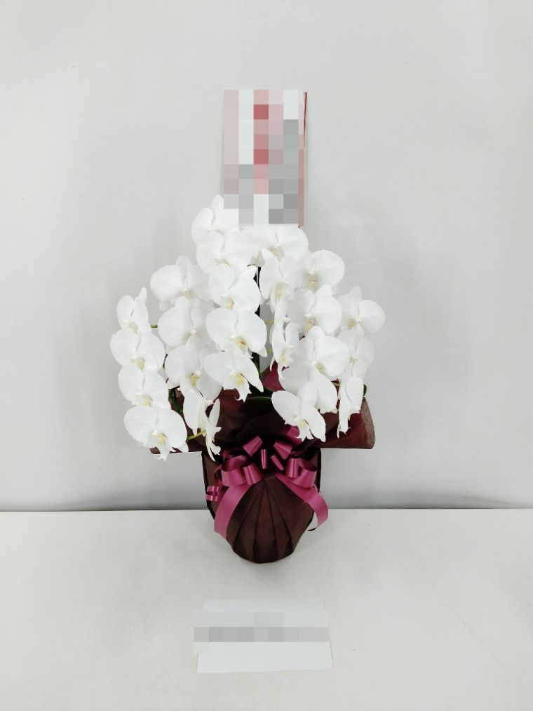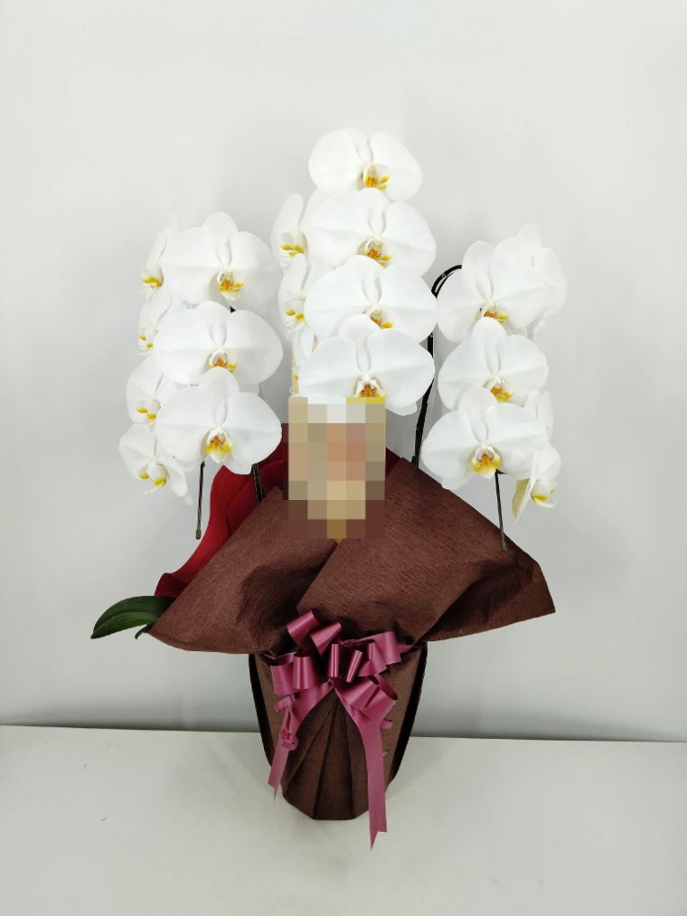 胡蝶蘭の実際にお届けした写真です。花秘書では発送前に写真をメールで送信致しますので安心して大切な顧客や取引様へのギフトにご利用頂けます。