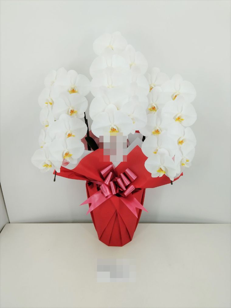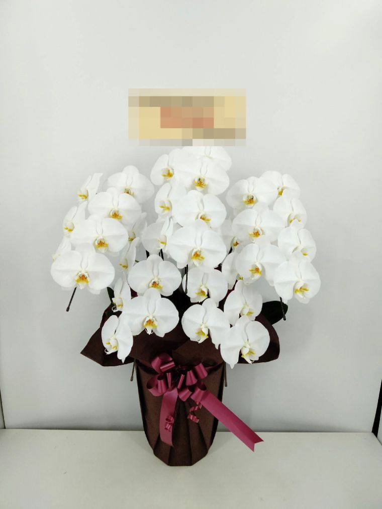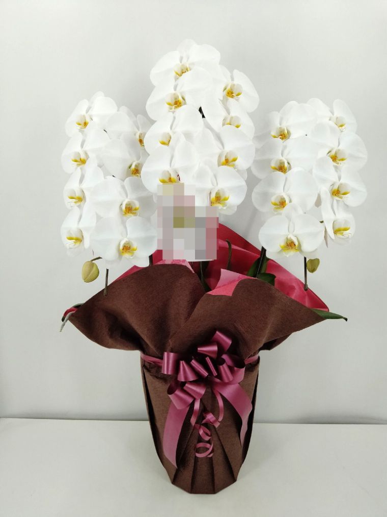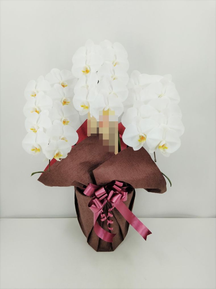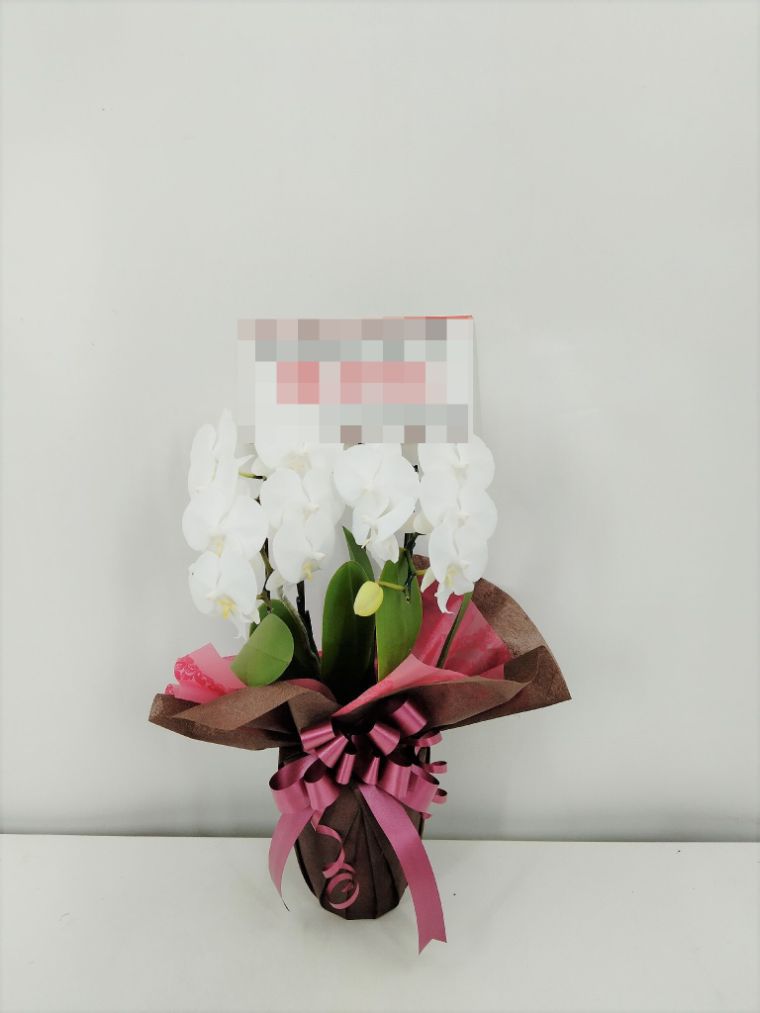 胡蝶蘭の実際にお届けした写真です。花秘書では発送前に写真をメールで送信致しますので安心して大切な顧客や取引様へのギフトにご利用頂けます。