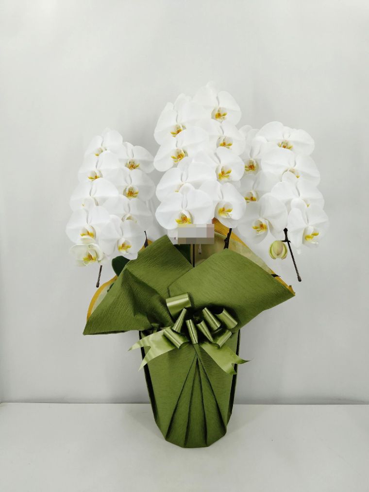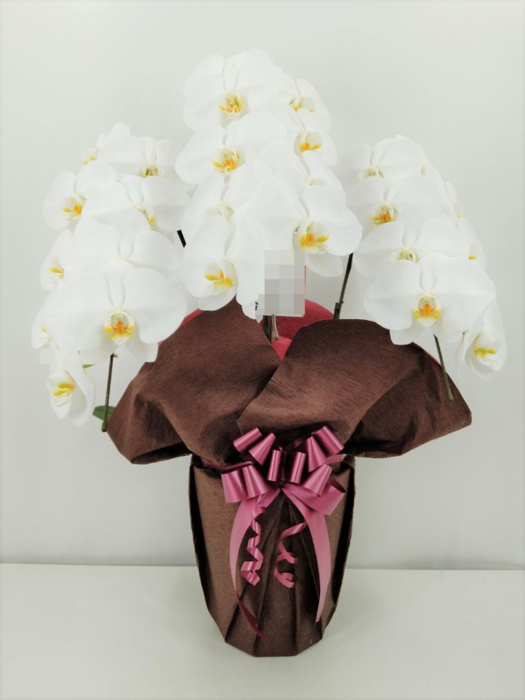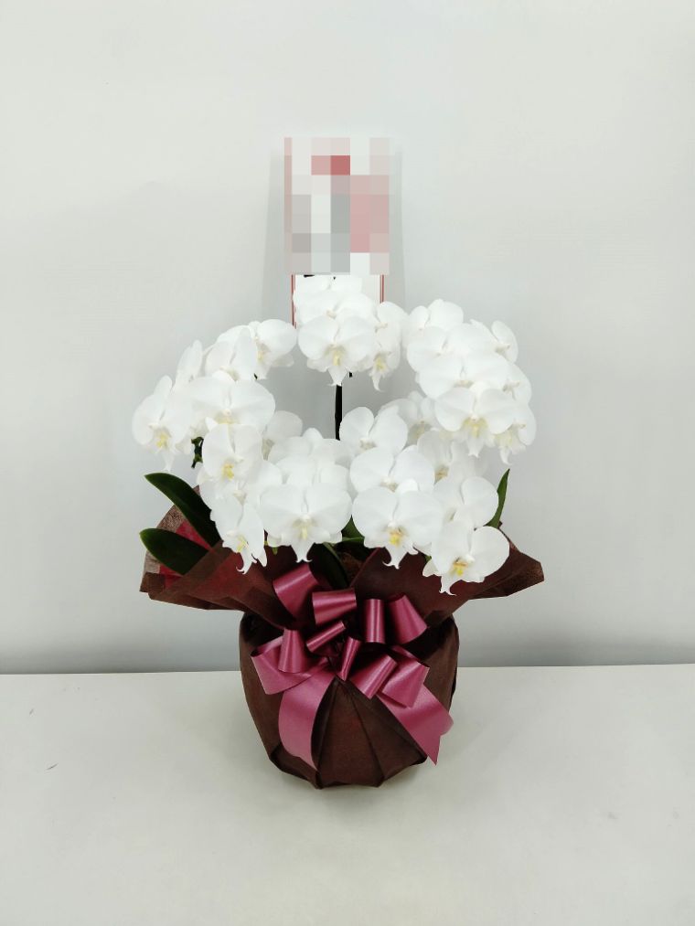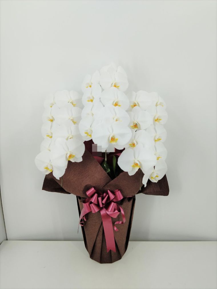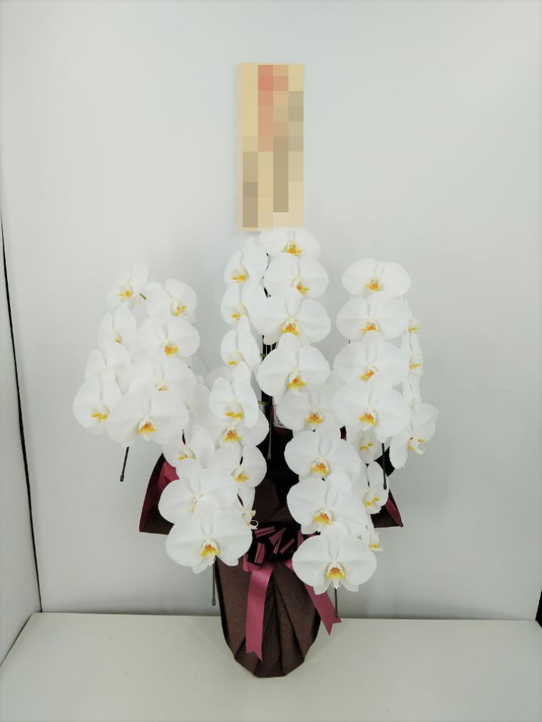 胡蝶蘭の実際にお届けした写真です。花秘書では発送前に写真をメールで送信致しますので安心して大切な顧客や取引様へのギフトにご利用頂けます。