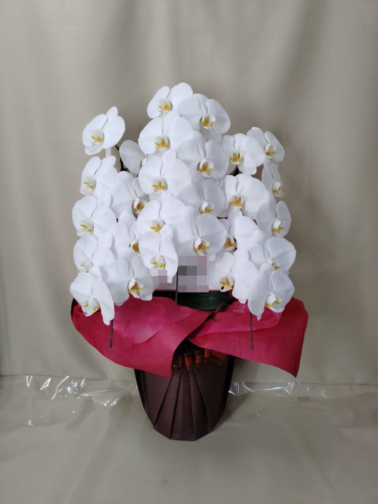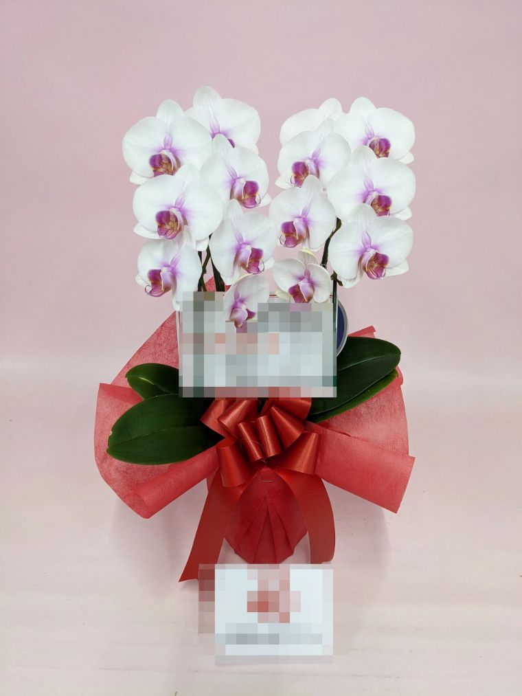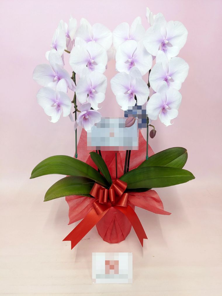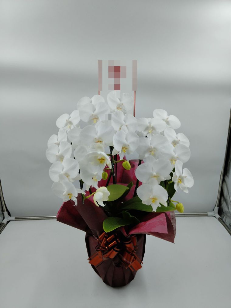 胡蝶蘭の実際にお届けした写真です。花秘書では発送前に写真をメールで送信致しますので安心して大切な顧客や取引様へのギフトにご利用頂けます。