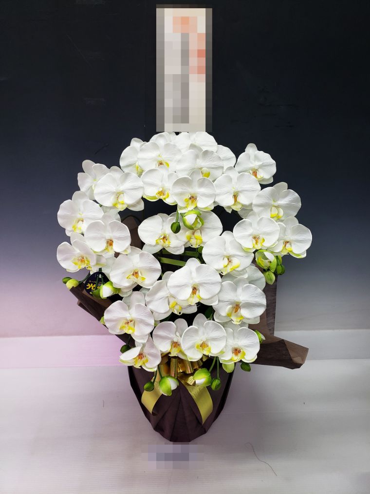 胡蝶蘭の実際にお届けした写真です。花秘書では発送前に写真をメールで送信致しますので安心して大切な顧客や取引様へのギフトにご利用頂けます。