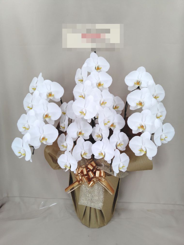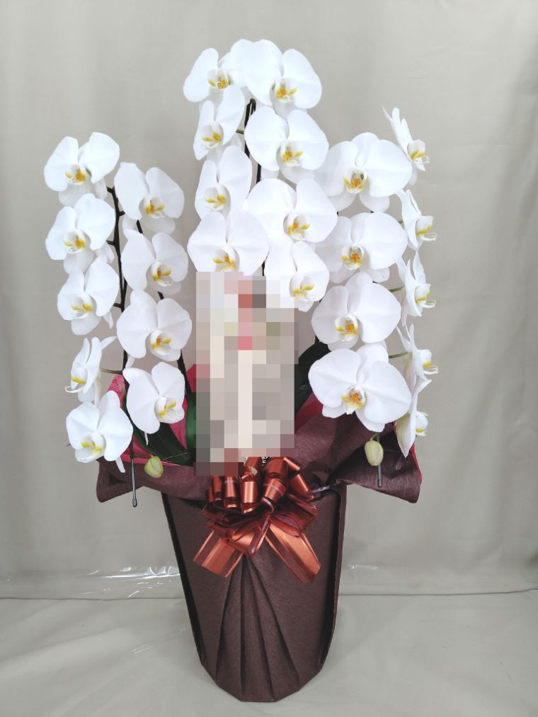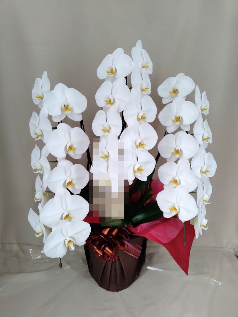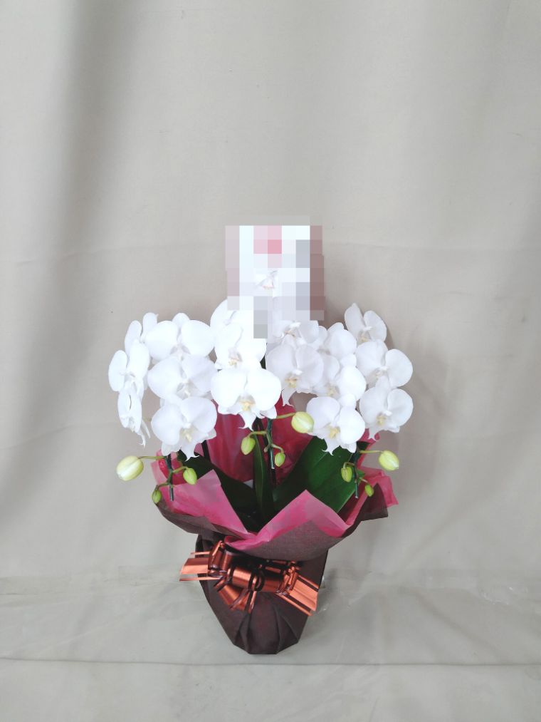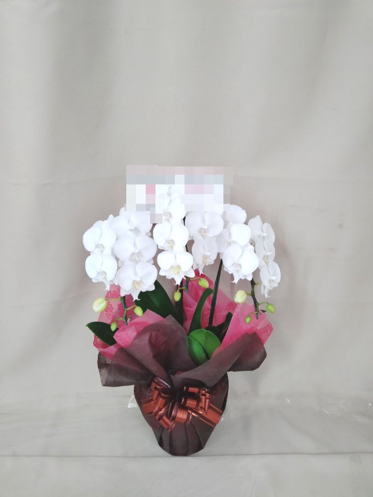 胡蝶蘭の実際にお届けした写真です。花秘書では発送前に写真をメールで送信致しますので安心して大切な顧客や取引様へのギフトにご利用頂けます。