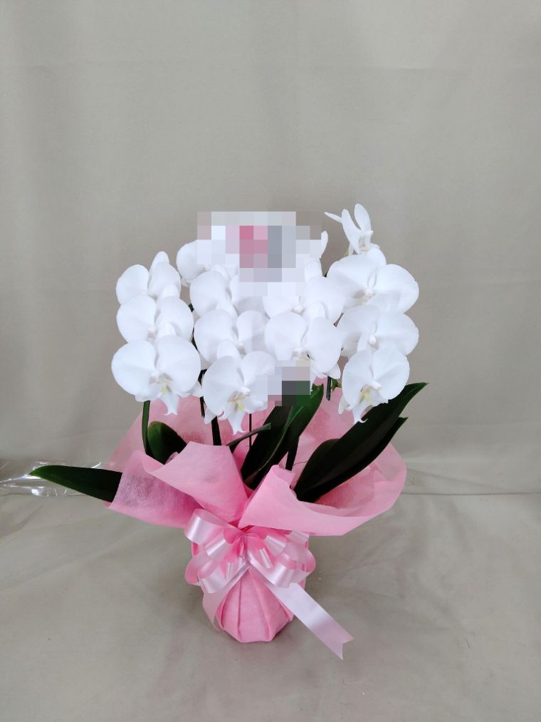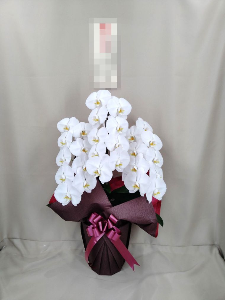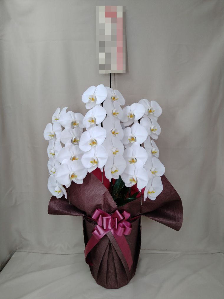胡蝶蘭の実際にお届けした写真です。花秘書では発送前に写真をメールで送信致しますので安心して大切な顧客や取引様へのギフトにご利用頂けます。