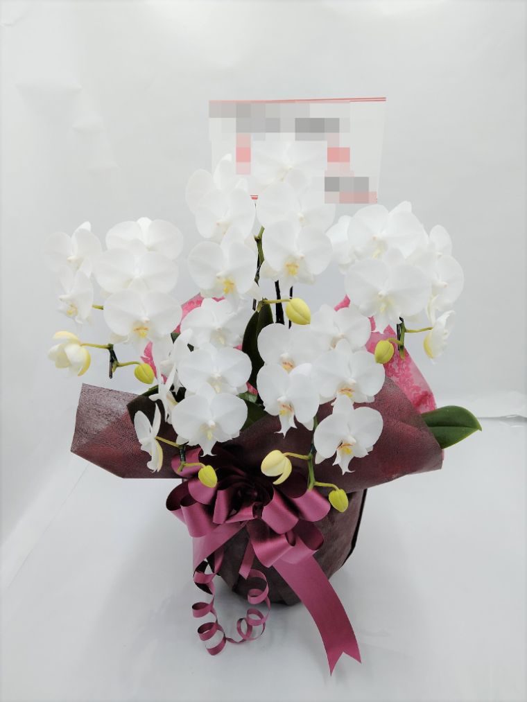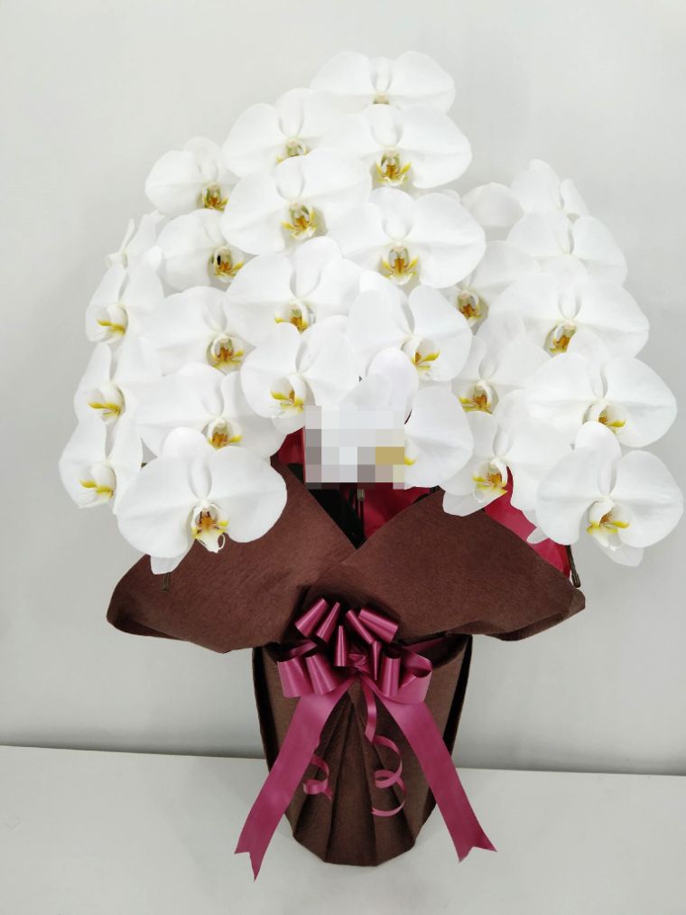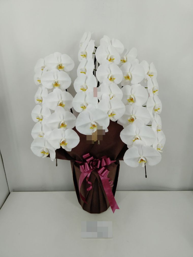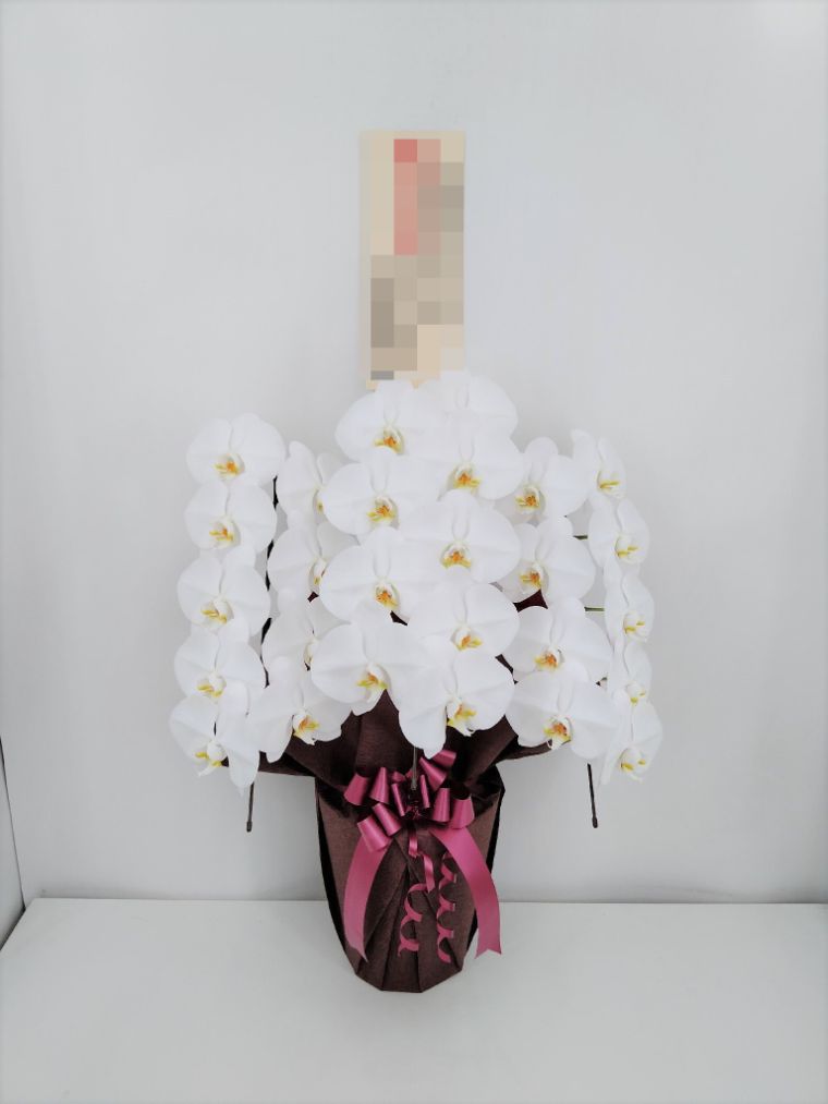 胡蝶蘭の実際にお届けした写真です。花秘書では発送前に写真をメールで送信致しますので安心して大切な顧客や取引様へのギフトにご利用頂けます。
