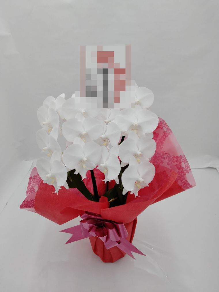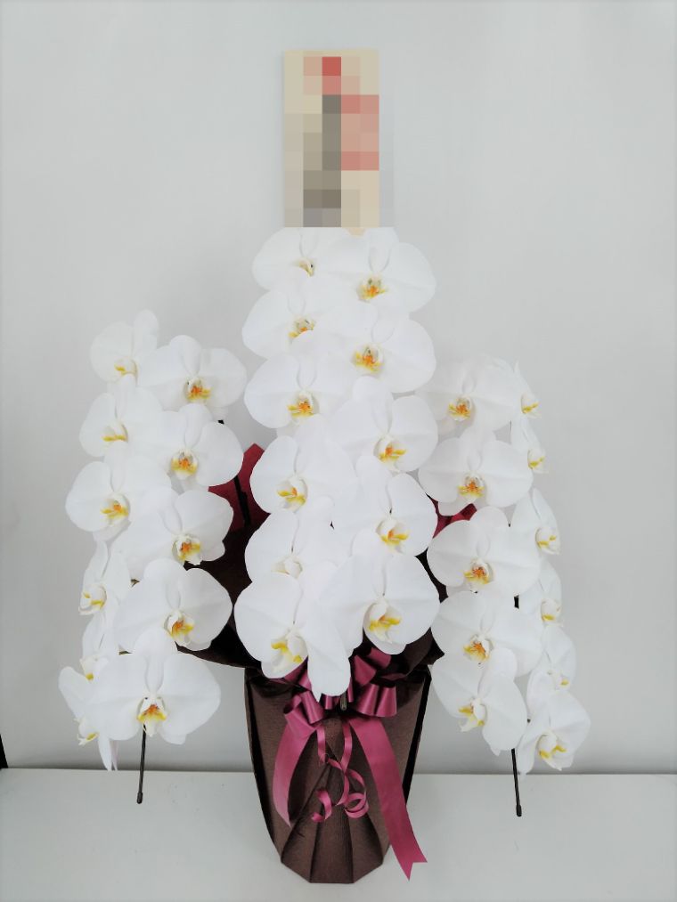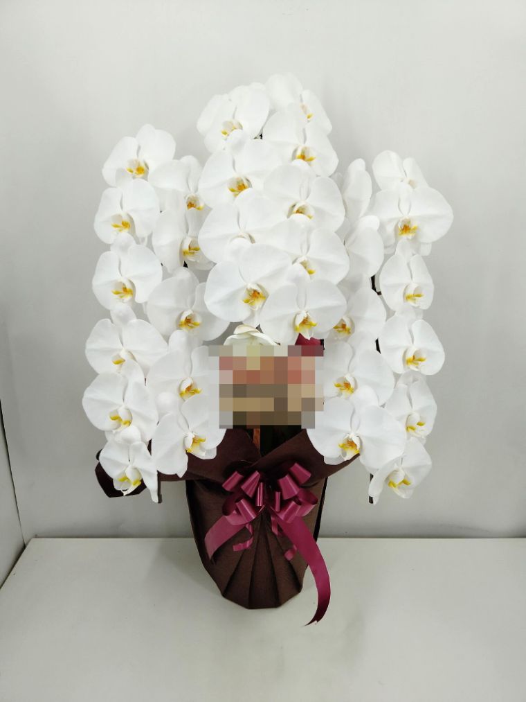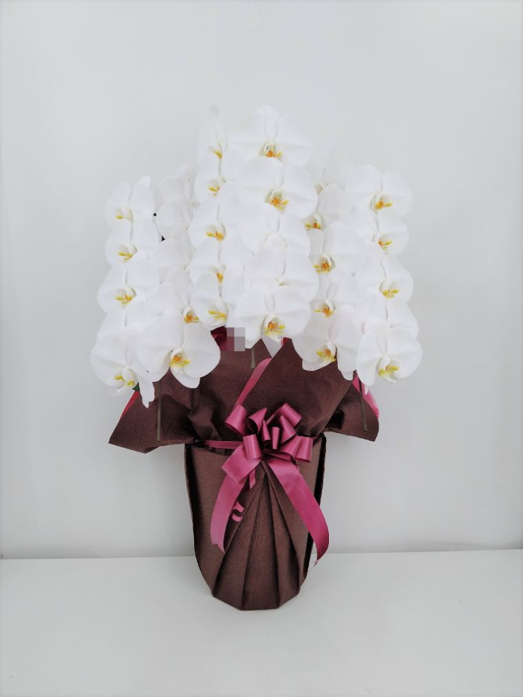 胡蝶蘭の実際にお届けした写真です。花秘書では発送前に写真をメールで送信致しますので安心して大切な顧客や取引様へのギフトにご利用頂けます。
