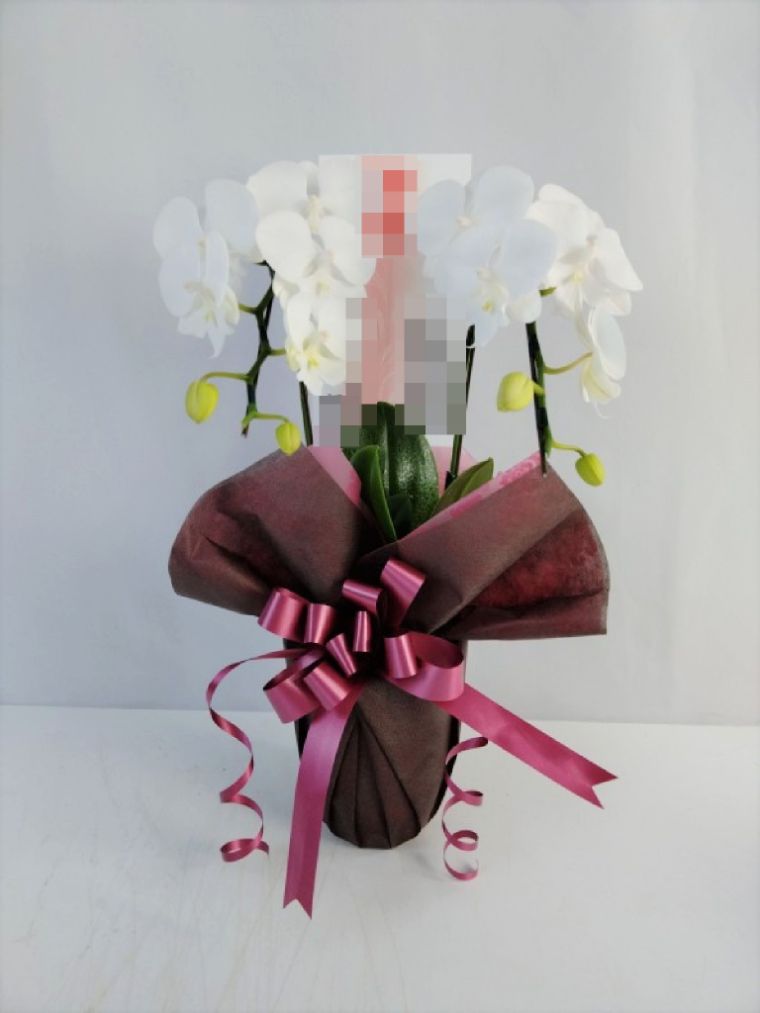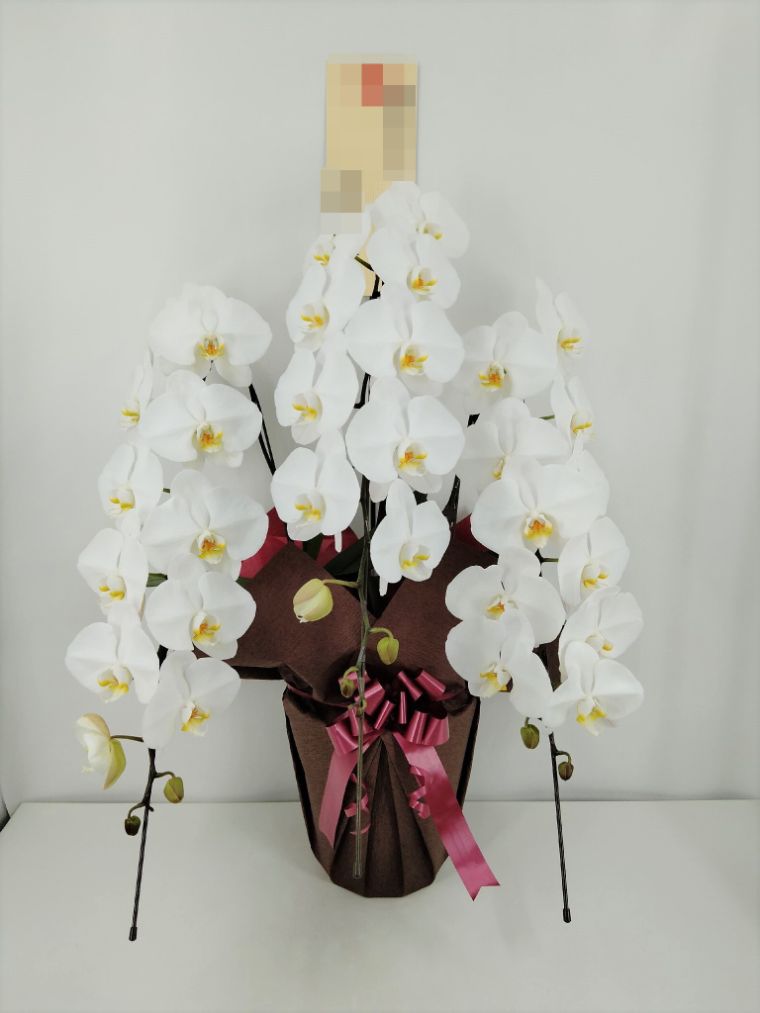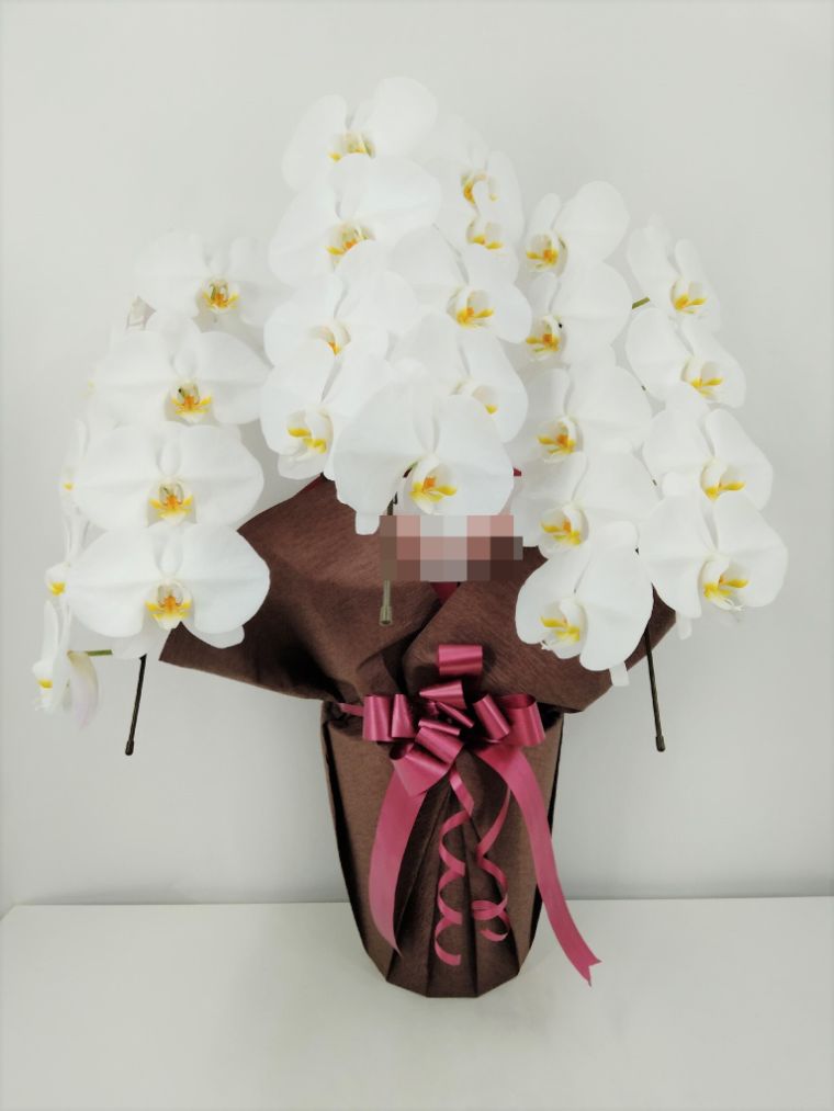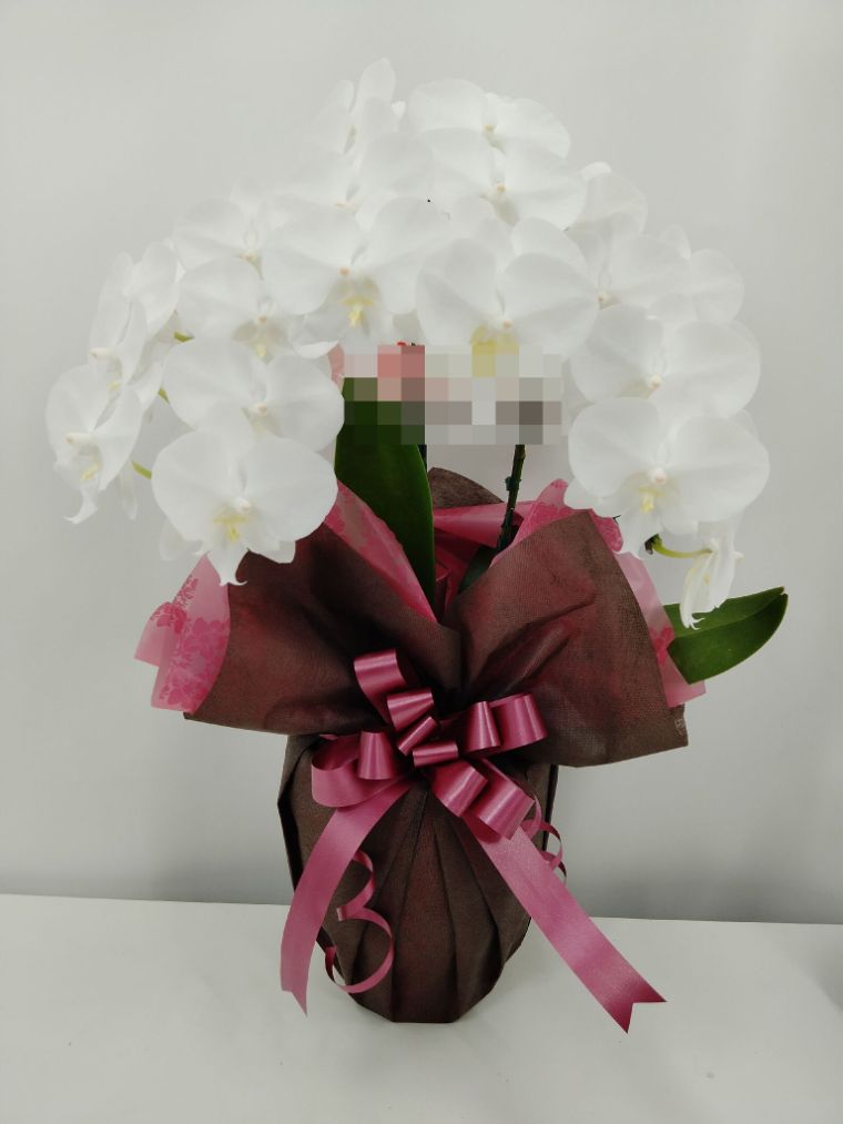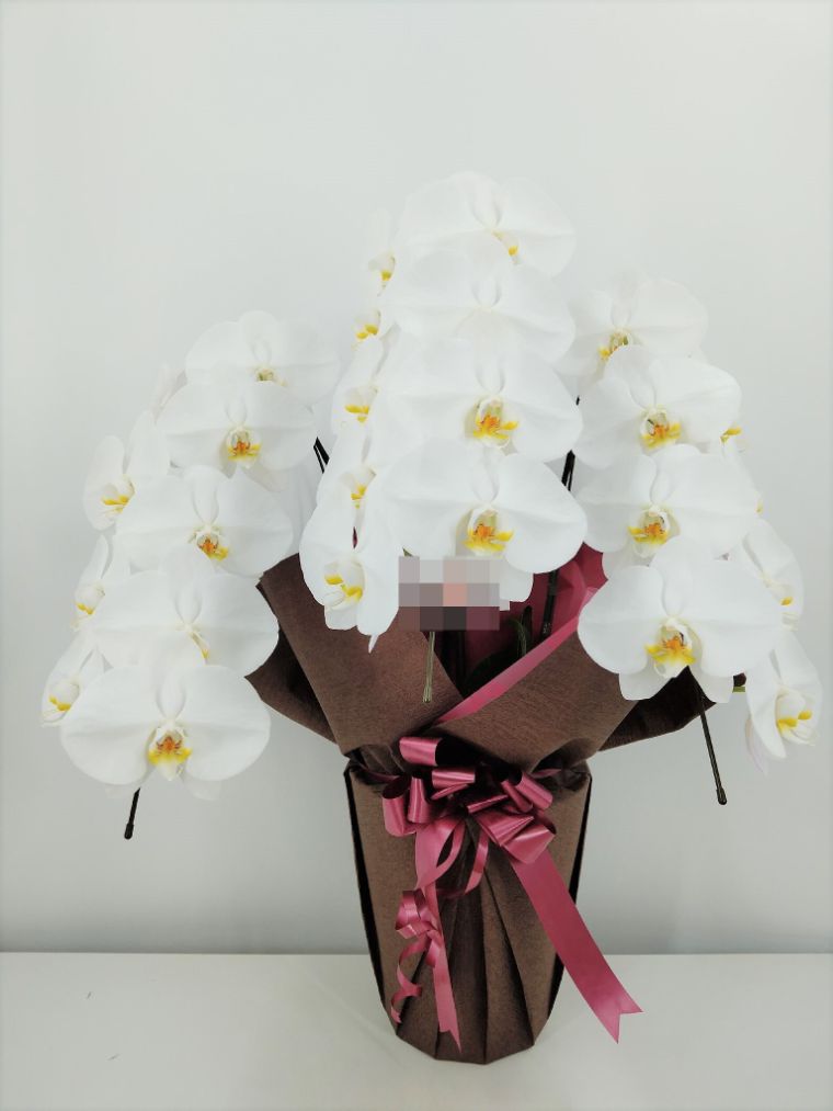 胡蝶蘭の実際にお届けした写真です。花秘書では発送前に写真をメールで送信致しますので安心して大切な顧客や取引様へのギフトにご利用頂けます。