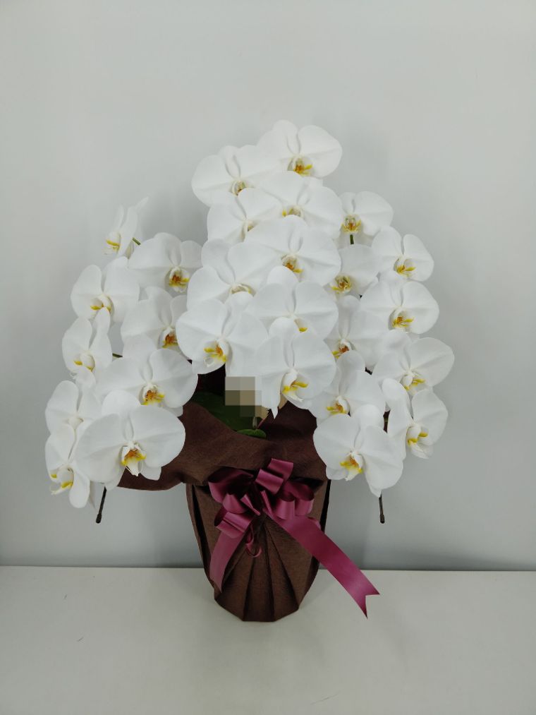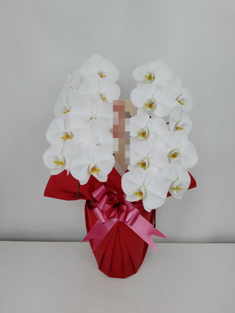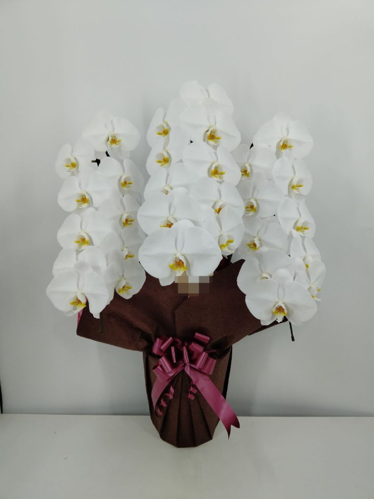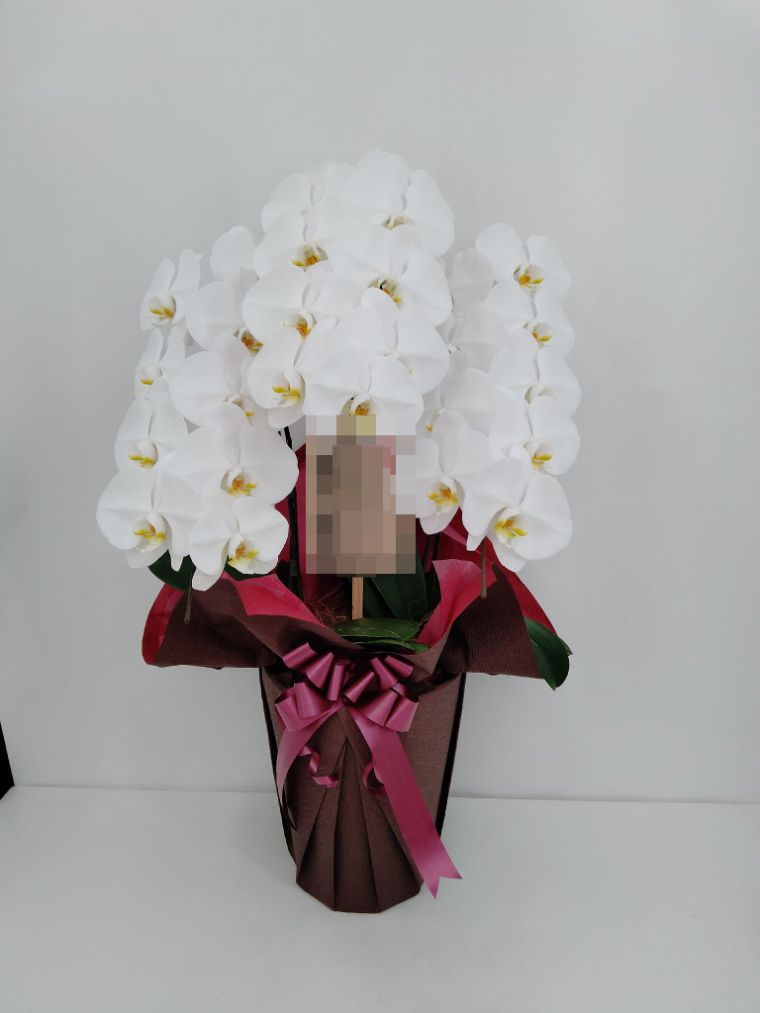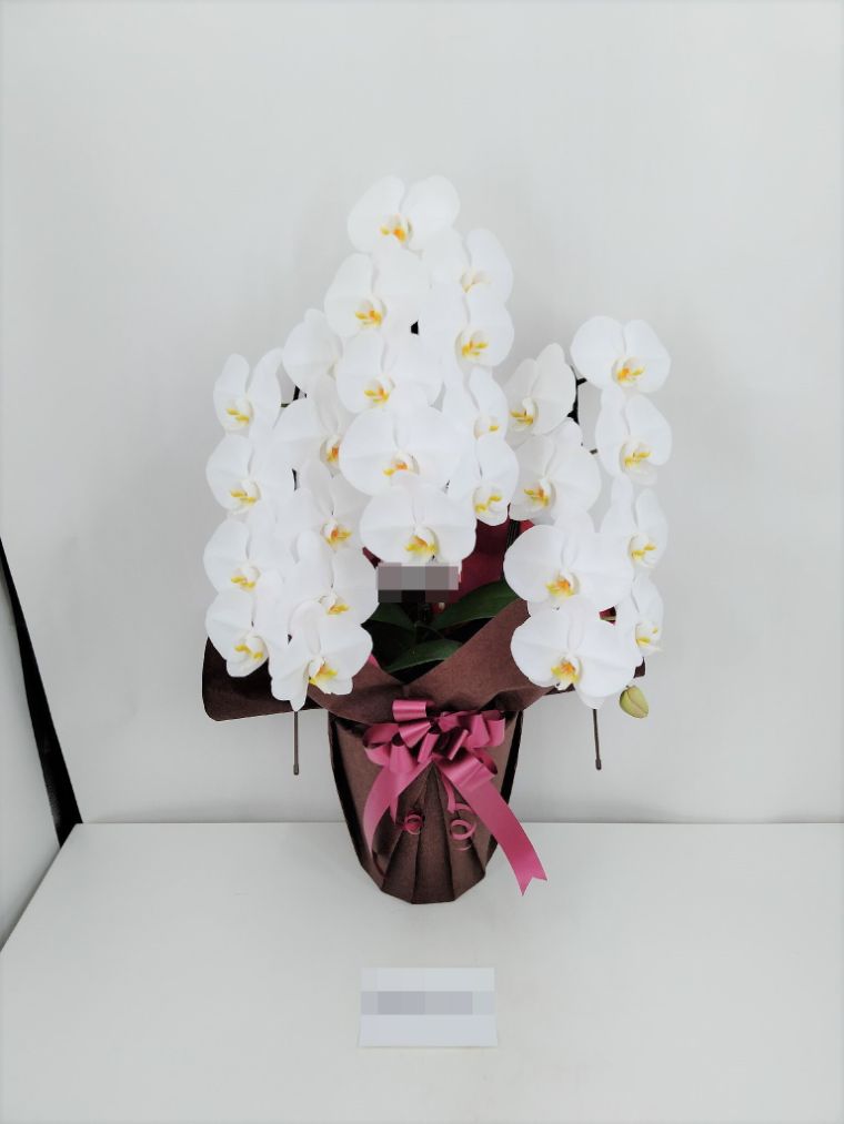 胡蝶蘭の実際にお届けした写真です。花秘書では発送前に写真をメールで送信致しますので安心して大切な顧客や取引様へのギフトにご利用頂けます。