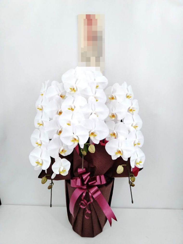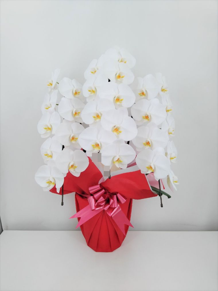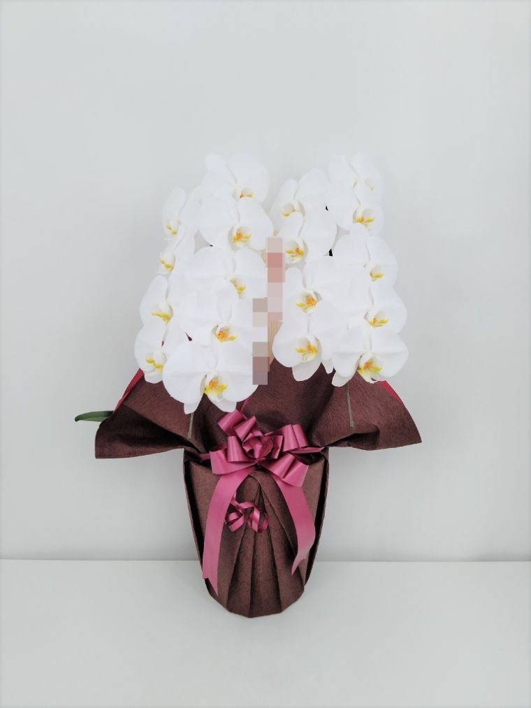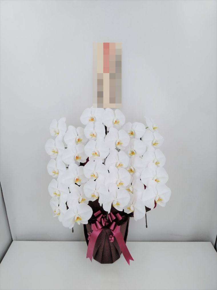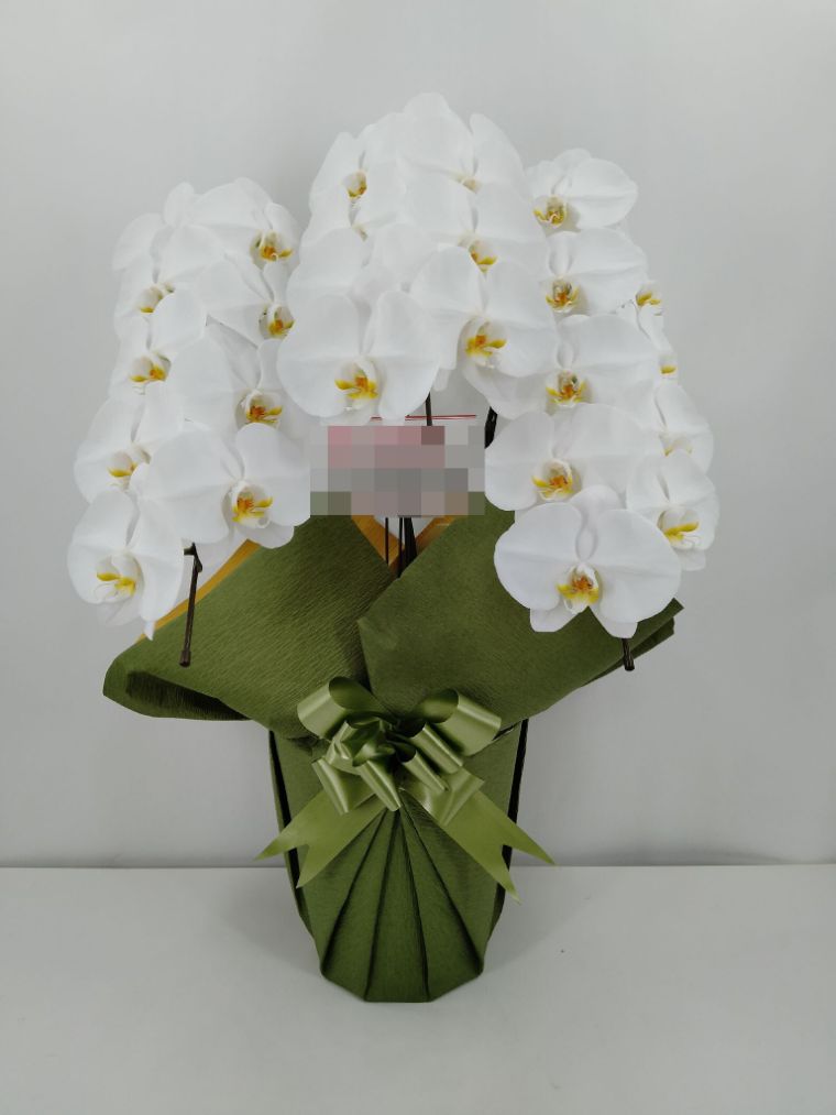胡蝶蘭の実際にお届けした写真です。花秘書では発送前に写真をメールで送信致しますので安心して大切な顧客や取引様へのギフトにご利用頂けます。