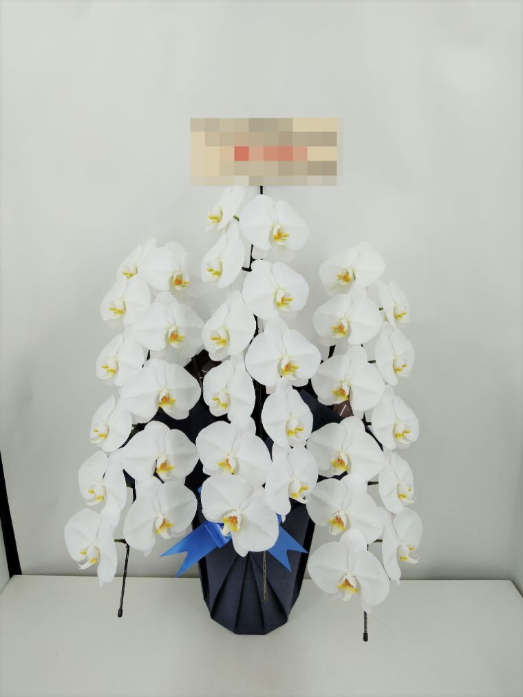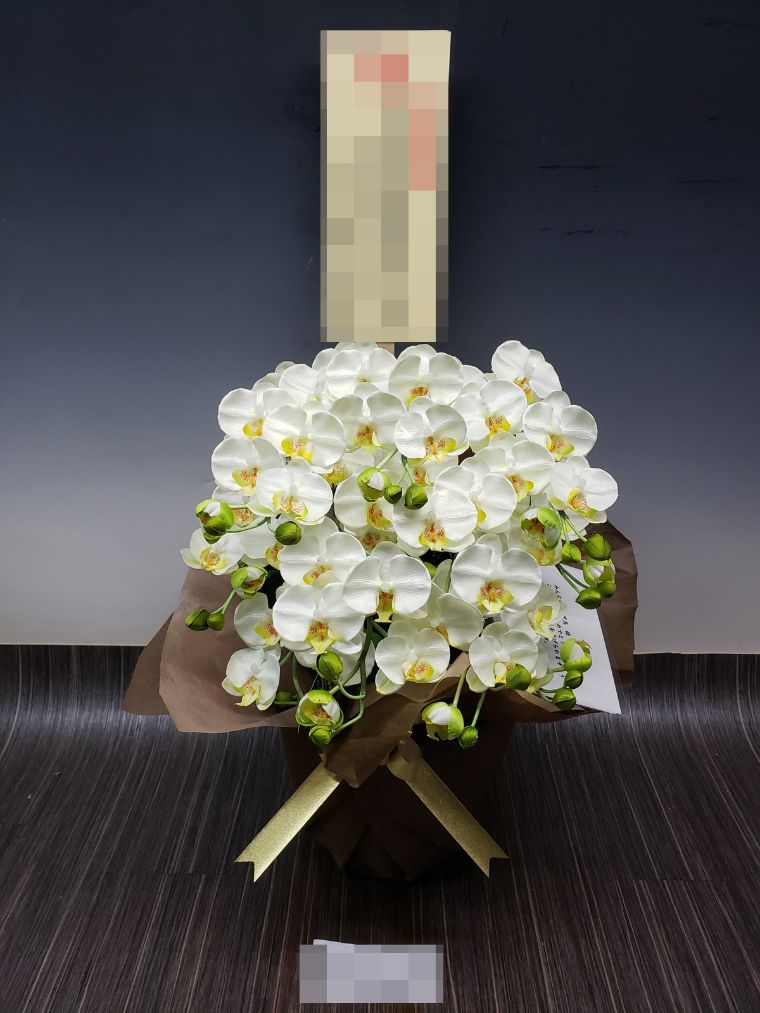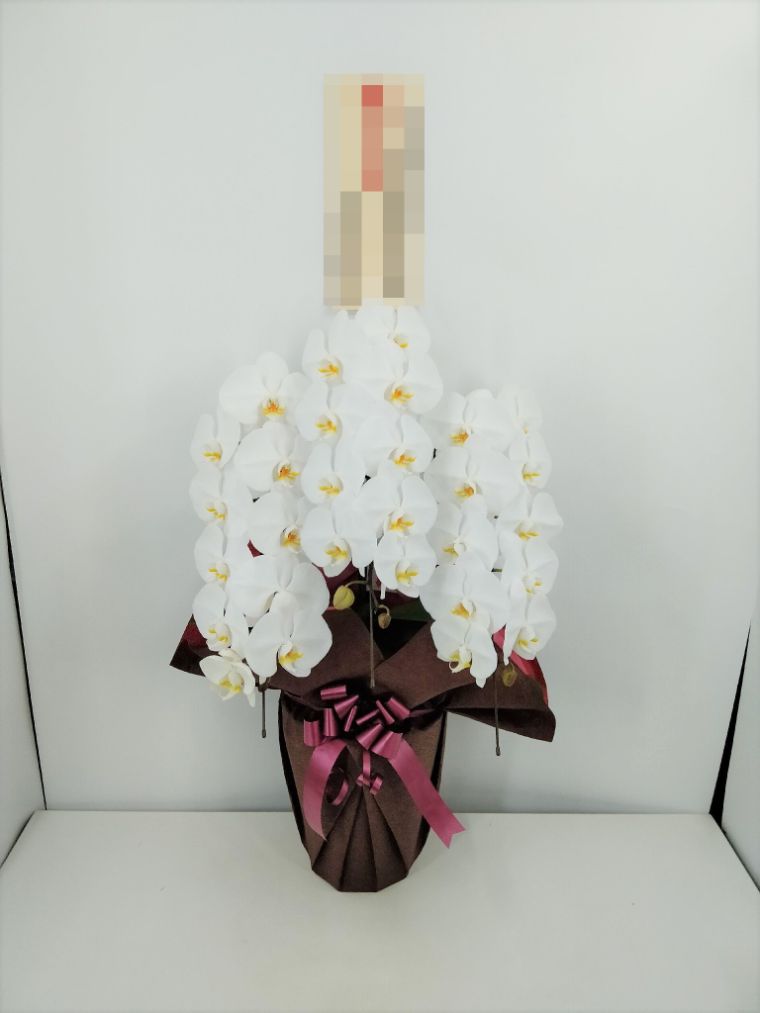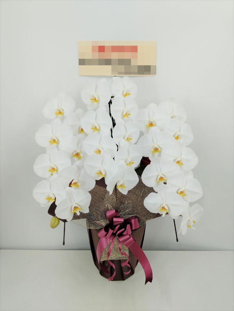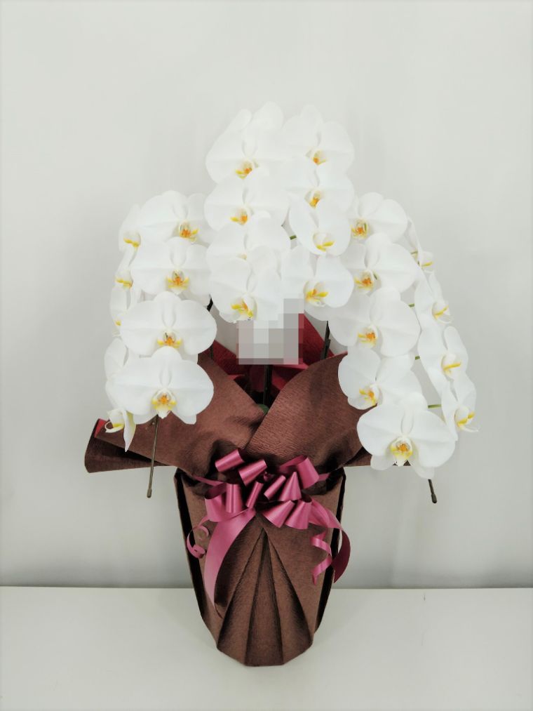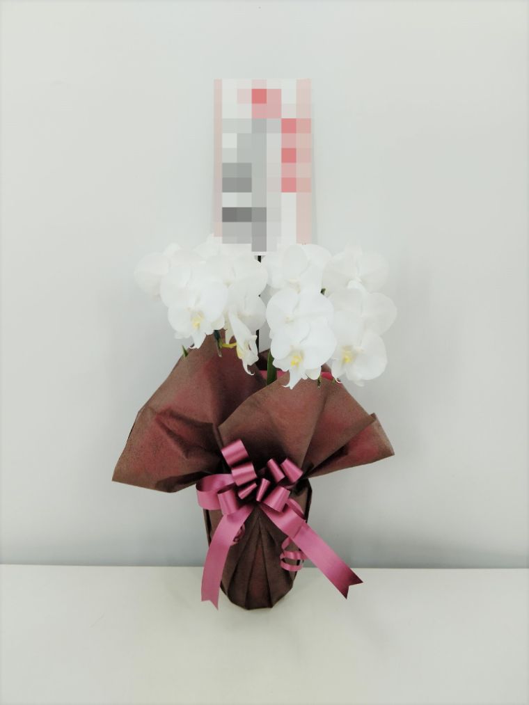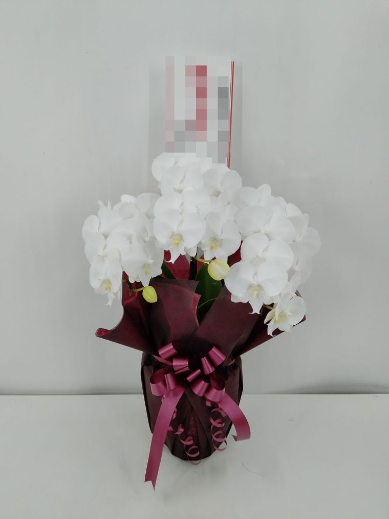胡蝶蘭の実際にお届けした写真です。花秘書では発送前に写真をメールで送信致しますので安心して大切な顧客や取引様へのギフトにご利用頂けます。