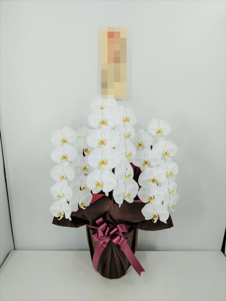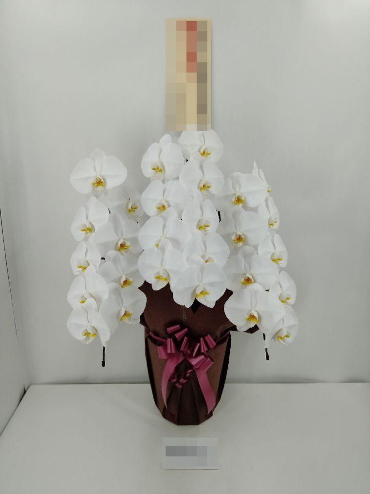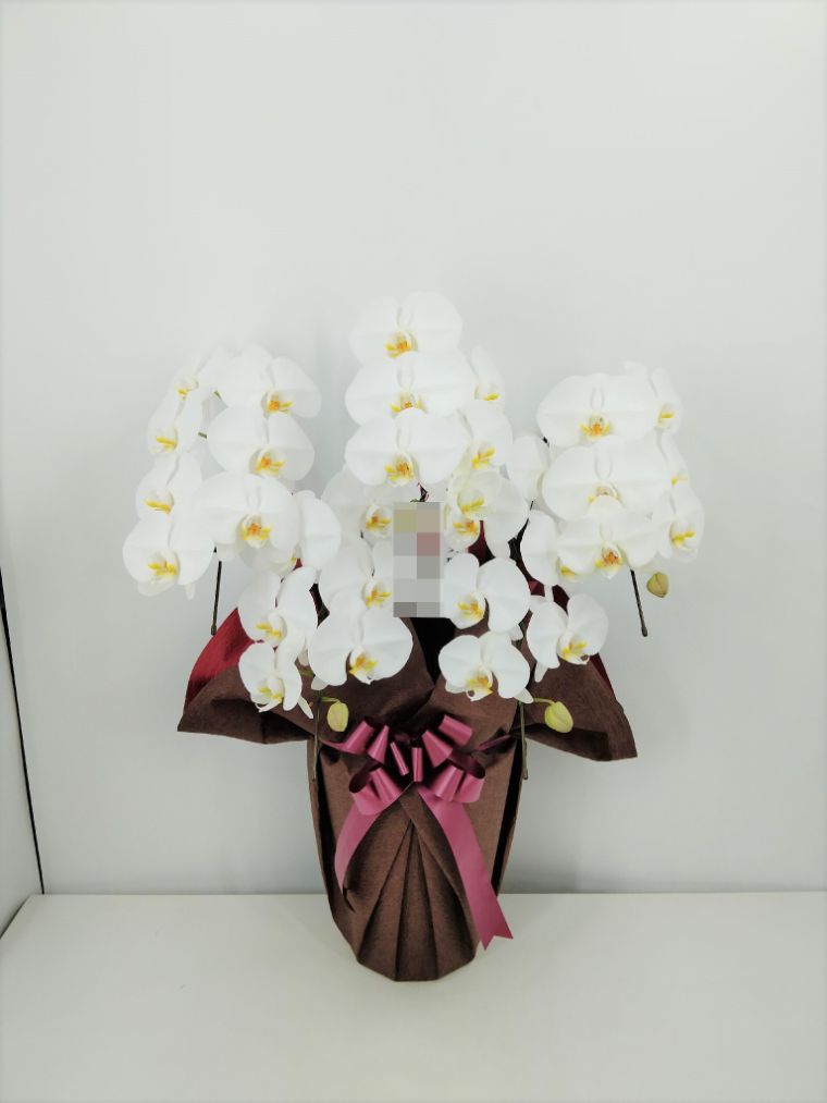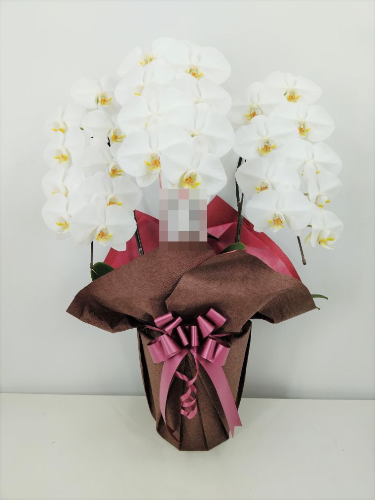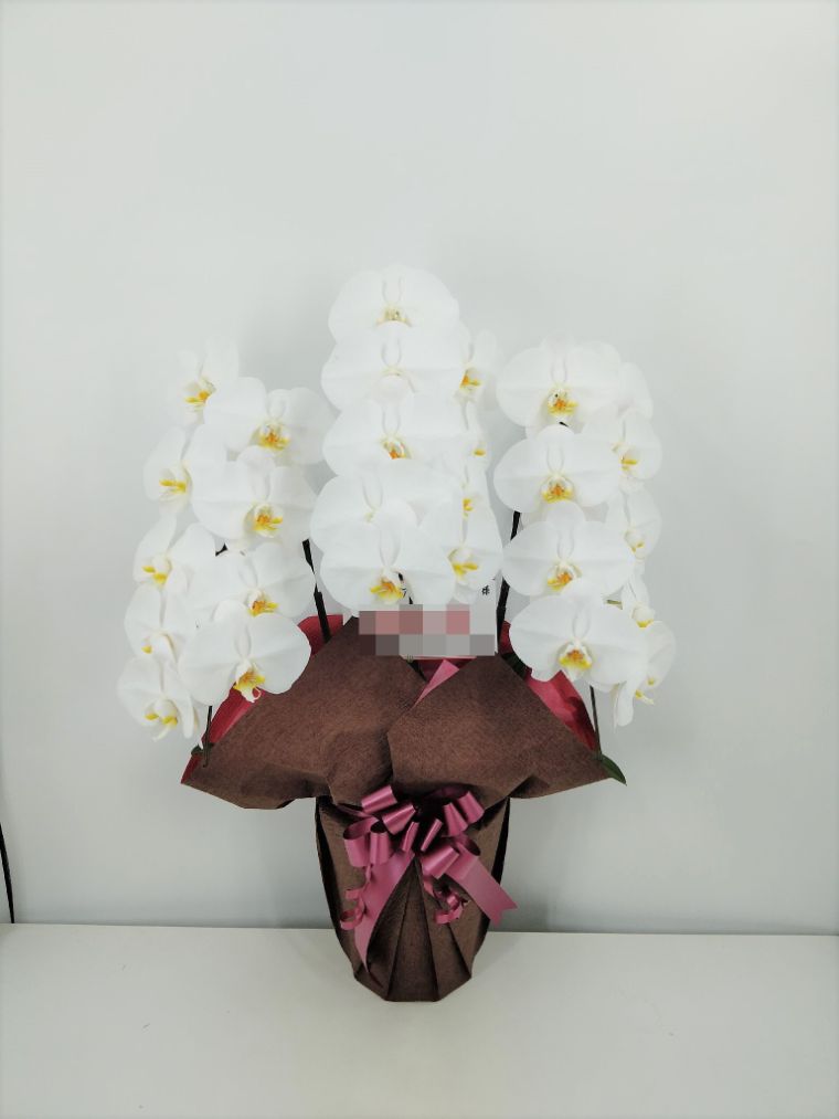胡蝶蘭の実際にお届けした写真です。花秘書では発送前に写真をメールで送信致しますので安心して大切な顧客や取引様へのギフトにご利用頂けます。
