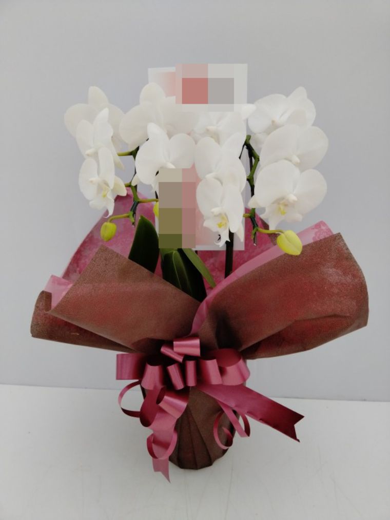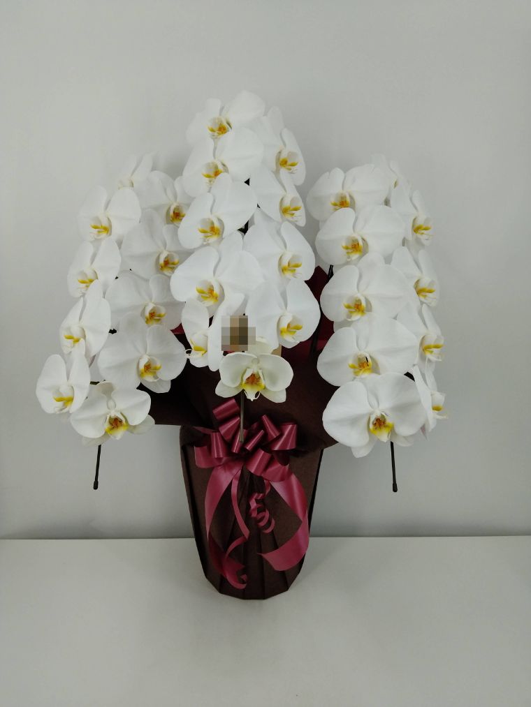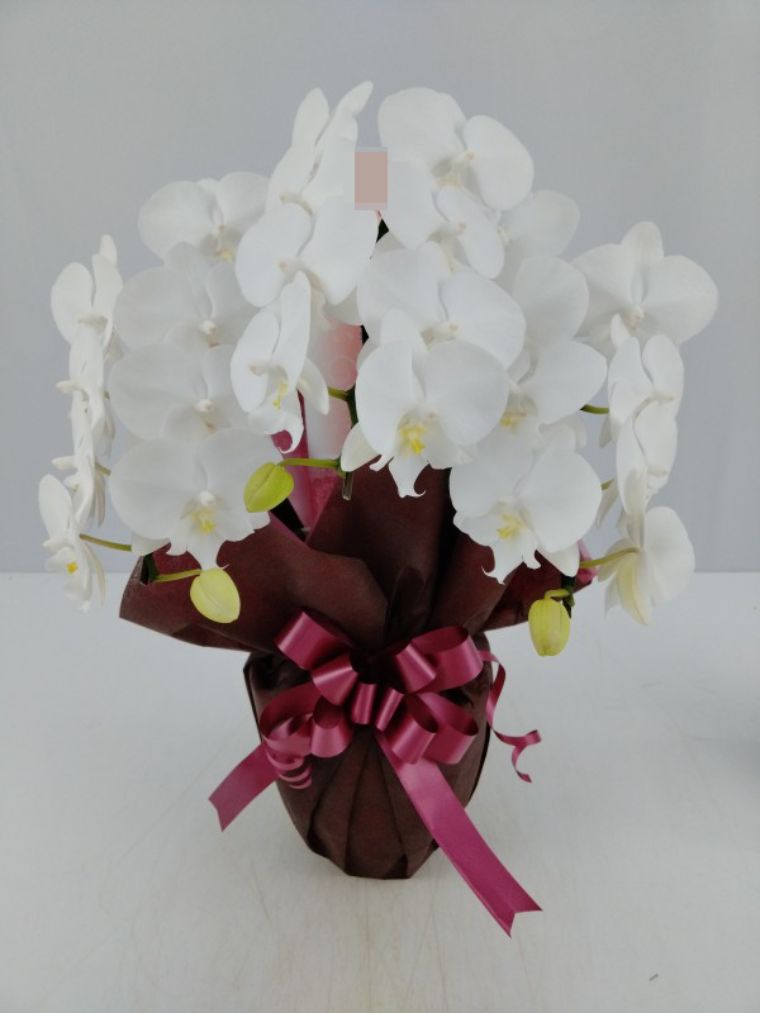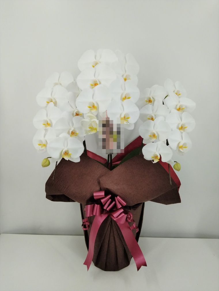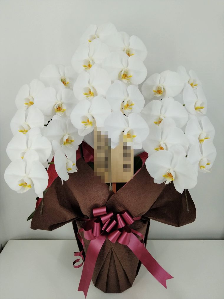 胡蝶蘭の実際にお届けした写真です。花秘書では発送前に写真をメールで送信致しますので安心して大切な顧客や取引様へのギフトにご利用頂けます。