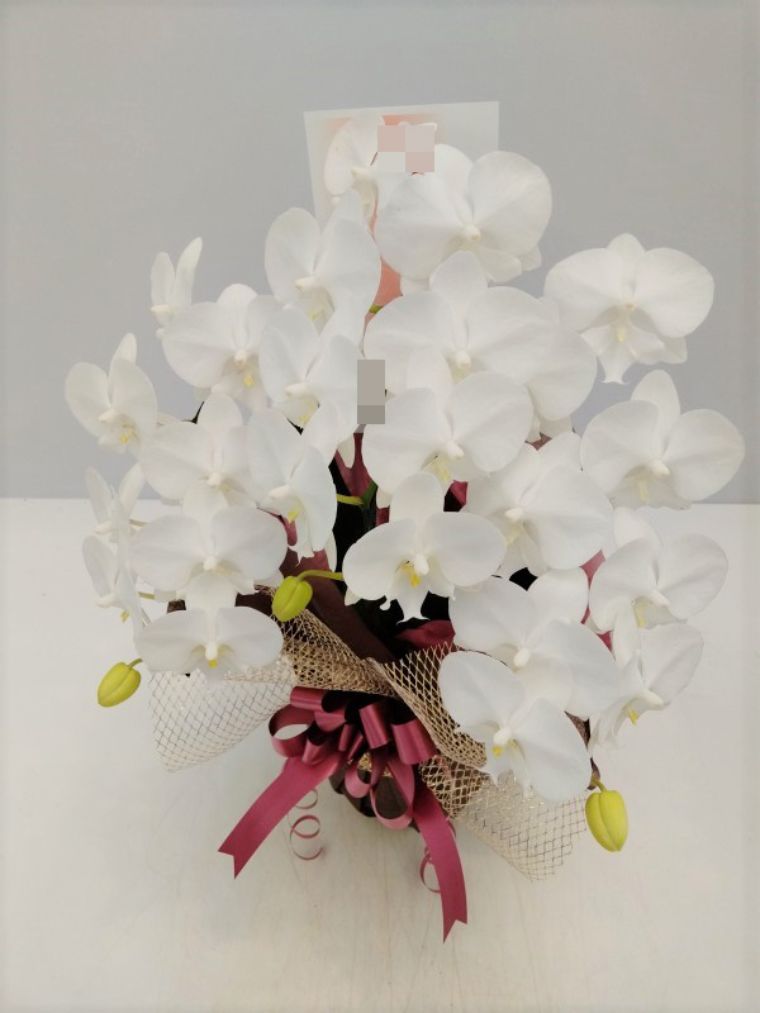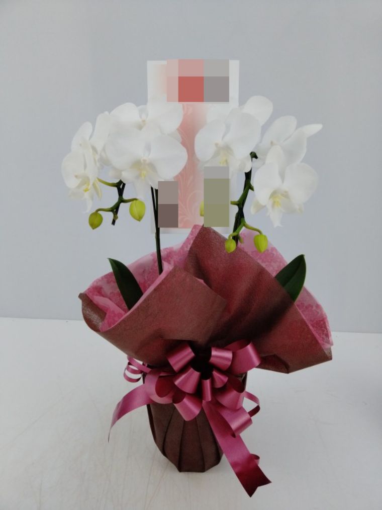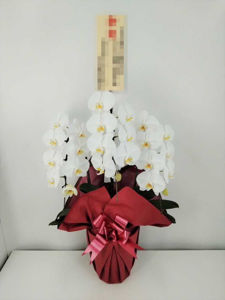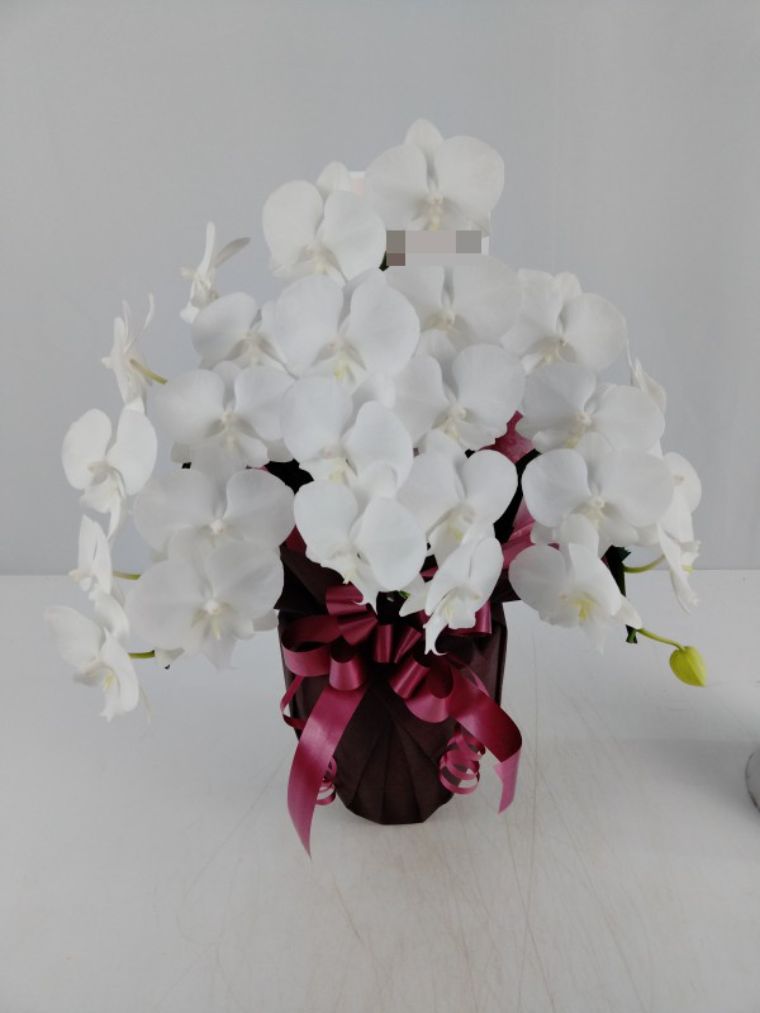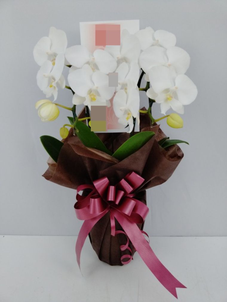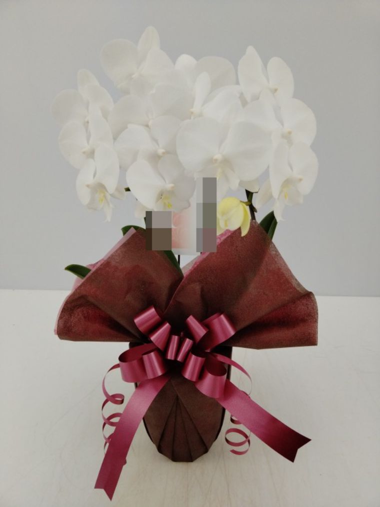 胡蝶蘭の実際にお届けした写真です。花秘書では発送前に写真をメールで送信致しますので安心して大切な顧客や取引様へのギフトにご利用頂けます。