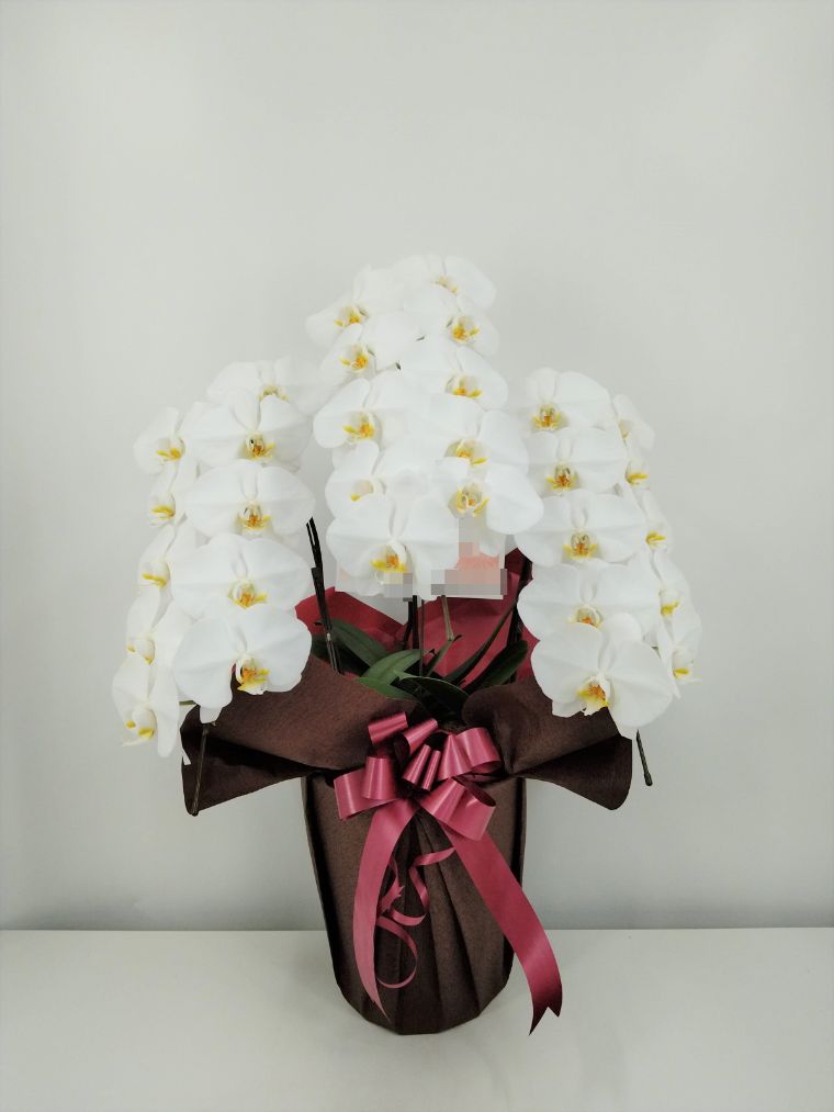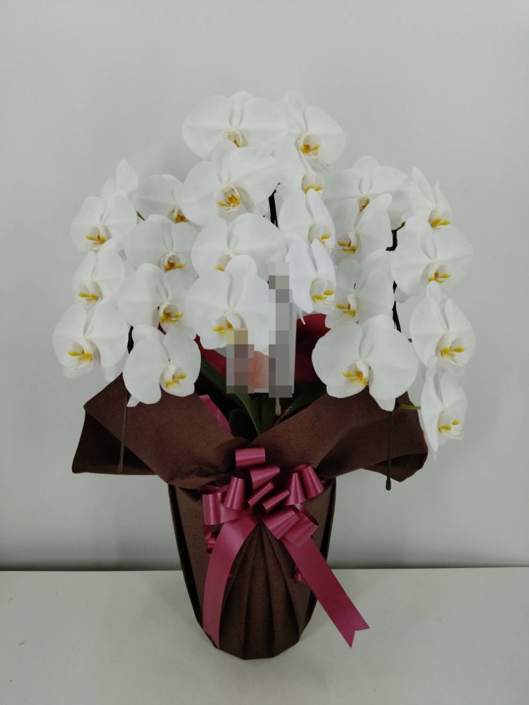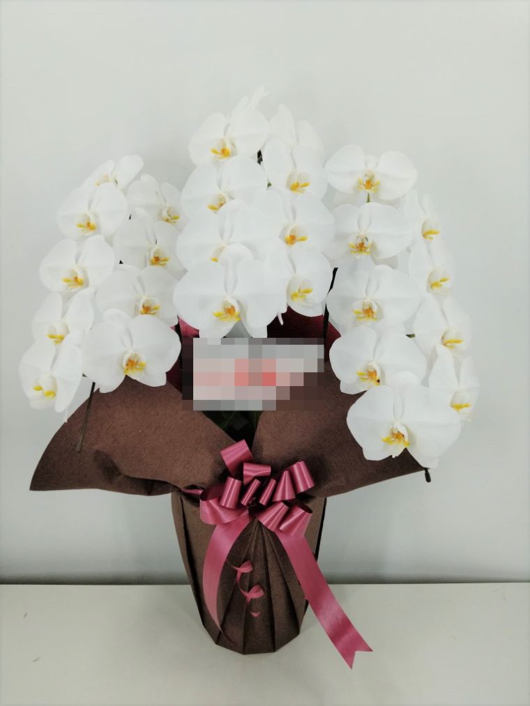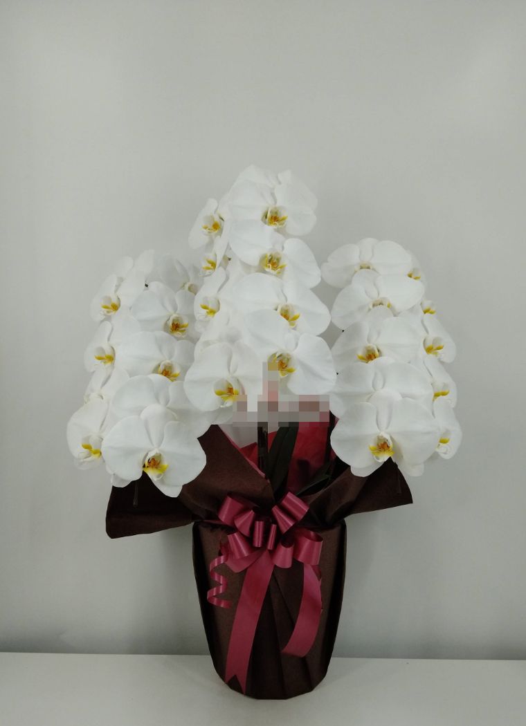 胡蝶蘭の実際にお届けした写真です。花秘書では発送前に写真をメールで送信致しますので安心して大切な顧客や取引様へのギフトにご利用頂けます。