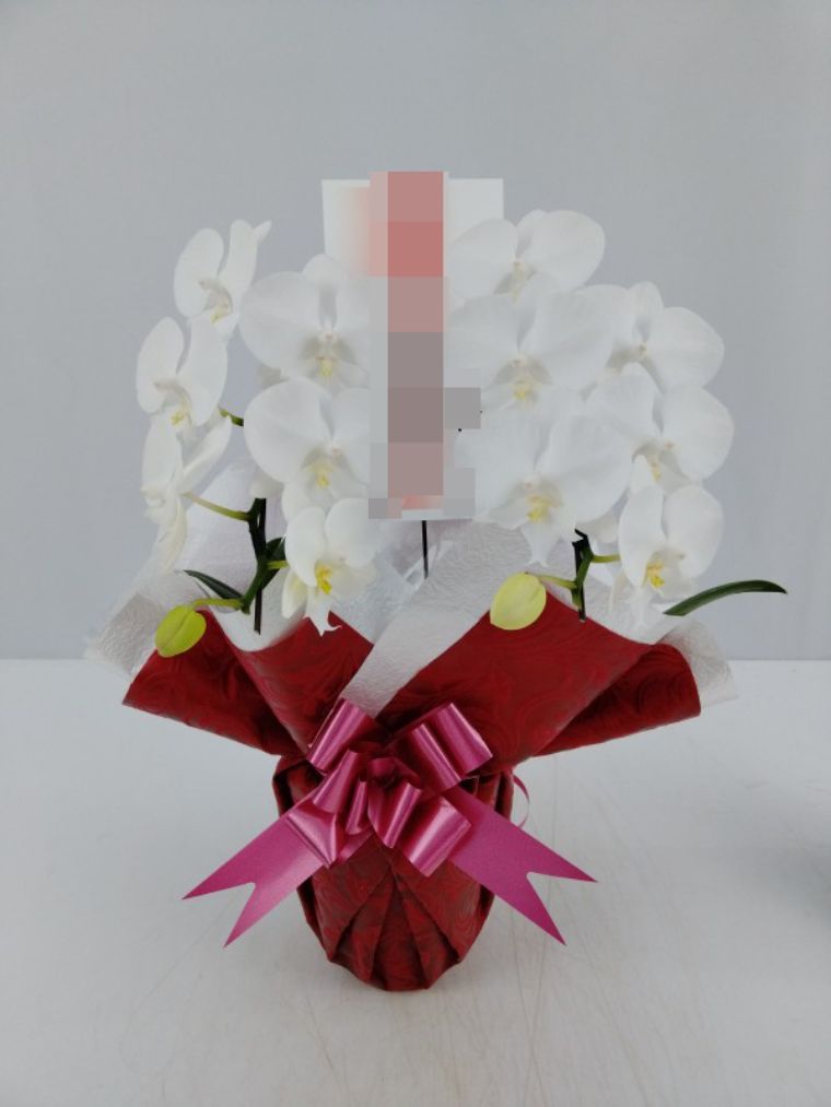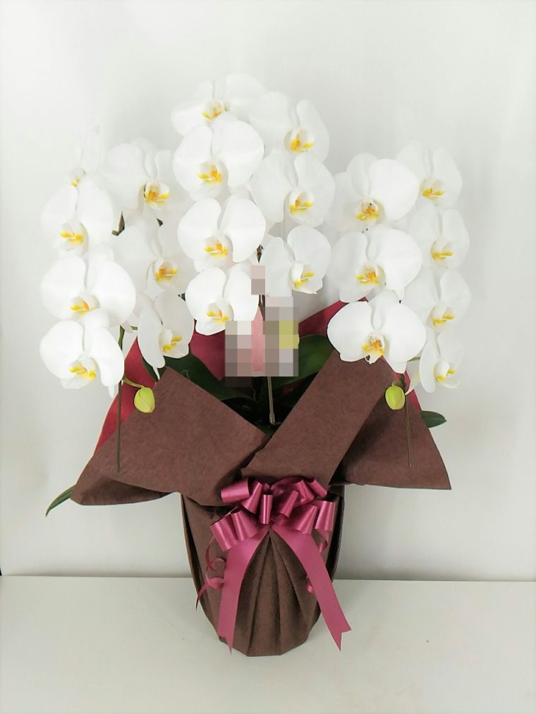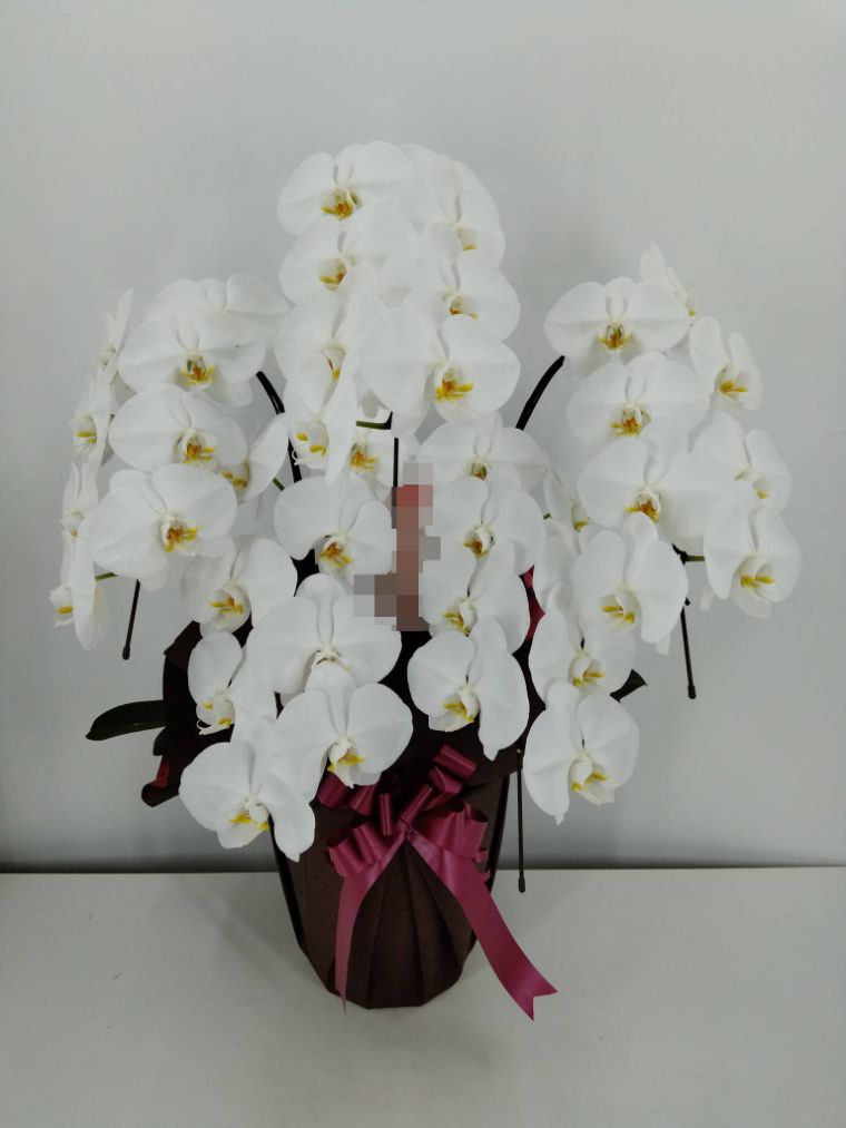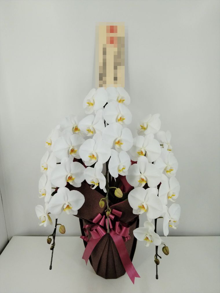 胡蝶蘭の実際にお届けした写真です。花秘書では発送前に写真をメールで送信致しますので安心して大切な顧客や取引様へのギフトにご利用頂けます。