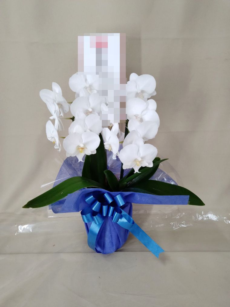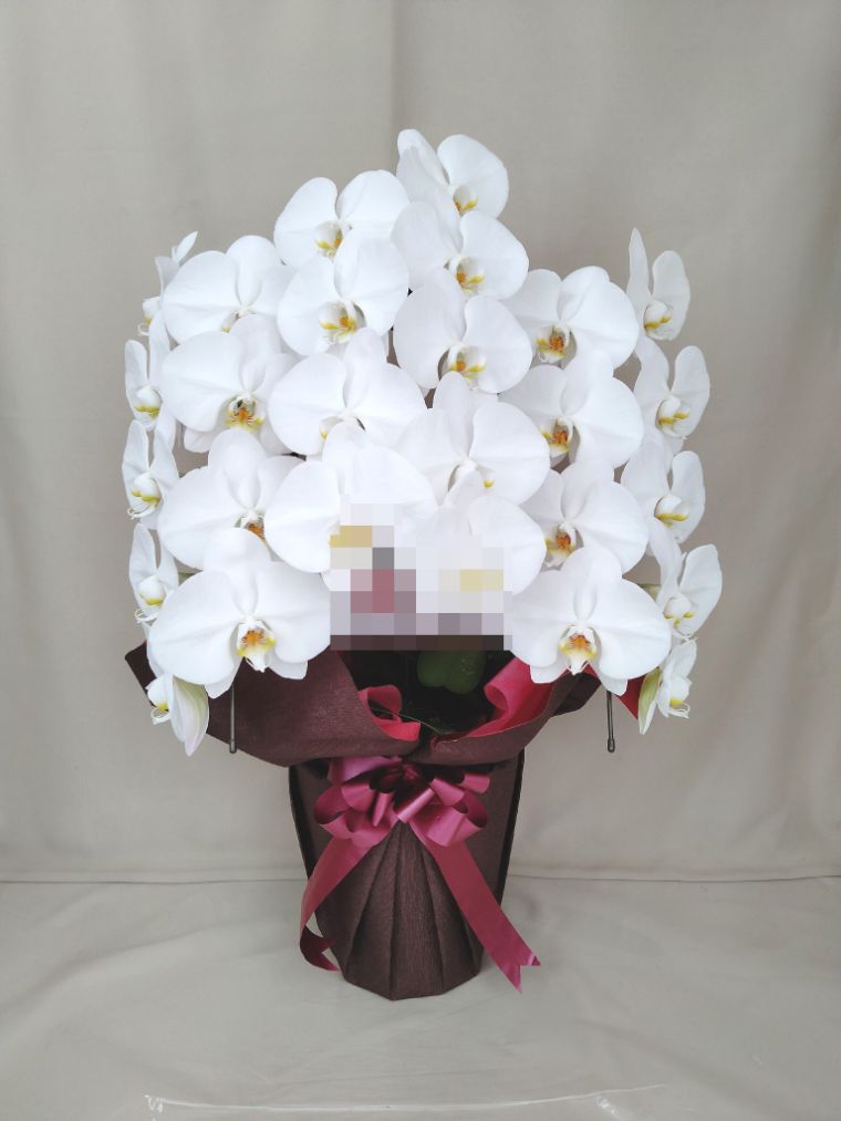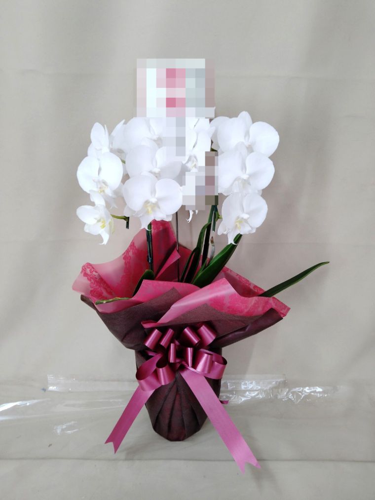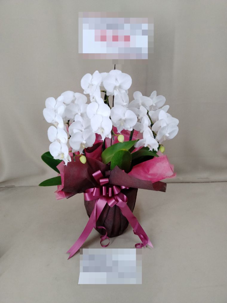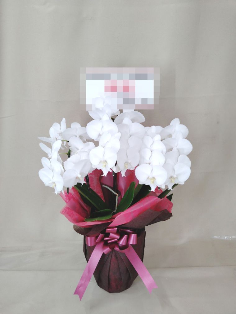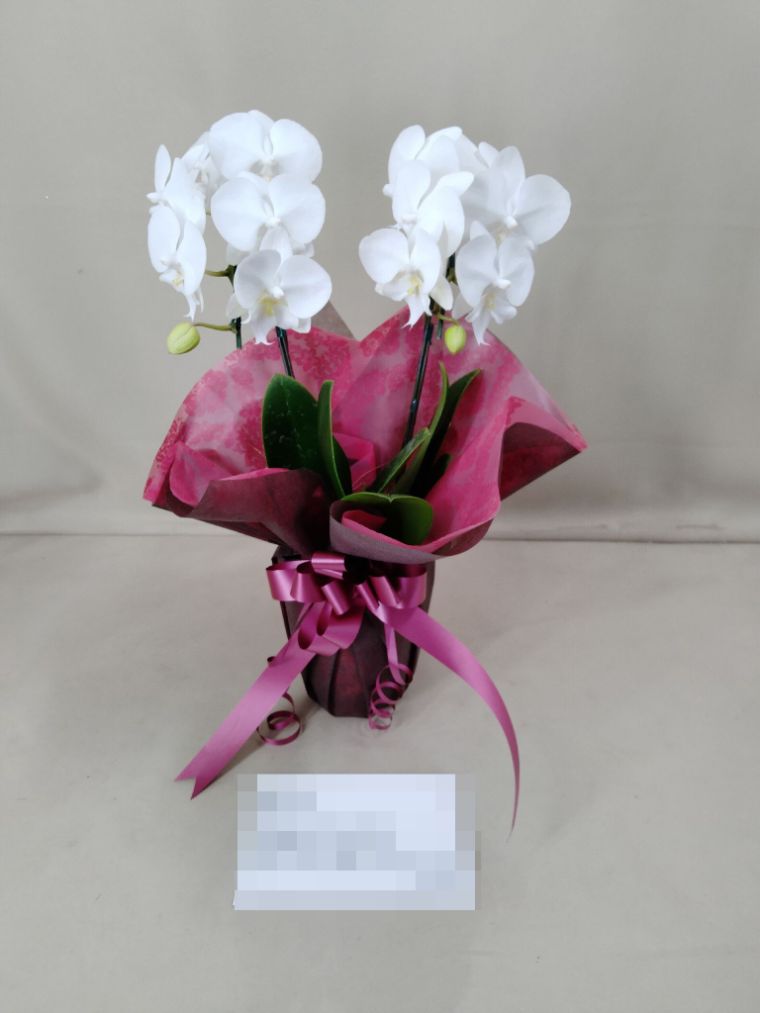 胡蝶蘭の実際にお届けした写真です。花秘書では発送前に写真をメールで送信致しますので安心して大切な顧客や取引様へのギフトにご利用頂けます。