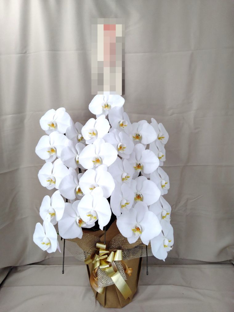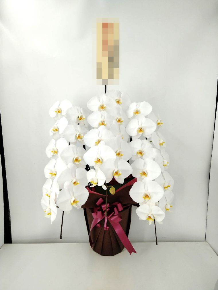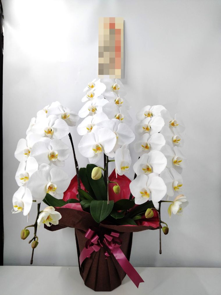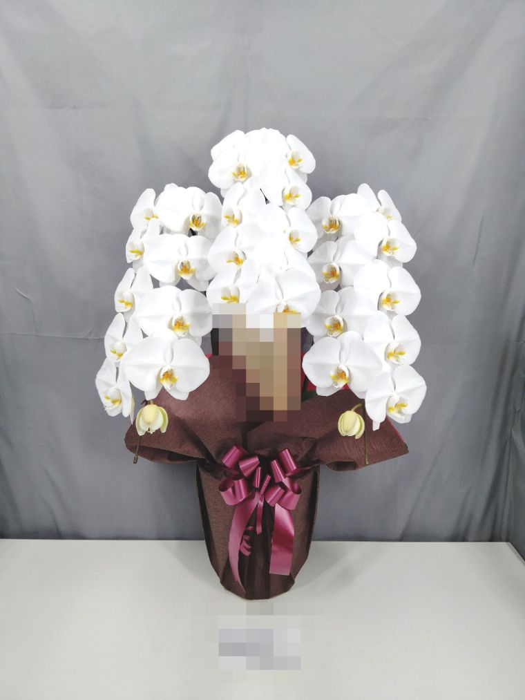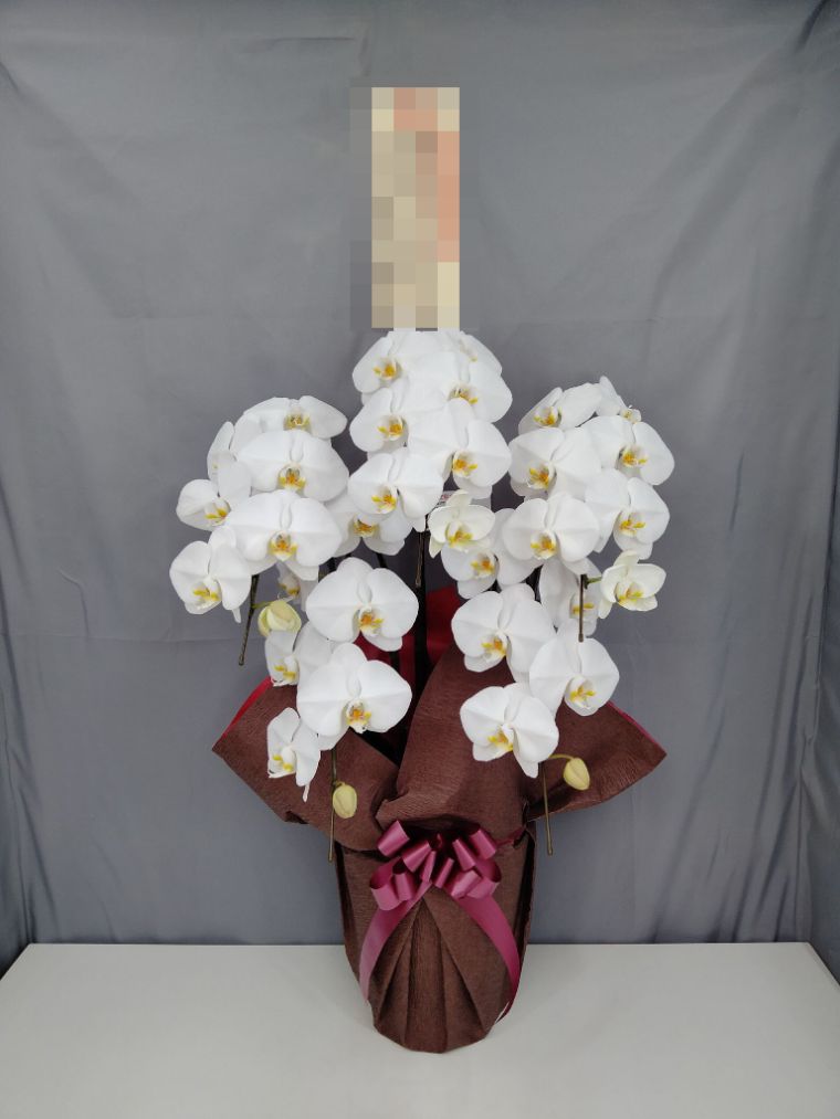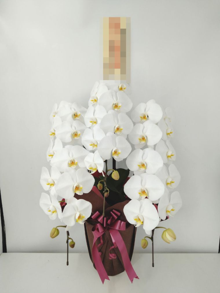 胡蝶蘭の実際にお届けした写真です。花秘書では発送前に写真をメールで送信致しますので安心して大切な顧客や取引様へのギフトにご利用頂けます。