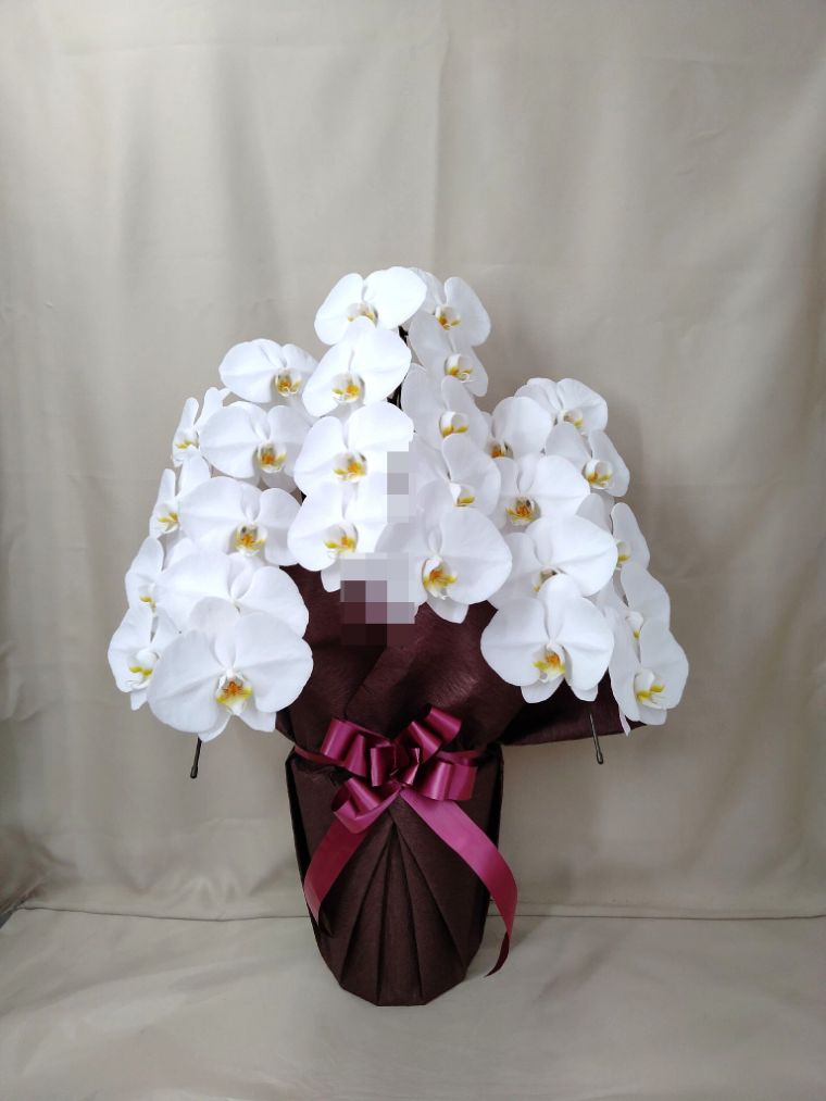 胡蝶蘭の実際にお届けした写真です。花秘書では発送前に写真をメールで送信致しますので安心して大切な顧客や取引様へのギフトにご利用頂けます。
