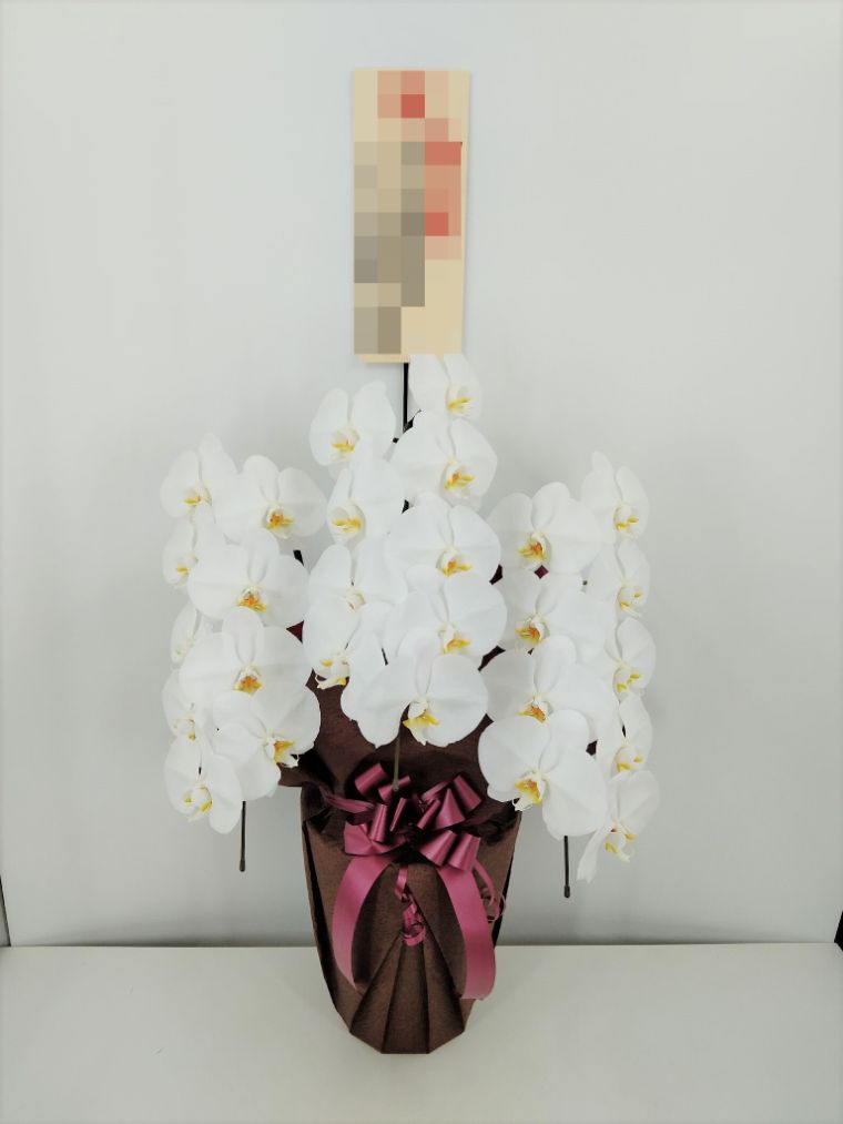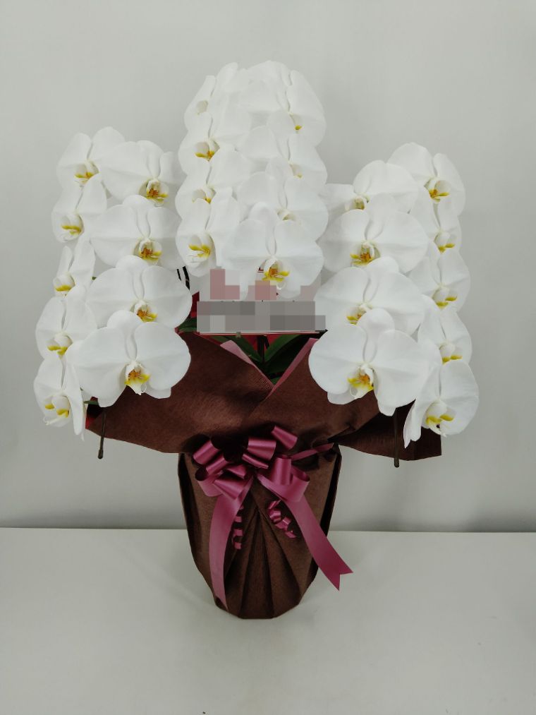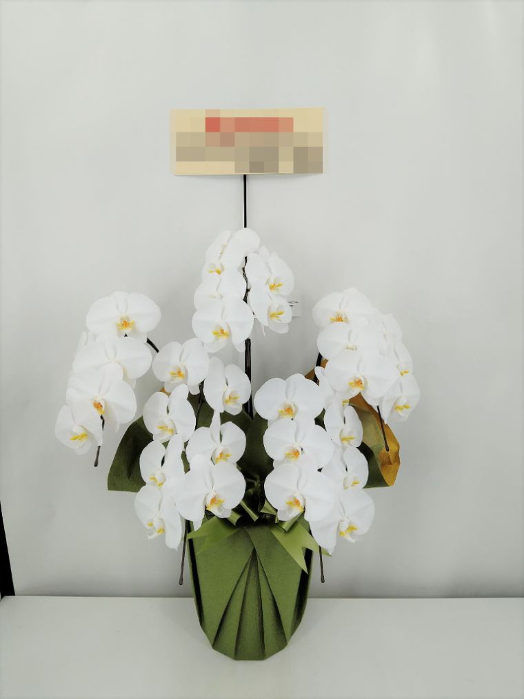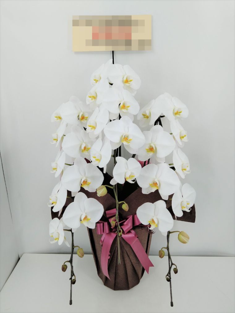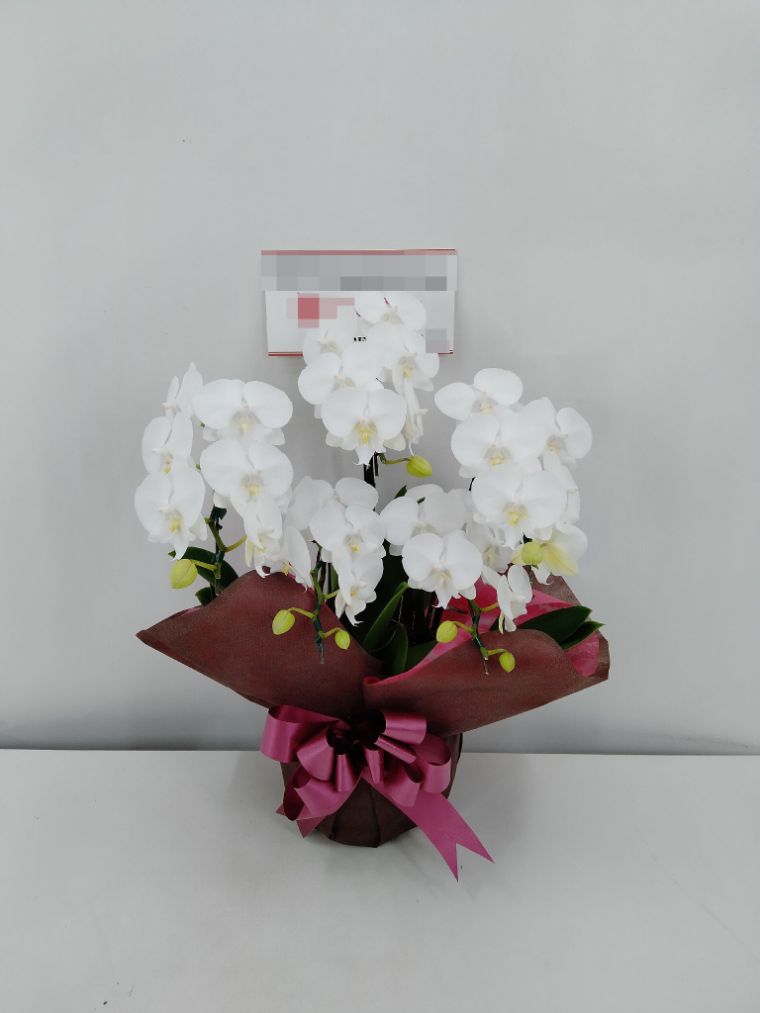 胡蝶蘭の実際にお届けした写真です。花秘書では発送前に写真をメールで送信致しますので安心して大切な顧客や取引様へのギフトにご利用頂けます。