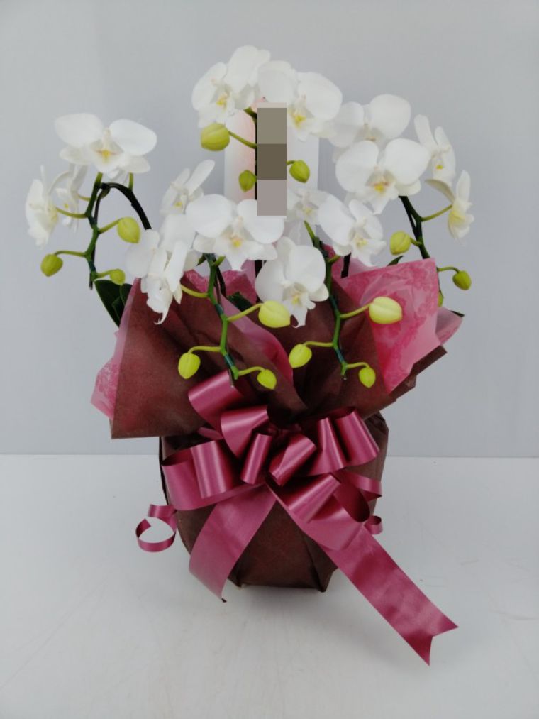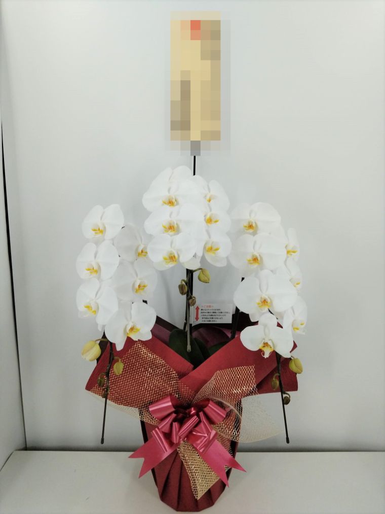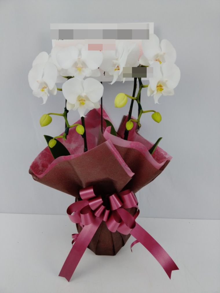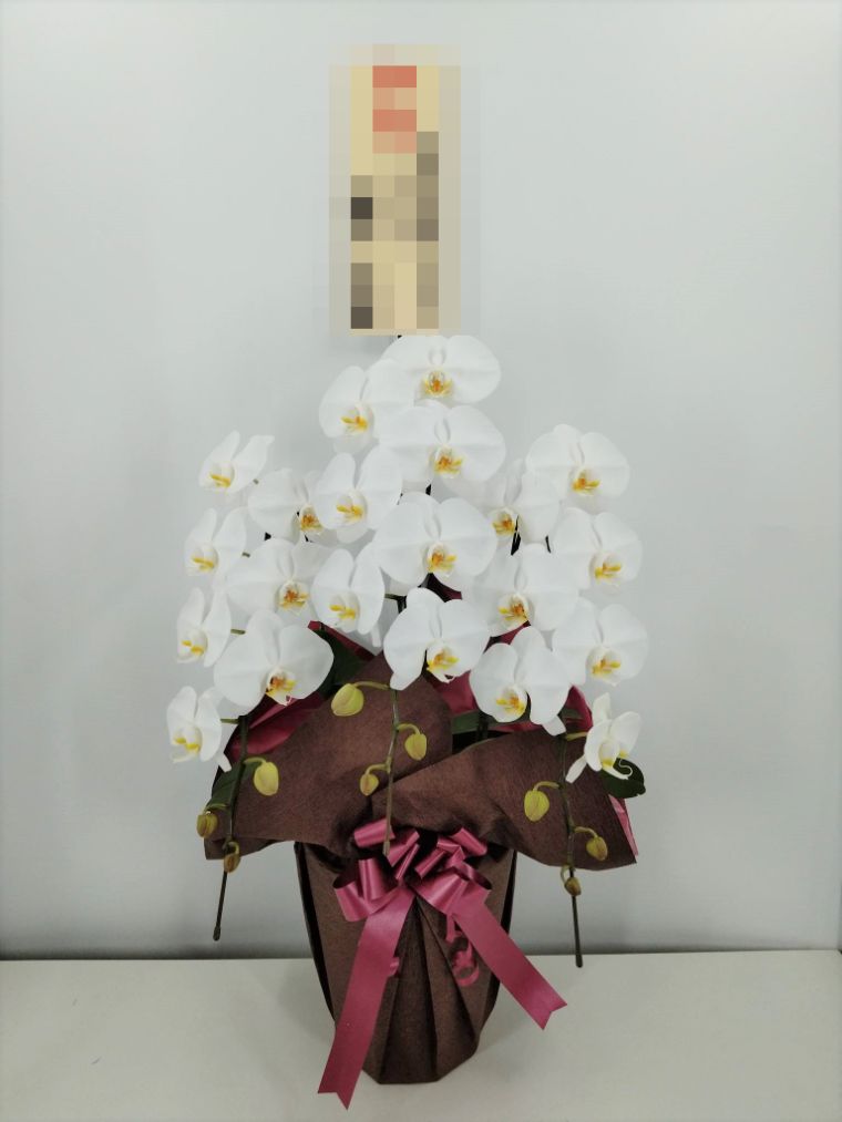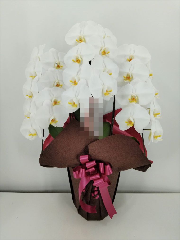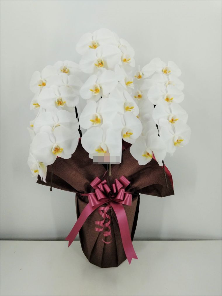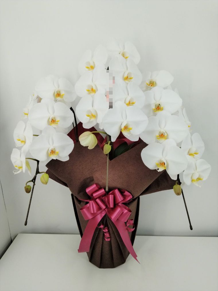 胡蝶蘭の実際にお届けした写真です。花秘書では発送前に写真をメールで送信致しますので安心して大切な顧客や取引様へのギフトにご利用頂けます。