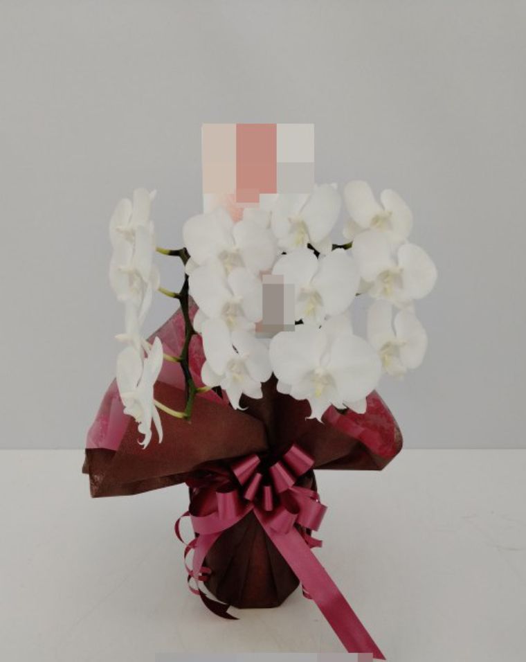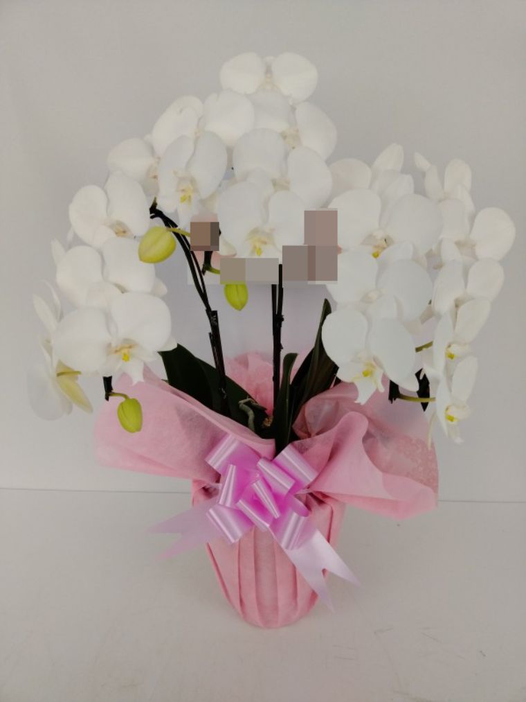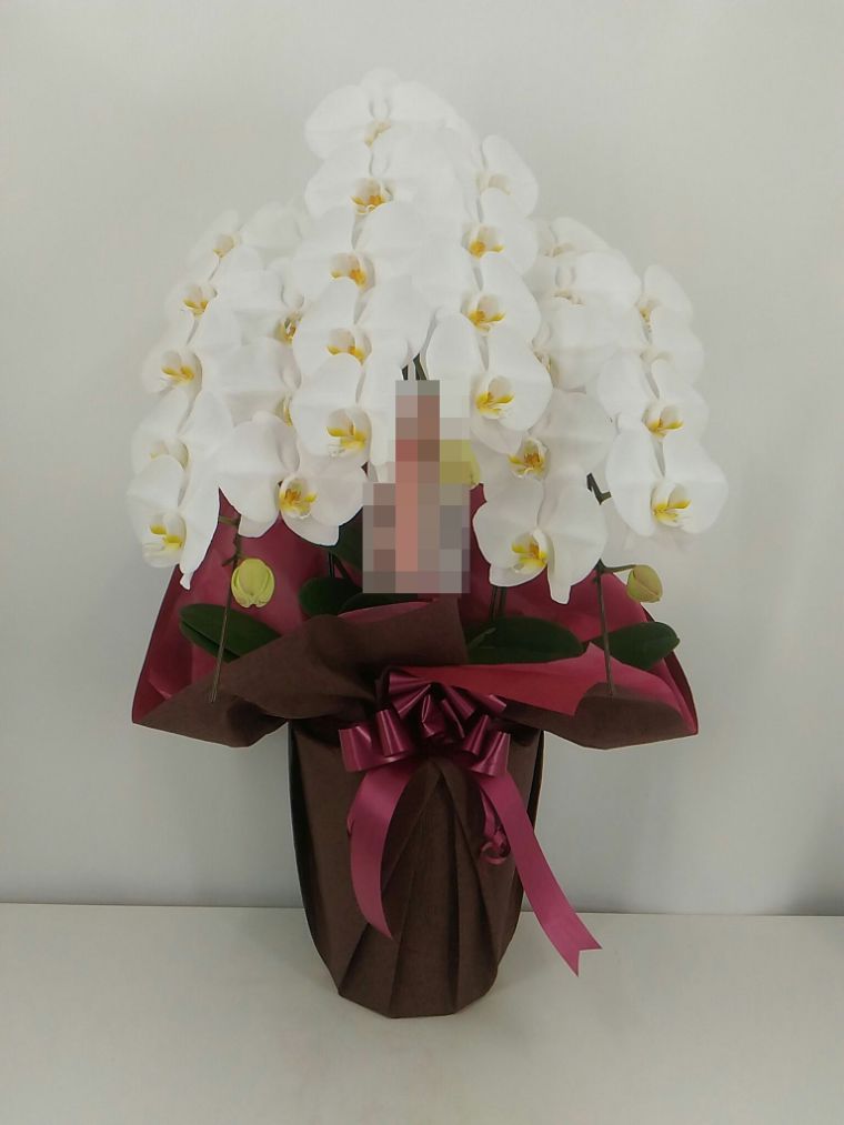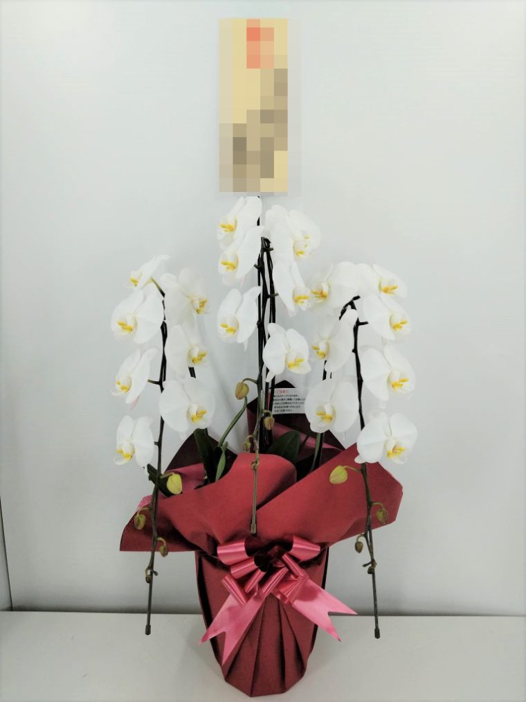 胡蝶蘭の実際にお届けした写真です。花秘書では発送前に写真をメールで送信致しますので安心して大切な顧客や取引様へのギフトにご利用頂けます。